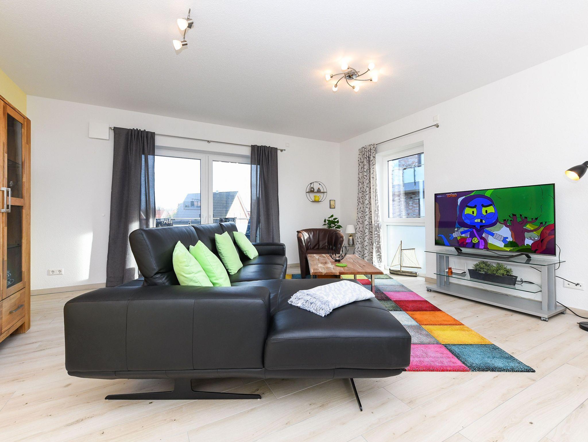 Die Wohnung ist sehr geschmackvoll und stilsicher eingerichtet, dabei sehr gemütlich und technisch hervorragend ausgestattet. Auf ungefähr 85Quadratmetern finden Sie alles, was Sie für einen rundum schönen Urlaub benötigen, z. B. eine sehr moderne Küche mit Geschirrspülmaschine und Mikrowelle und Ceran-Herd mit Backofen.