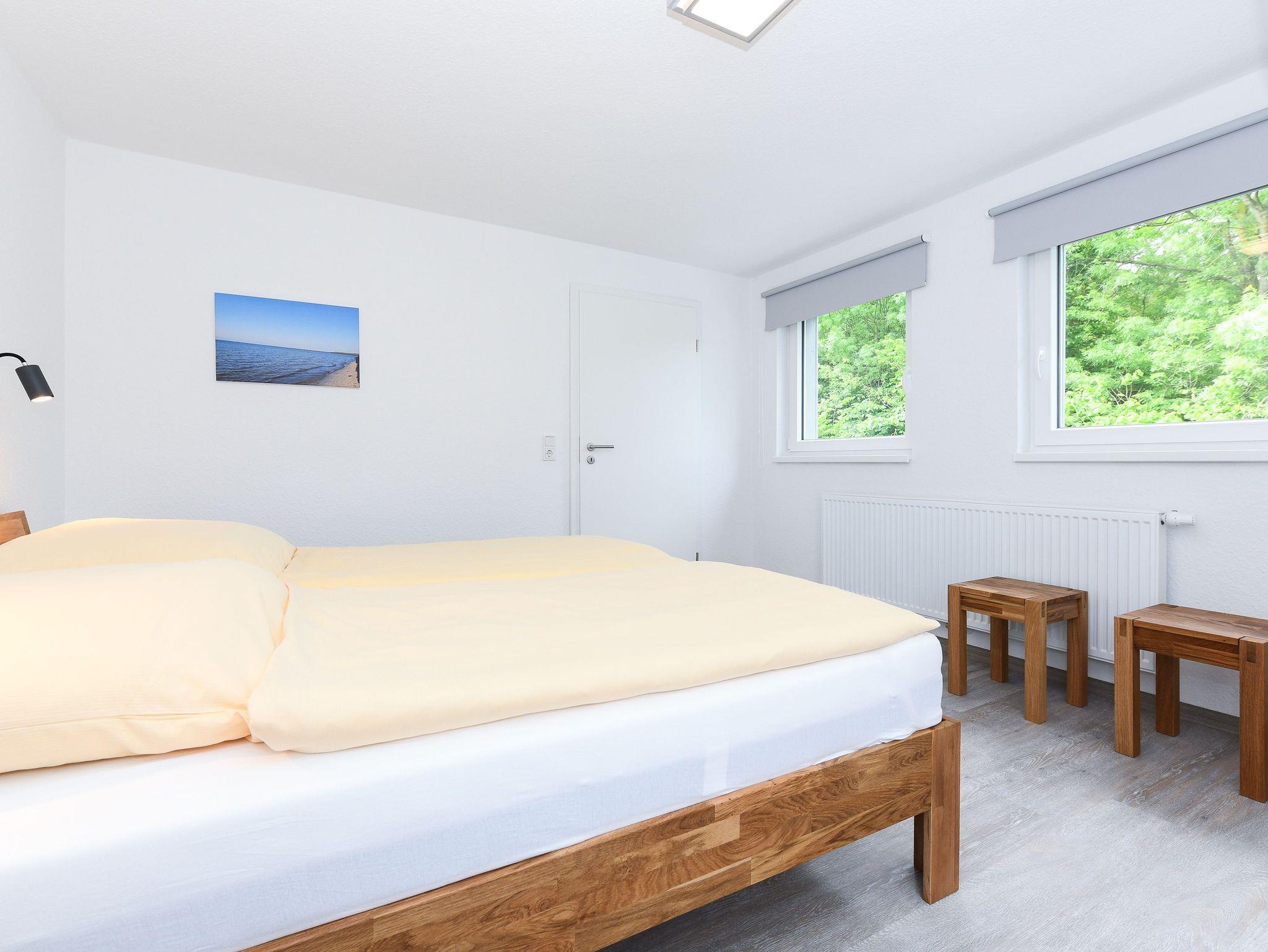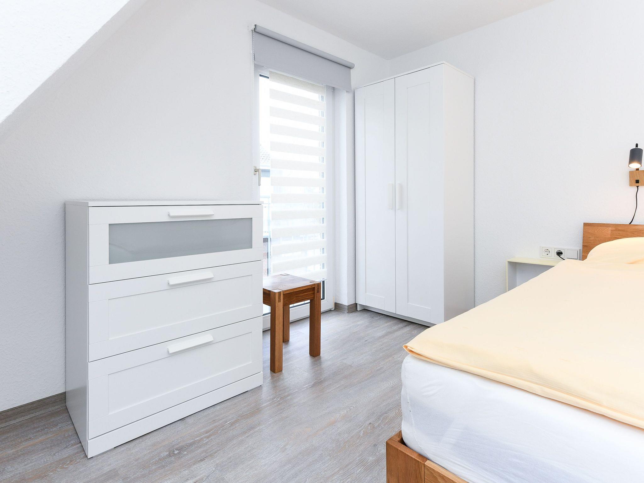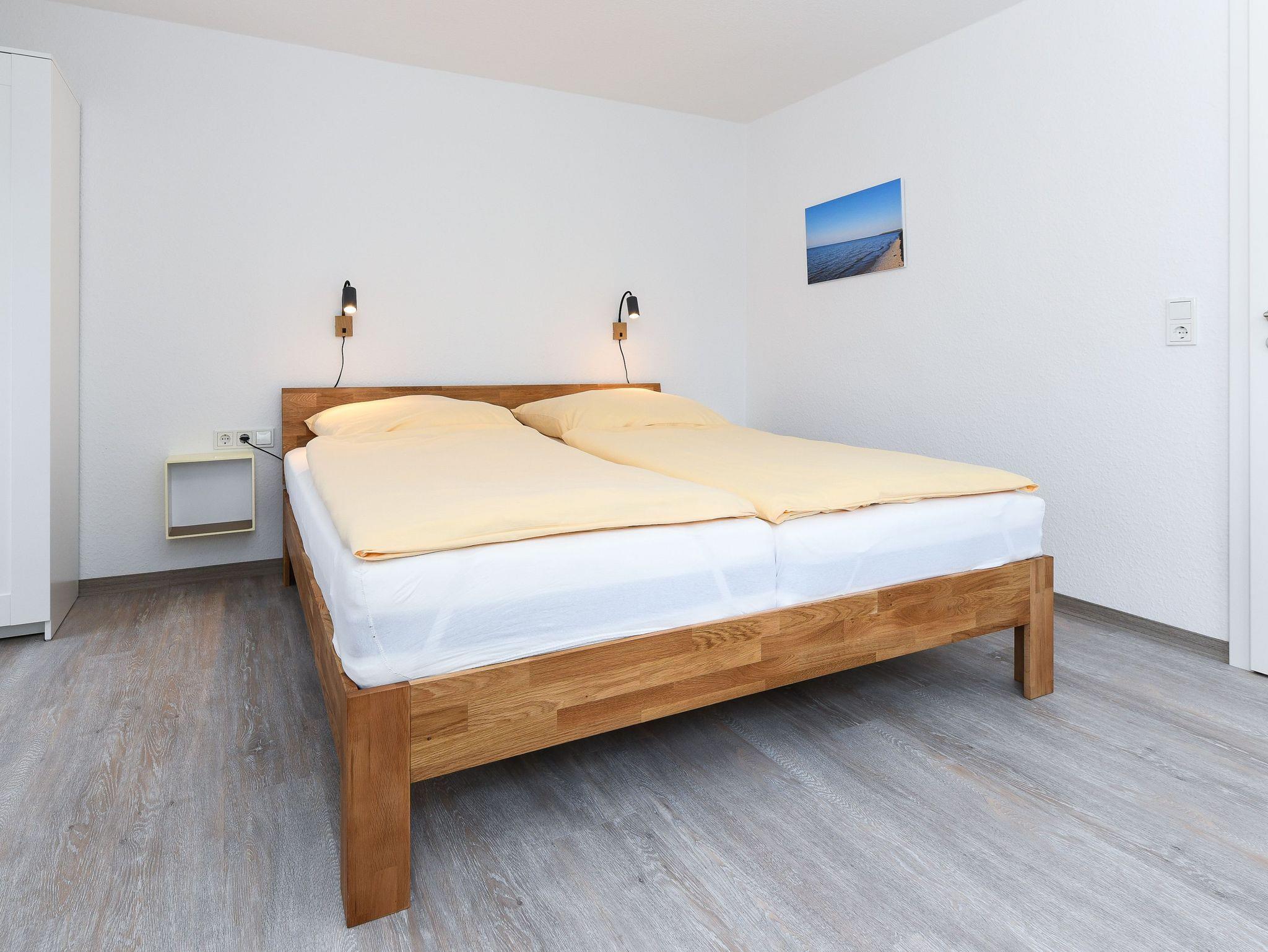Die Erdgeschosswohnung (ca. 69 m²) hat eine Terrasse und bietet mit zwei Schlafzimmern (Eltern/Kinder) Platz für 4 Personen. Die Wohnung im Obergeschoss für 2 Personen (ca. 52 m²) hat einen sonnigen Balkon mit Blick auf den Park und den Deich. Der zweite Schlafraum ist mit einem separaten Zugang und liegt direkt neben der Wohnung.