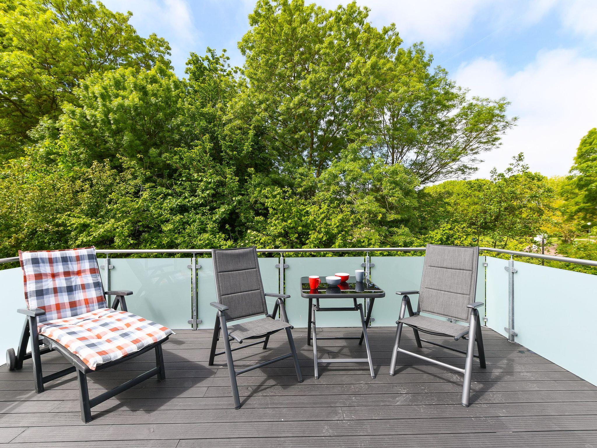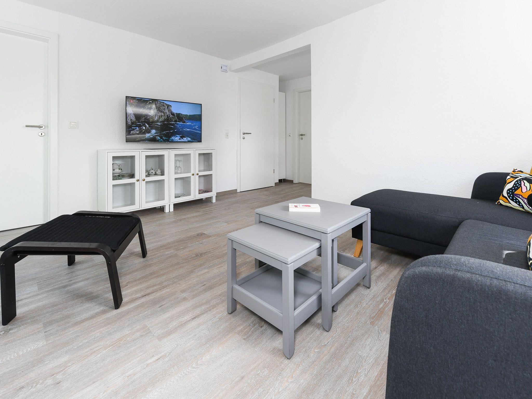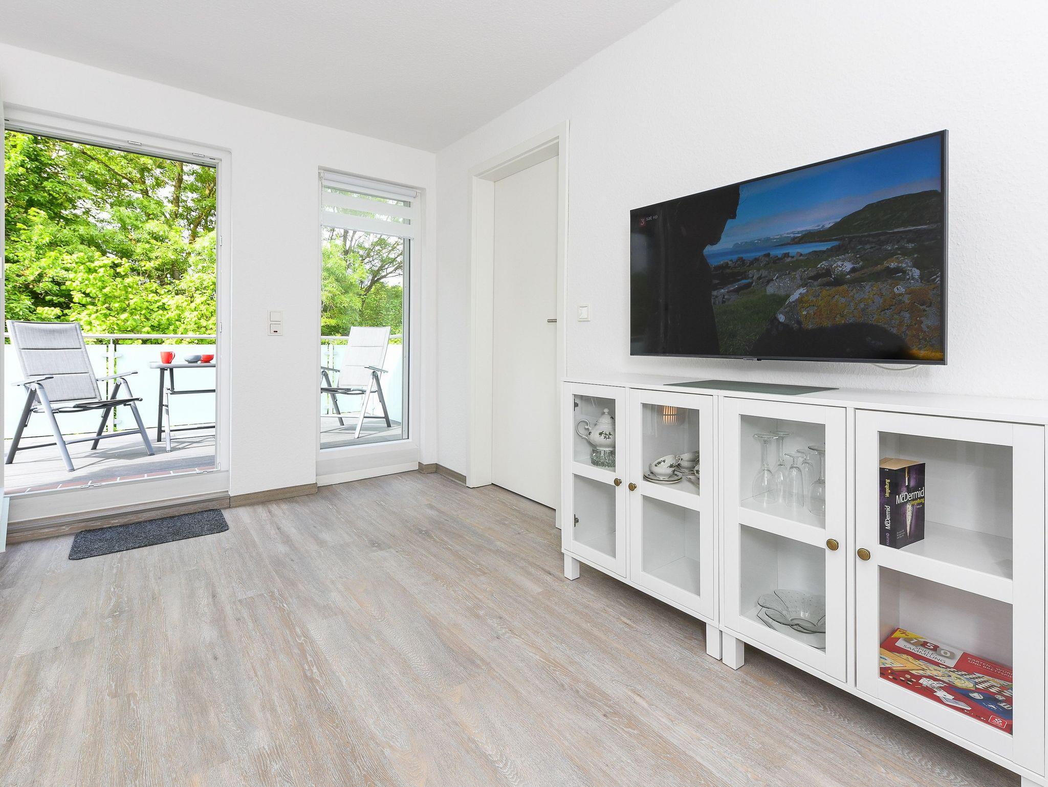 Die Erdgeschosswohnung (ca. 69 m²) hat eine Terrasse und bietet mit zwei Schlafzimmern (Eltern/Kinder) Platz für 4 Personen. Die Wohnung im Obergeschoss für 2 Personen (ca. 52 m²) hat einen sonnigen Balkon mit Blick auf den Park und den Deich. Der zweite Schlafraum ist mit einem separaten Zugang und liegt direkt neben der Wohnung.
