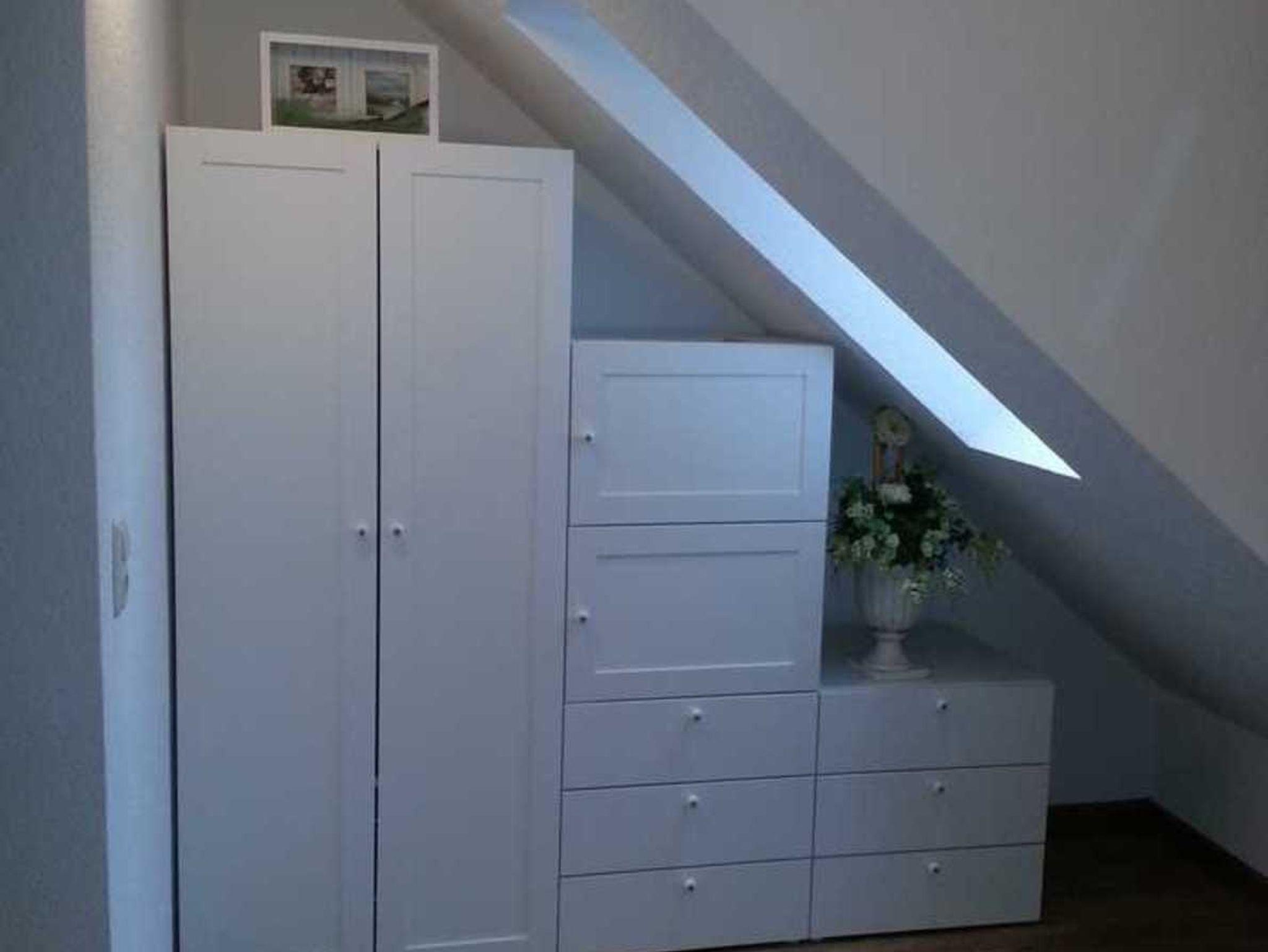 Die über eine Treppe zu erreichende 45qm große Ferienwohnung Möwennest mit voll ausgestatteter Wohn-Küche, Bad und einem Schlafzimmer ist nur für maximal zwei (!) Personen geeignet.
