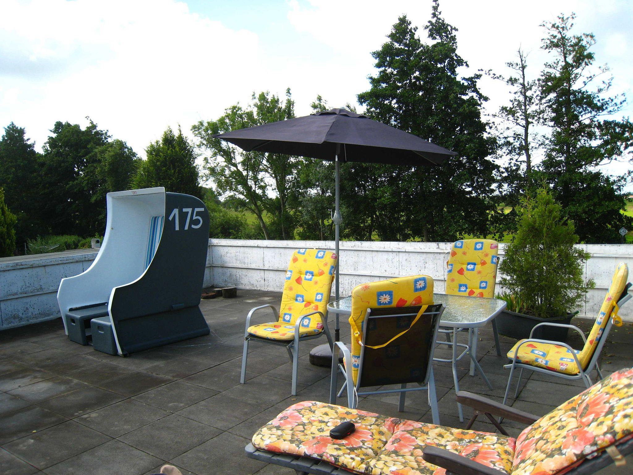 Unsere gemütlich modern und komfortabel eingerichtete Nichtraucher-Oberwohnung in ruhiger Sackgassenlage lädt zum Verweilen ein. Die Wohnküche mit komfortabler Einbauküche, sowie das separate Wohnzimmer, wie auch 2 gut ausgestattete Schlafräume, Dusche mit WC und der großen sonnigen Dachterrasse (50 qm) versprechen einen erholsamen Urlaub. Die Betten sind frisch bezogen und auch die Handtücher sind im Preis enthalten. Zur Mitbenutzung bietet sich das komplett eingerichtete Blockhaus incl. Grill, Tischfußball, Dart, etc. an. Hauseigene Erwachsenen-Fahrräder stehen in der Fahrradgarage zur Verfügung. Die Endreinigung ist im Preis enthalten. Internet, freies WLAN.