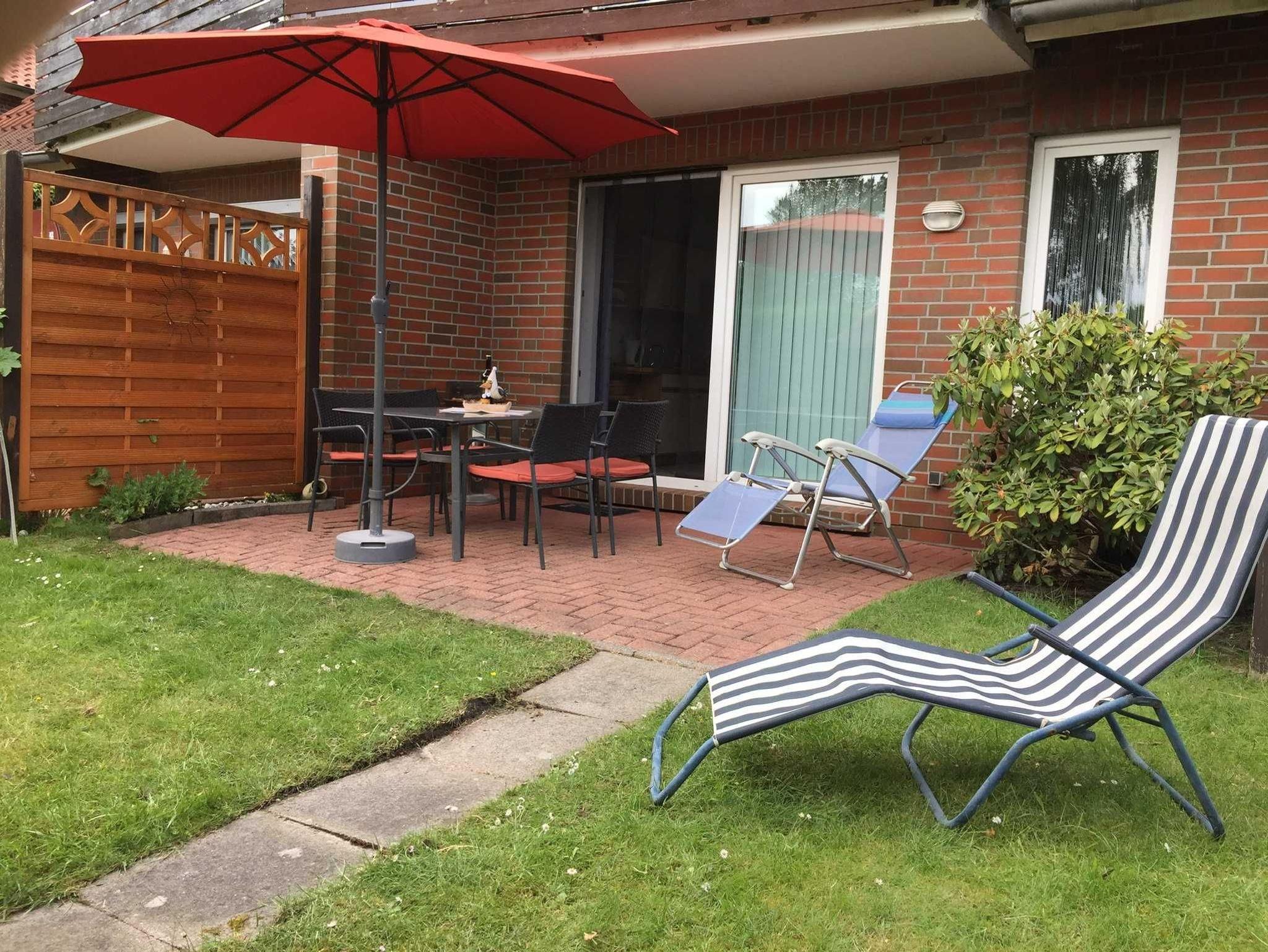 unsere EG Ferienwohnung Moin Moin 2 (renoviert 2020) in Esens mit Terrasse und eigenem Parkplatz hat