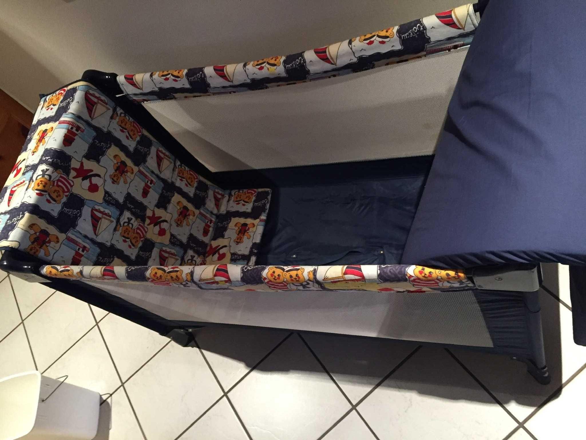 Kinderreisebett von Hauck mit Matratze und ein Kinderhochstuhl ohne