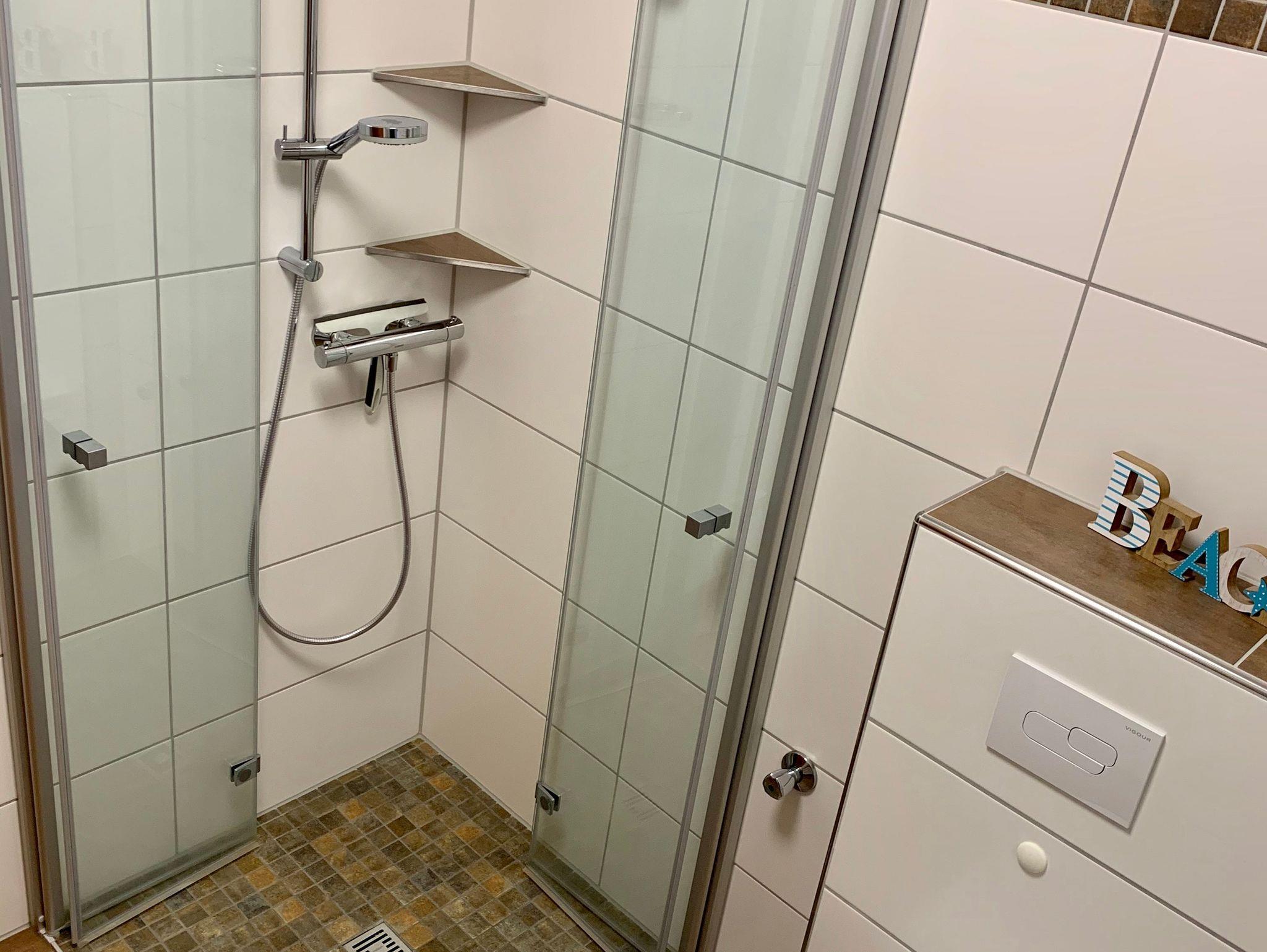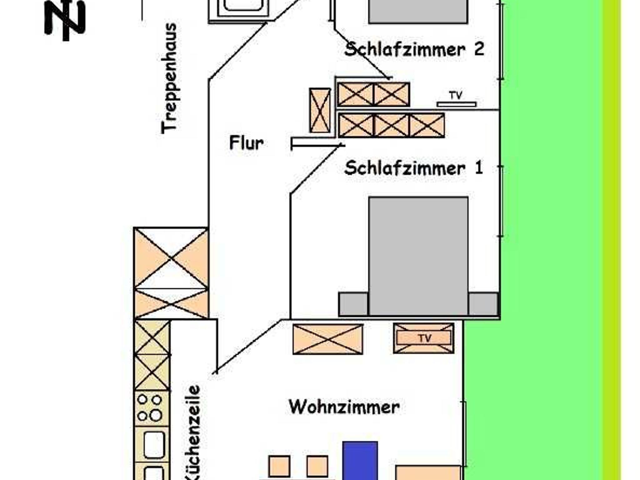 Unsere 56 qm große ebenerdige Ferienwohnung verfügt über 2 separate Schlafräume und einen Wohnbereich mit Küchenzeile. Das Badezimmer wurde 2020 liebevoll renoviert und ist mit bodenebener Dusche ausgestattet. Eine Waschmaschine befindet sich im OG. Vor dem Haus befindet sich ein Pkw-Stellplatz zur alleinigen Nutzung. Es handelt sich um eine Erdgeschosswohnung mit eigener Terrasse (Südausrichtung). Beide Schlafzimmer verfügen über ein Doppelbett (1,80 x 2,00 m). Von der Terrasse aus, gelangt man zum Gartenhaus, wo die Fahrräder (Benutzung auf eigene Gefahr), der Grill usw. steht.