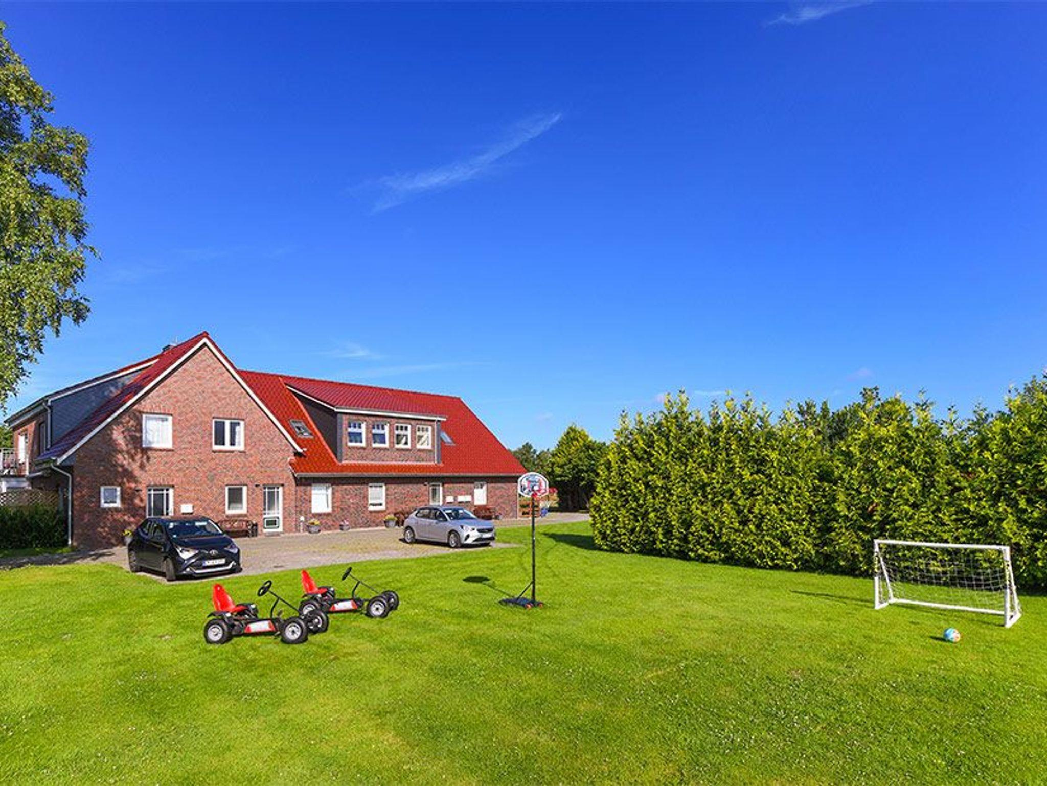 Unser ehemaliger Bauernhof „Hof Lück“ liegt weit ab vom Verkehr, schon mitten auf dem Land, aber dennoch in Spaziergangnähe der Innenstadt von Esens im Nordsee-Heilbad Esens-Bensersiel. Unser Hof steht am äußeren Rand von Esens und das ist wortwörtlich zu verstehen: Vom Hof aus und aus dem Garten haben sie eine tolle Aussicht über die saftigen Marschwiesen und -weiden bis zum Deich und nach Bensersiel.