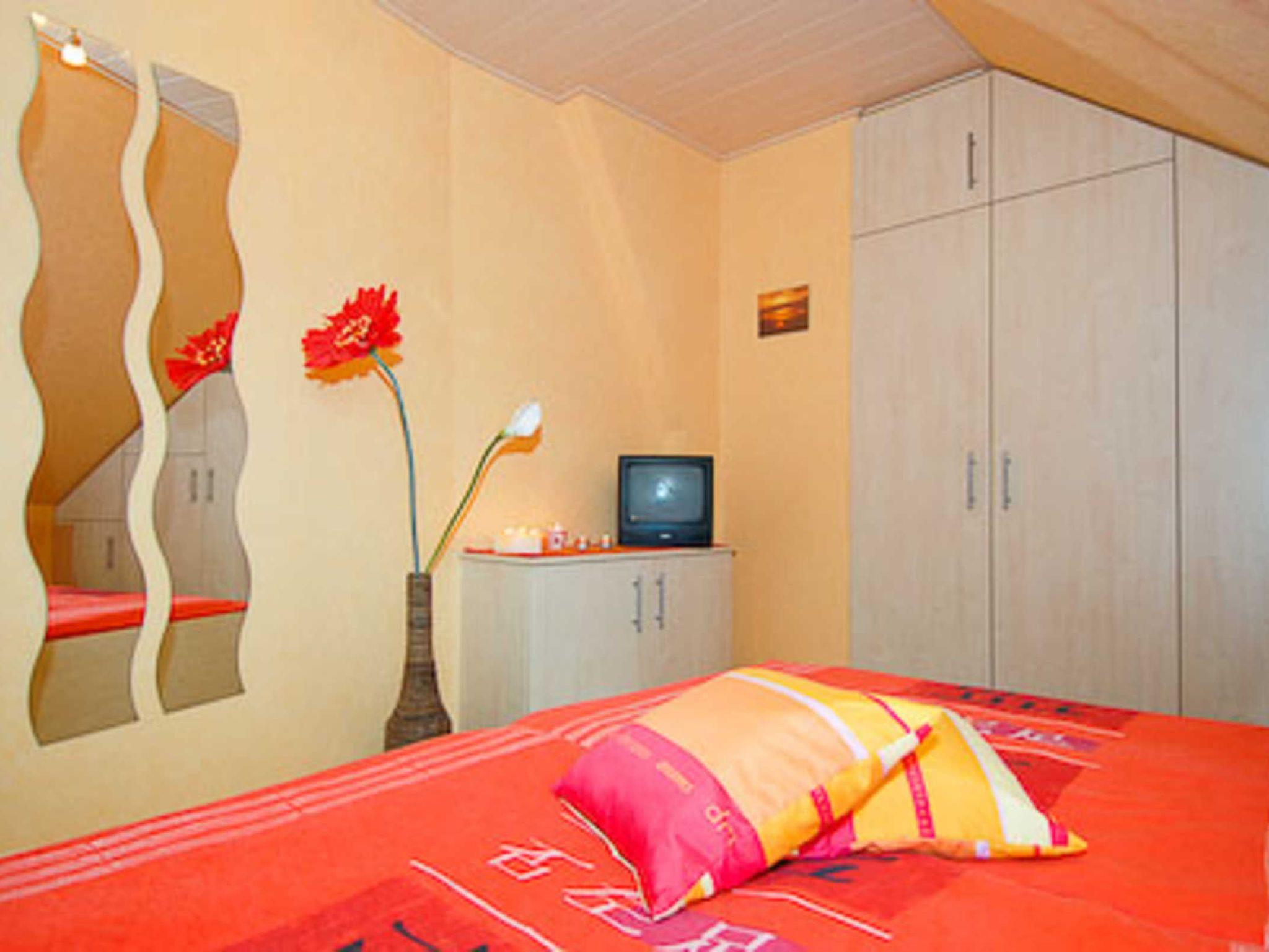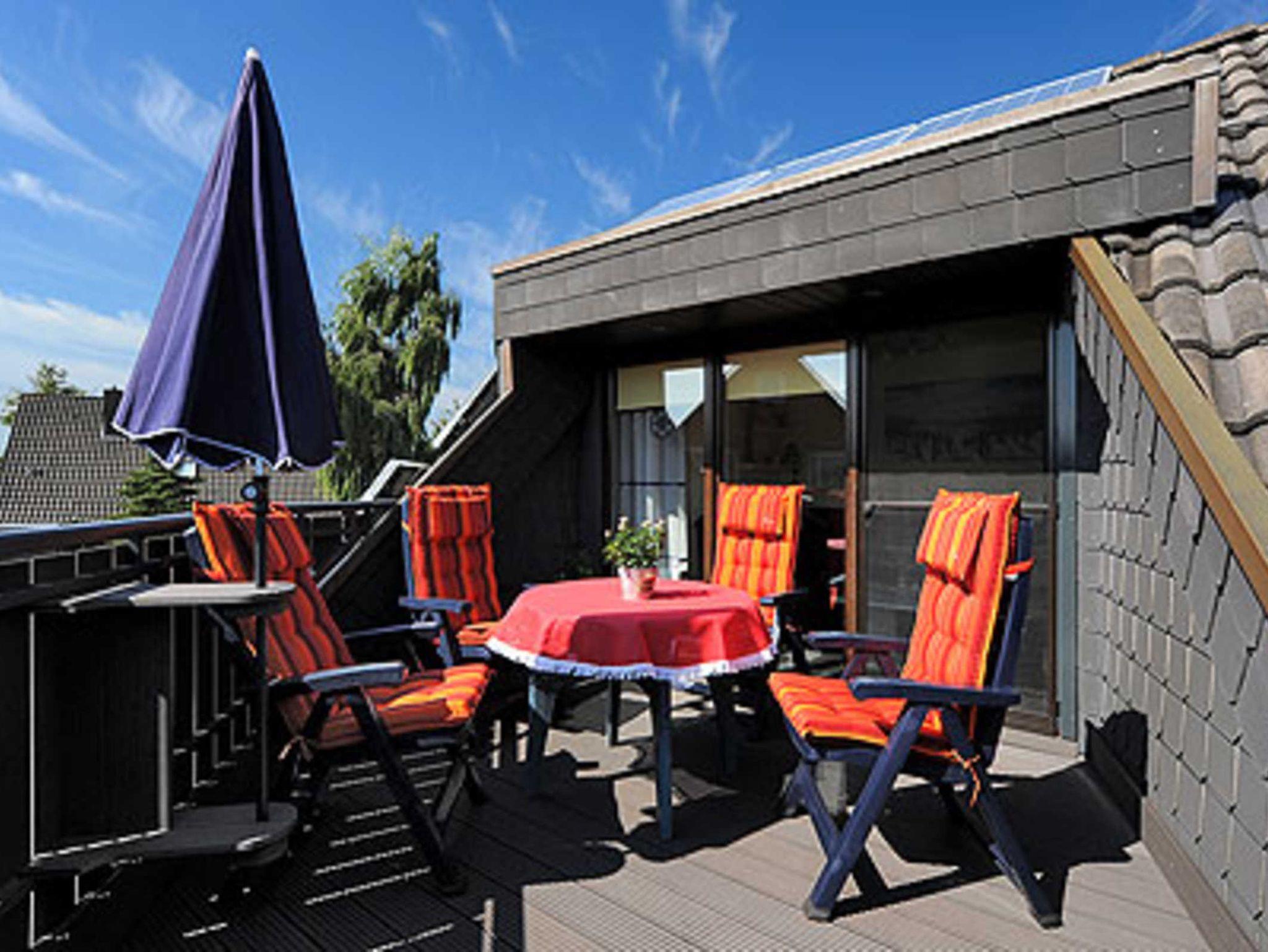 Größe ca. 65 Quadratmeter, Wohnzimmer mit Essgruppe, Küchenabteil, Schlafzimmer, Badezimmer mit Badewanne, Dusche und WC, Obergeschoss, Balkon, optimal für 2 Personen.