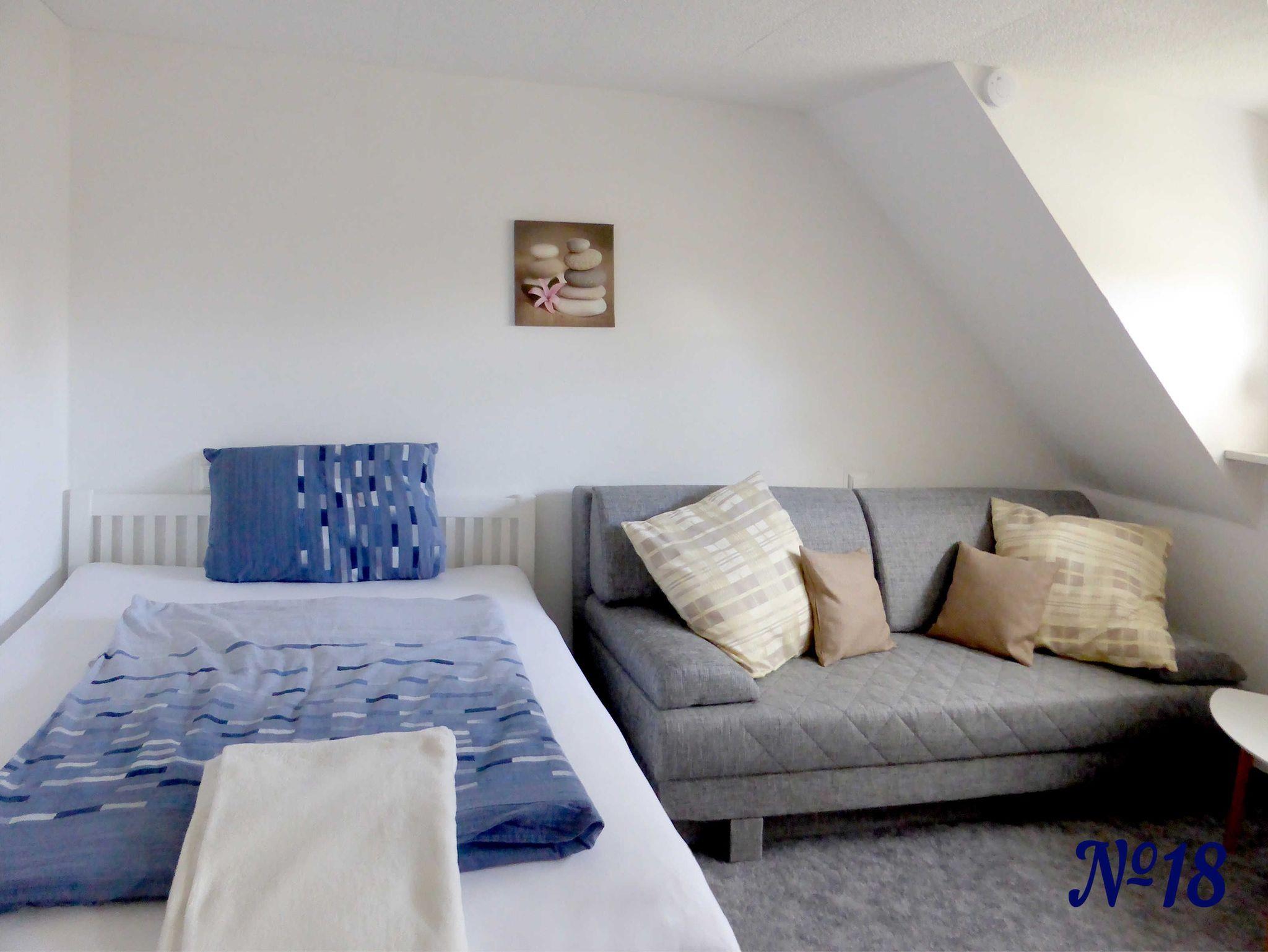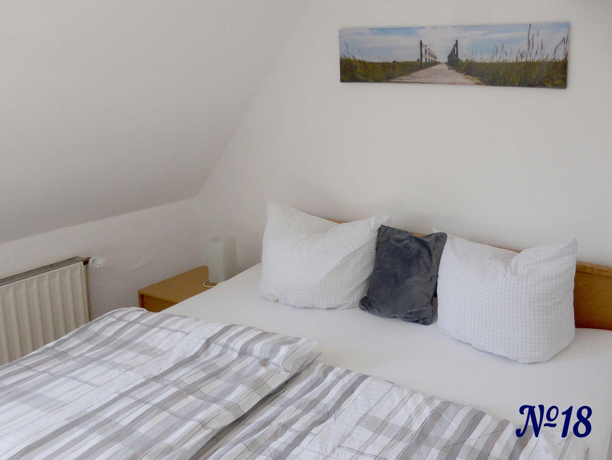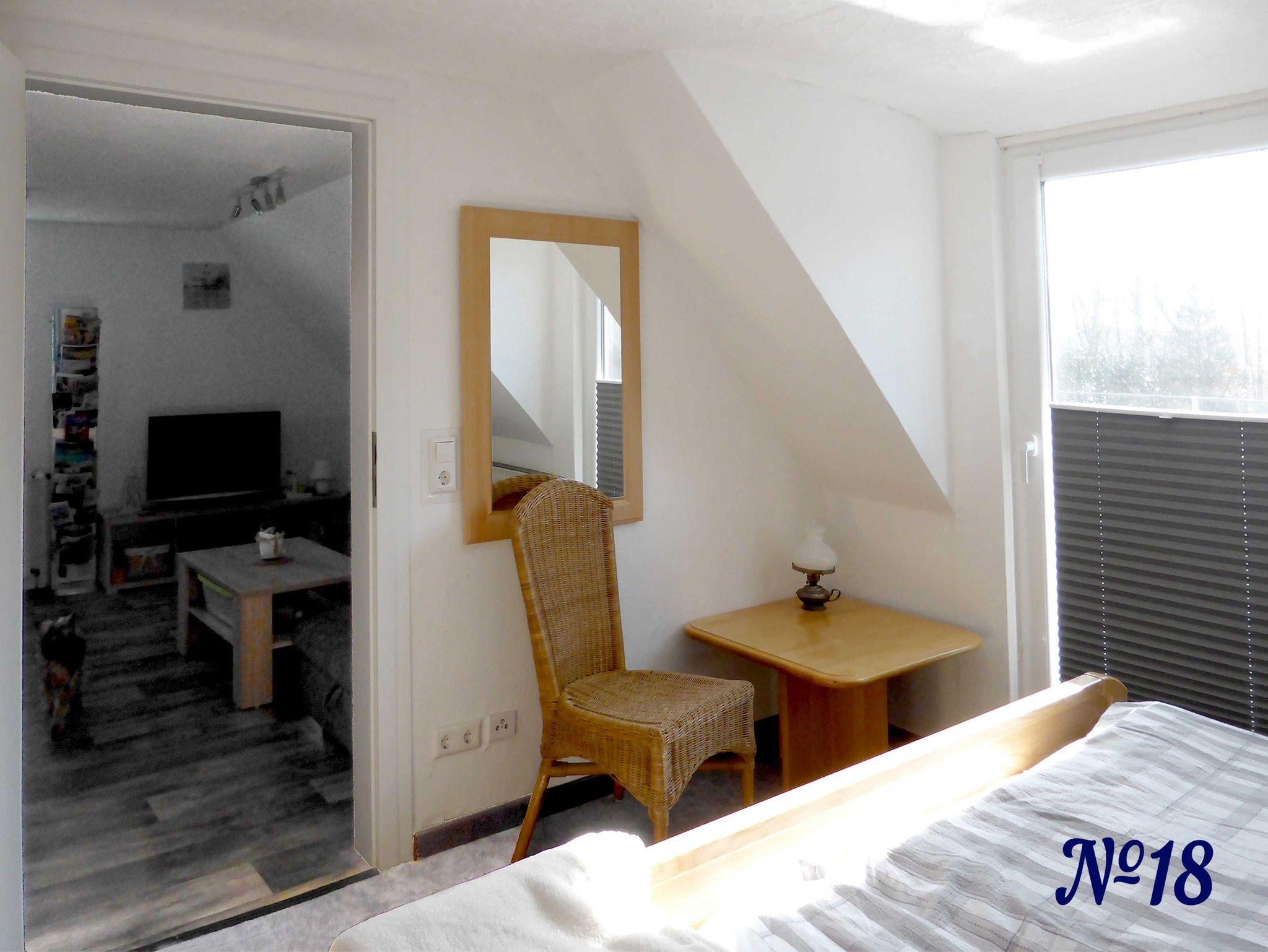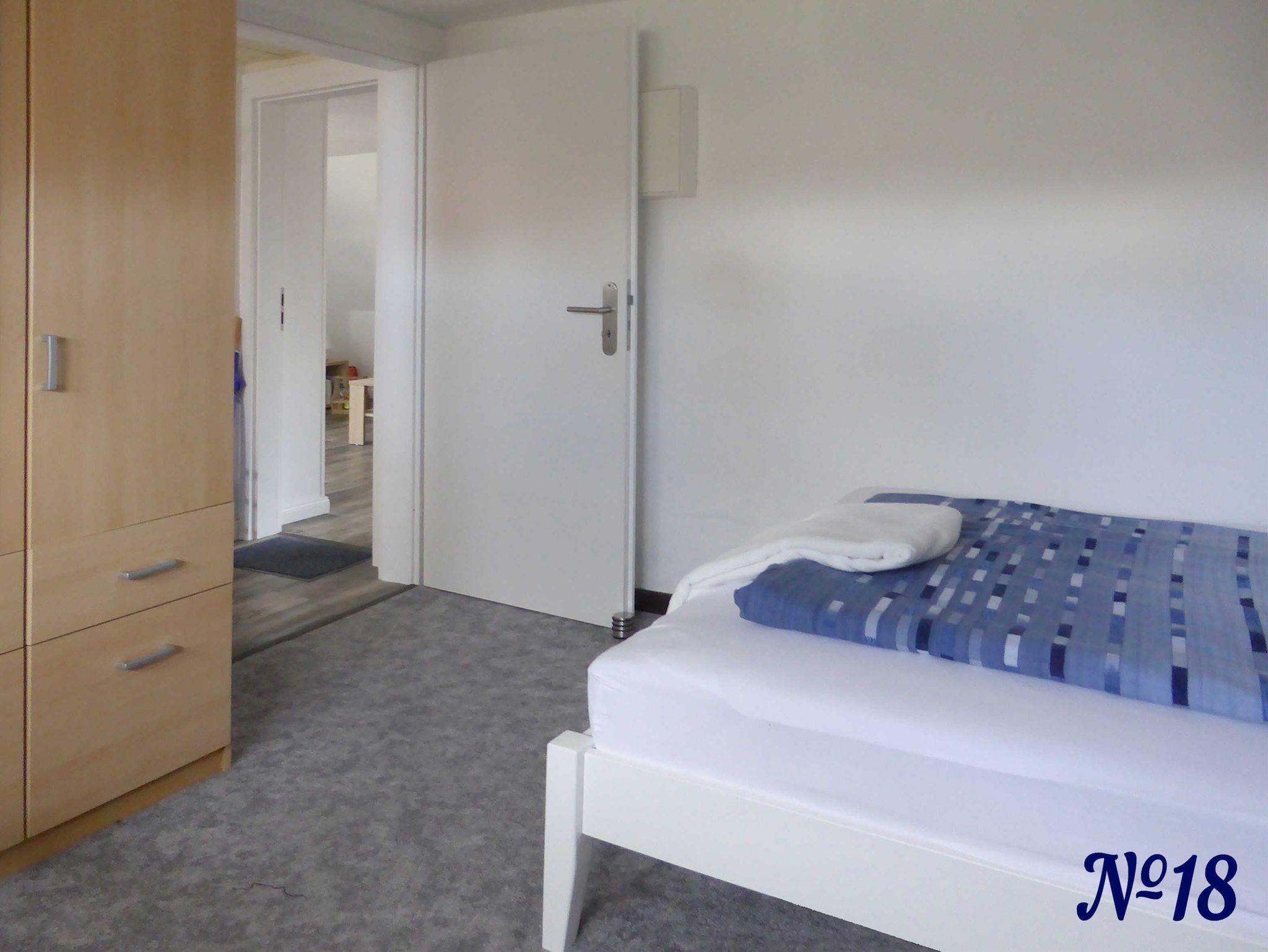 Auf der gleichen Etage befindet sich ein zusätzliches Schlafzimmer, das mit dazu gebucht werden kann. So hat die Wohnung dann insgesamt zwei Schlafzimmer und kann mit bis zu 4 Erwachsene und / oder Kind(ern) belegt werden.