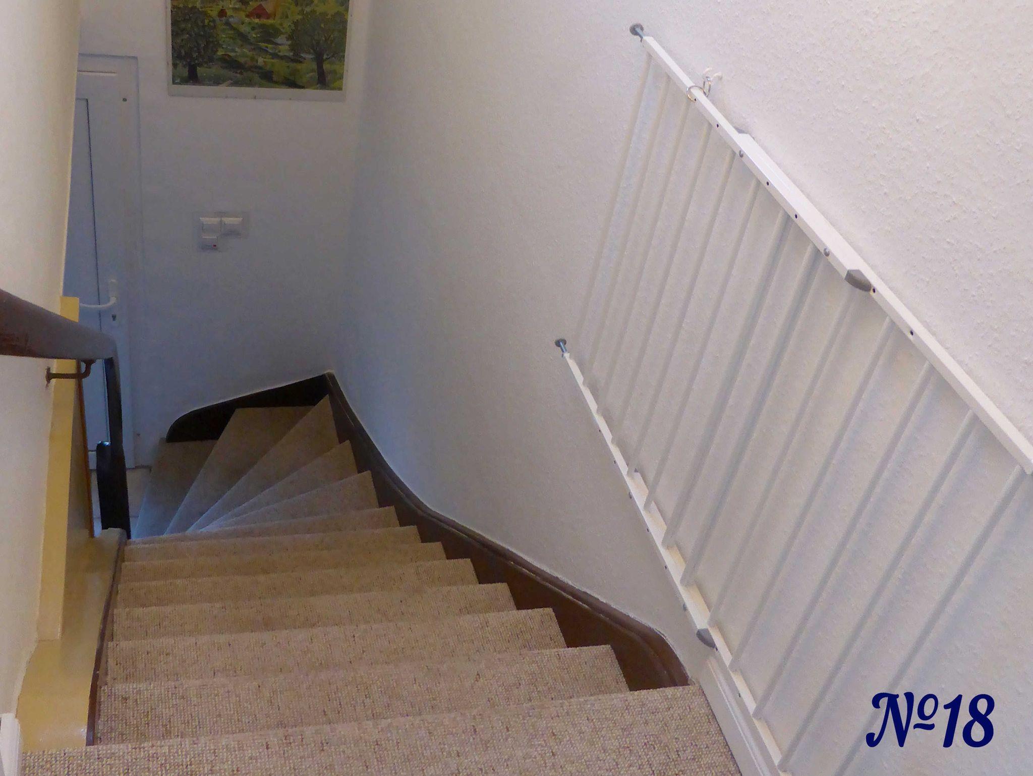 Treppe ist mit einem Kinderschutzgitter gesichert.
