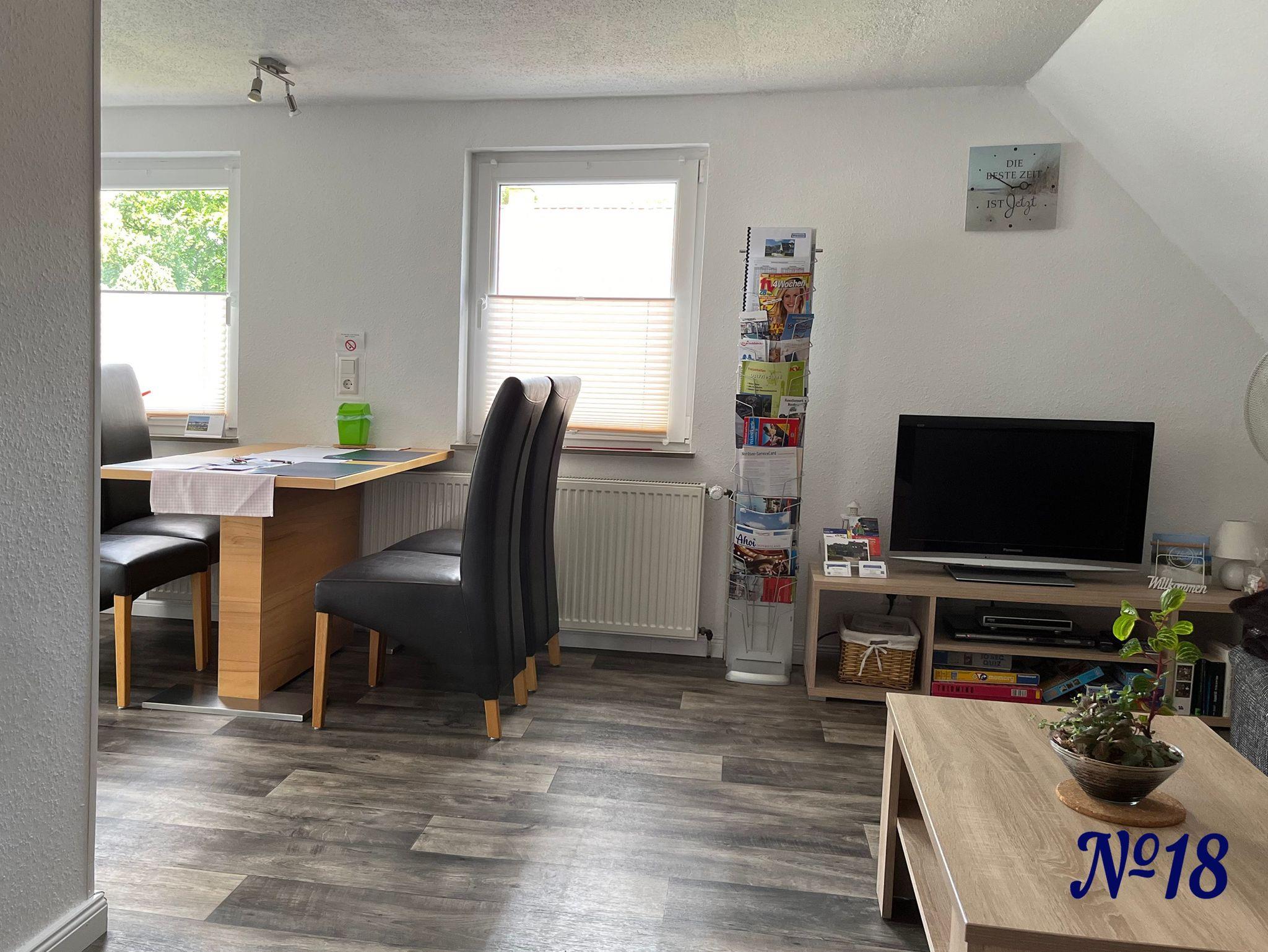Die Ferienwohnung befindet sich im Obergeschoss unseres Hauses, in einer ruhigen Siedlung am östlichen Stadtrand von Esens. Es gibt keinen Durchgangsverkehr. Trotzdem ist die Lage zentral. Die Innenstadt, mit der Fußgängerzone, ist fußläufig erreichbar. In 200 m Entfernung ist die Bushaltestelle Osthörn, mit Busverbindungen in die Stadt und nach Neuharlingersiel.