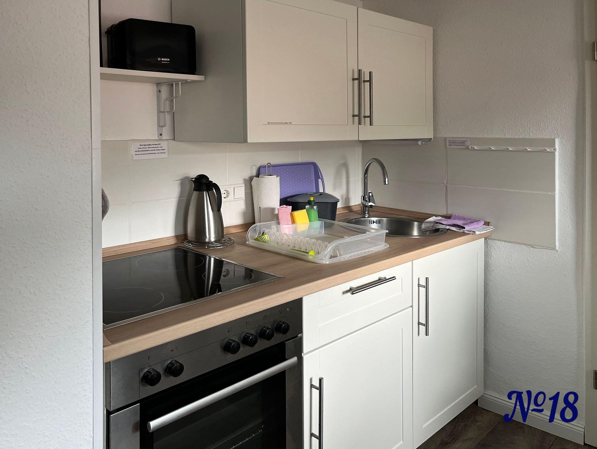 Besteck, Mikrowelle, Kaffeemaschine, Wasserkocher, Toaster, separater