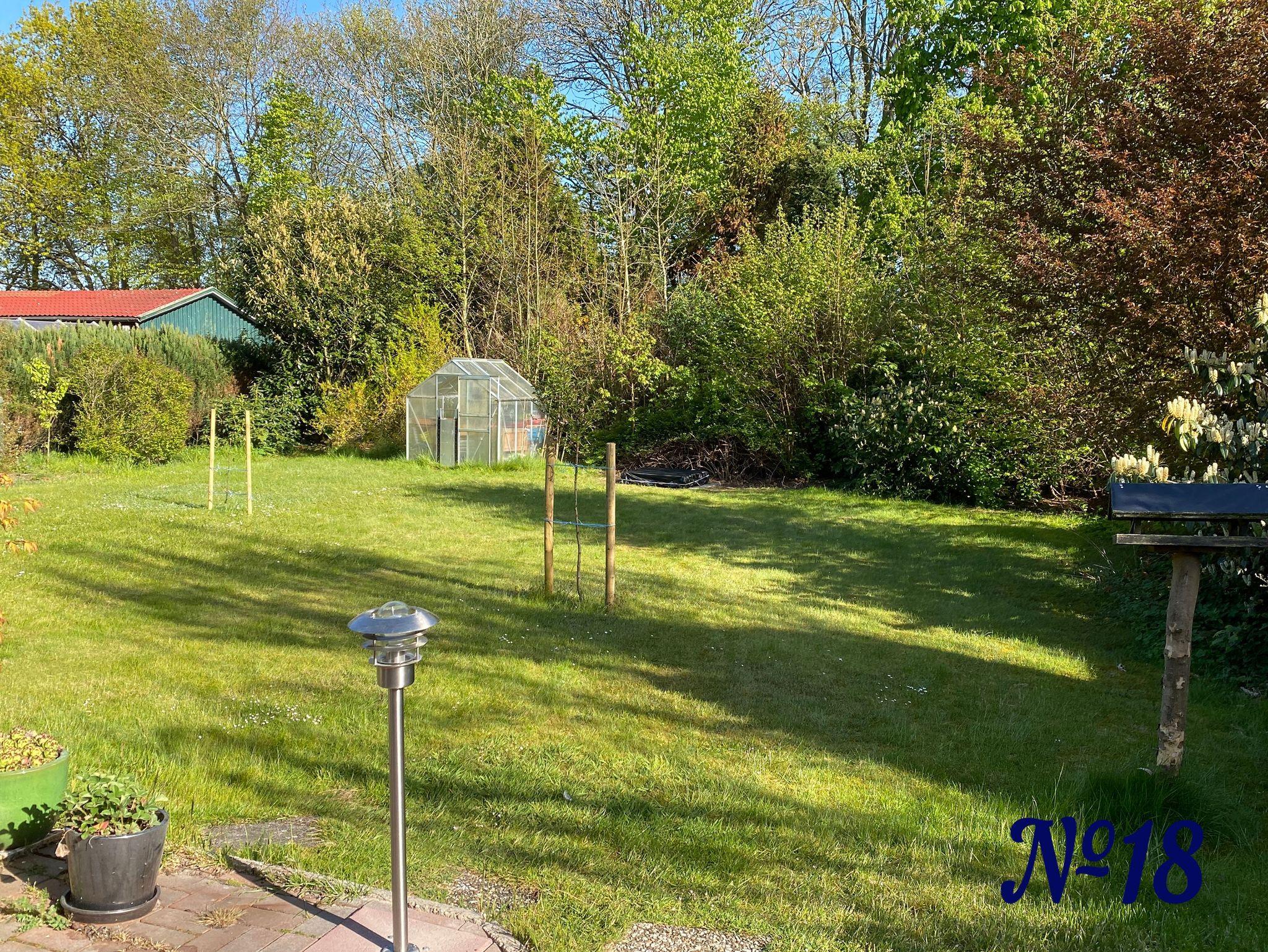 ebenerdige Dusche, WC, Fön. Auf der großen Wiese hinter dem Haus finden Sie einen Strandkorb und