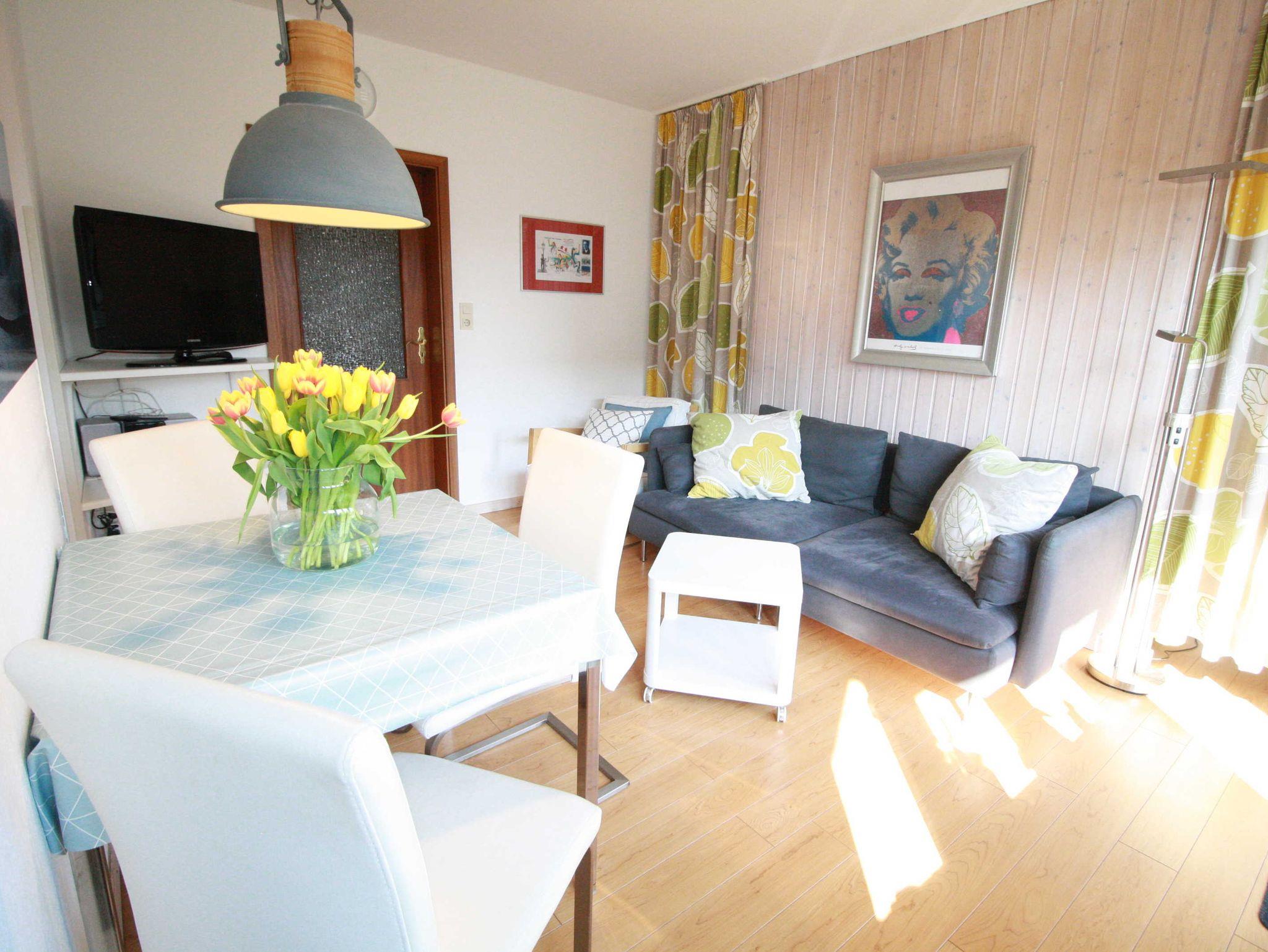 Es ist ca. 47 qm groß und hat einen Balkon. Es gibt einen Wohnraum mit abgetrenntem Schlafraum. Außerdem ein Kinderzimmer mit einem Einzelbett,. Die kleine Küche hat eine Spülmaschine, Ceranfeld, Mikrowelle, Filtermaschine und Senseo-Kaffeemaschine. Im angrenzenden Wohnzimmer befindet sich eine Couch, der Essbereich, Fernsehen und DVD-Player sind für uns selbstverständlich. Das Tageslichtbad hat Dusche und WC.