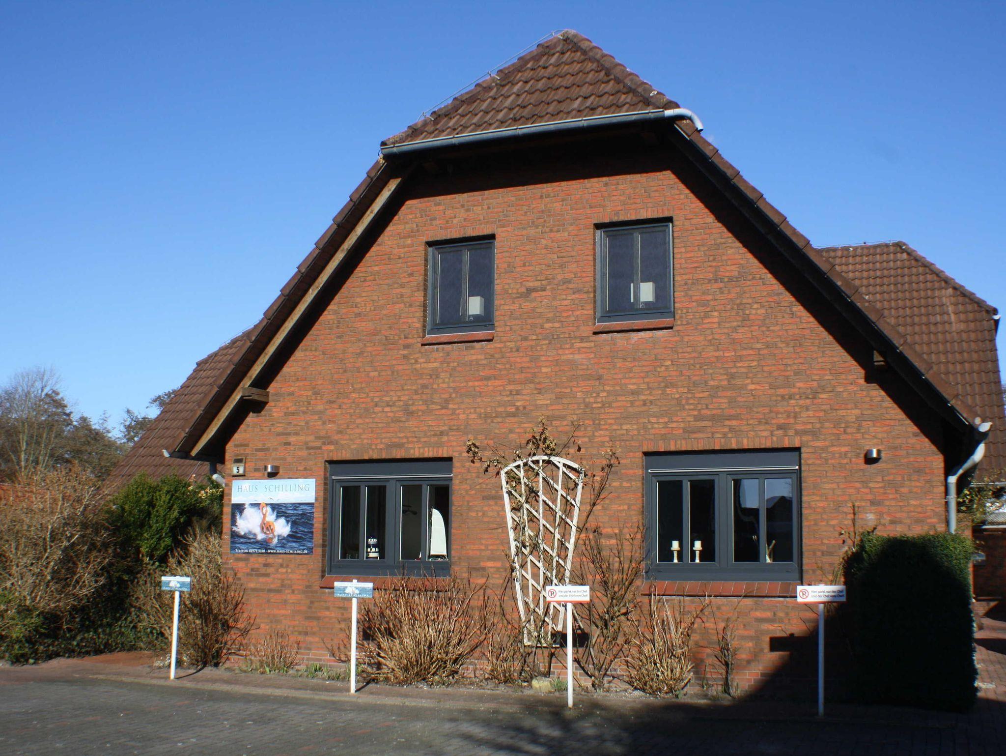 Unser Haus Schilling mit 5 Ferienwohnungen befindet sich nur 4 km entfernt vom Strand in Bensersiel.,