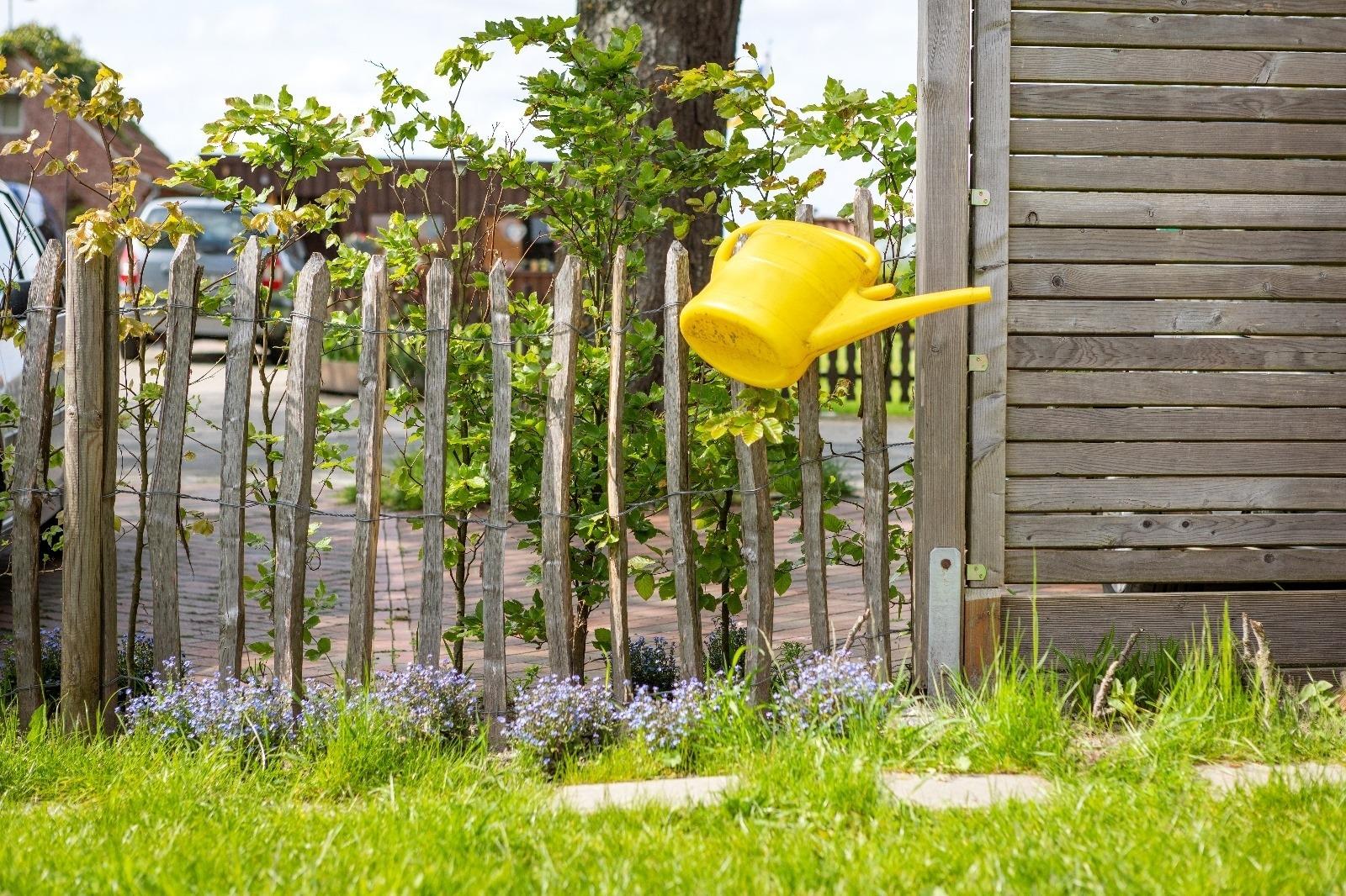 Ein kleiner, eingezäunter Gartenbereich mit Terrasse steht nur Euch zur Verfügung.