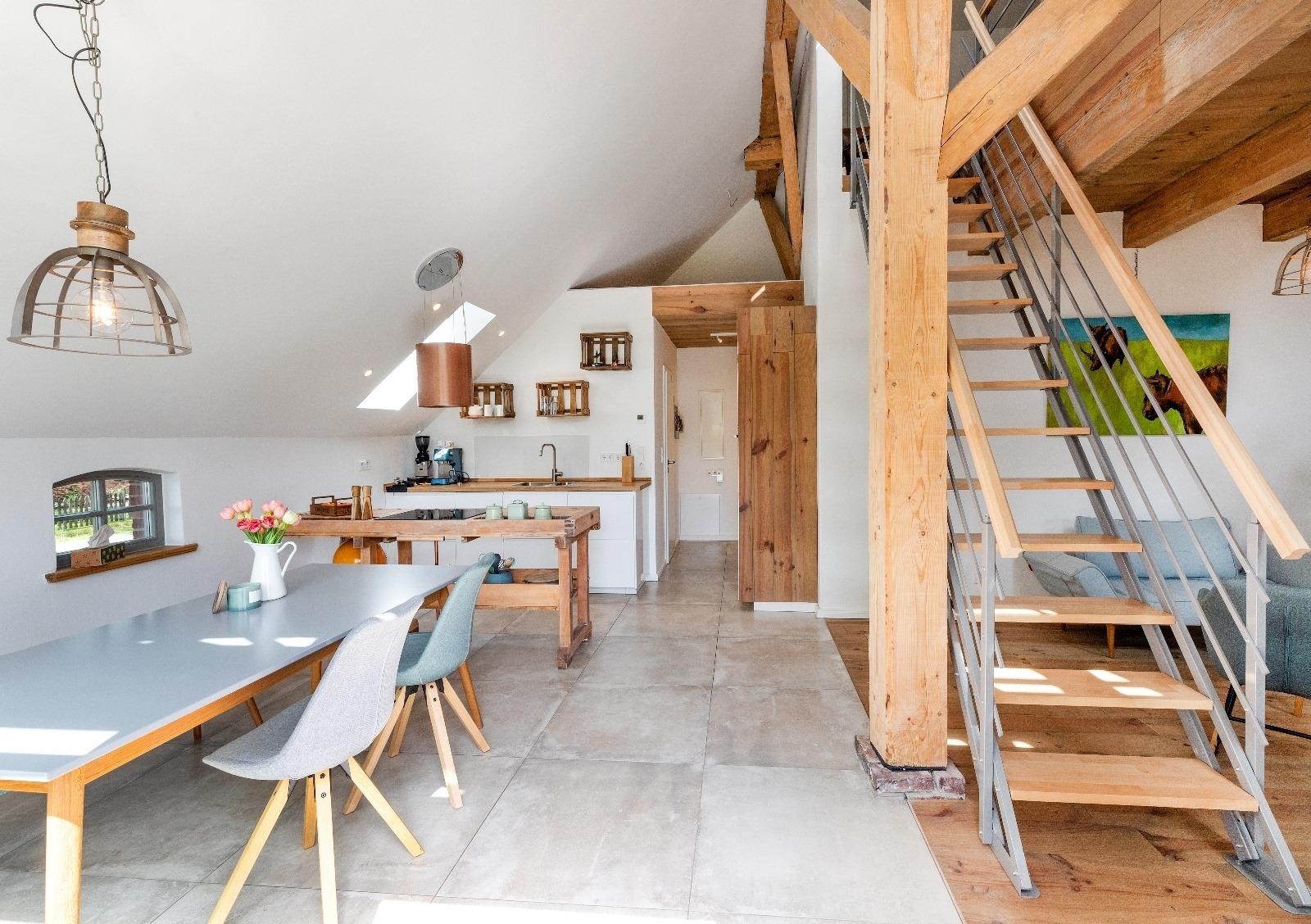 Das 1-Raum Apartment (55 qm) mit Schlafempore und Duschbad ist perfekt für zwei Personen geeignet, die in ostfriesischer Landschaft entspannen möchten. Die Kleine Auszeit ist urig umgebaut und mit allem eingerichtet was es braucht, um sich sofort wohl zu fühlen. Mit dem Rad ist der Ortskern Esens in 5 Minuten, Bensersiel mit Strand und Schifffahrt nach Langeoog in 15 Minuten problemlos zu erreichen.