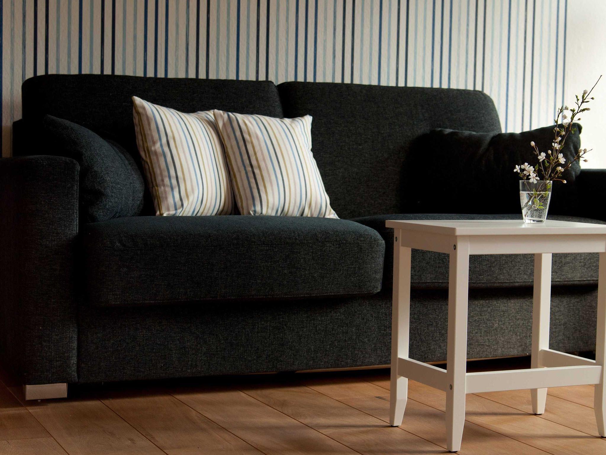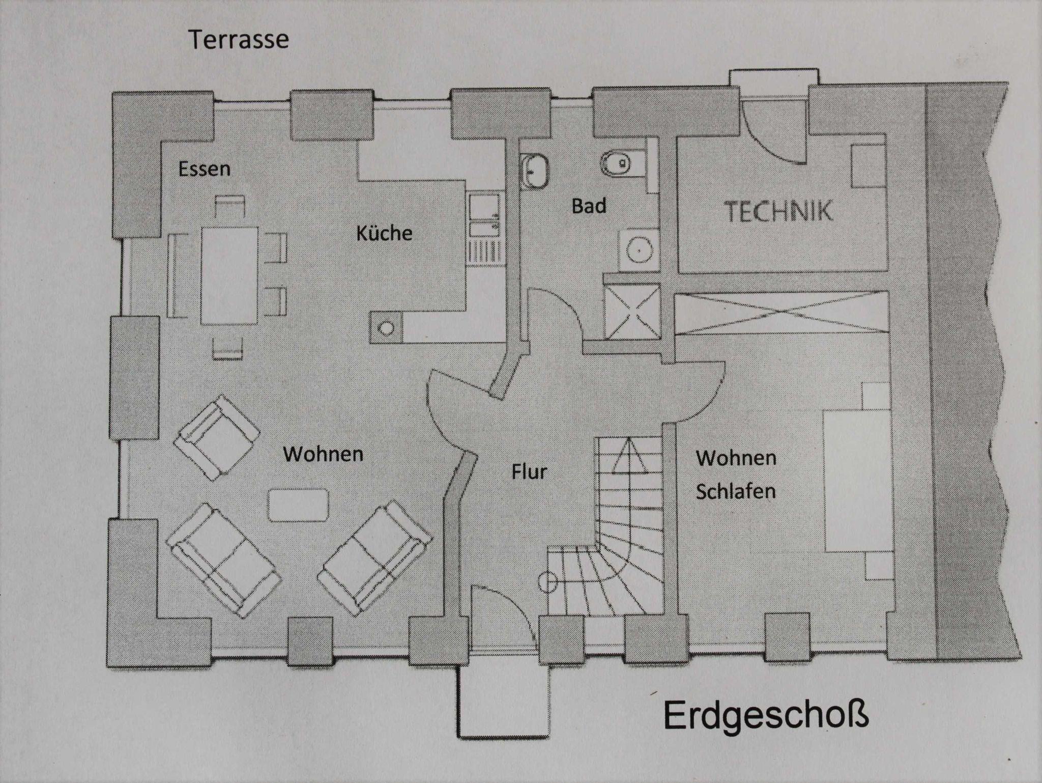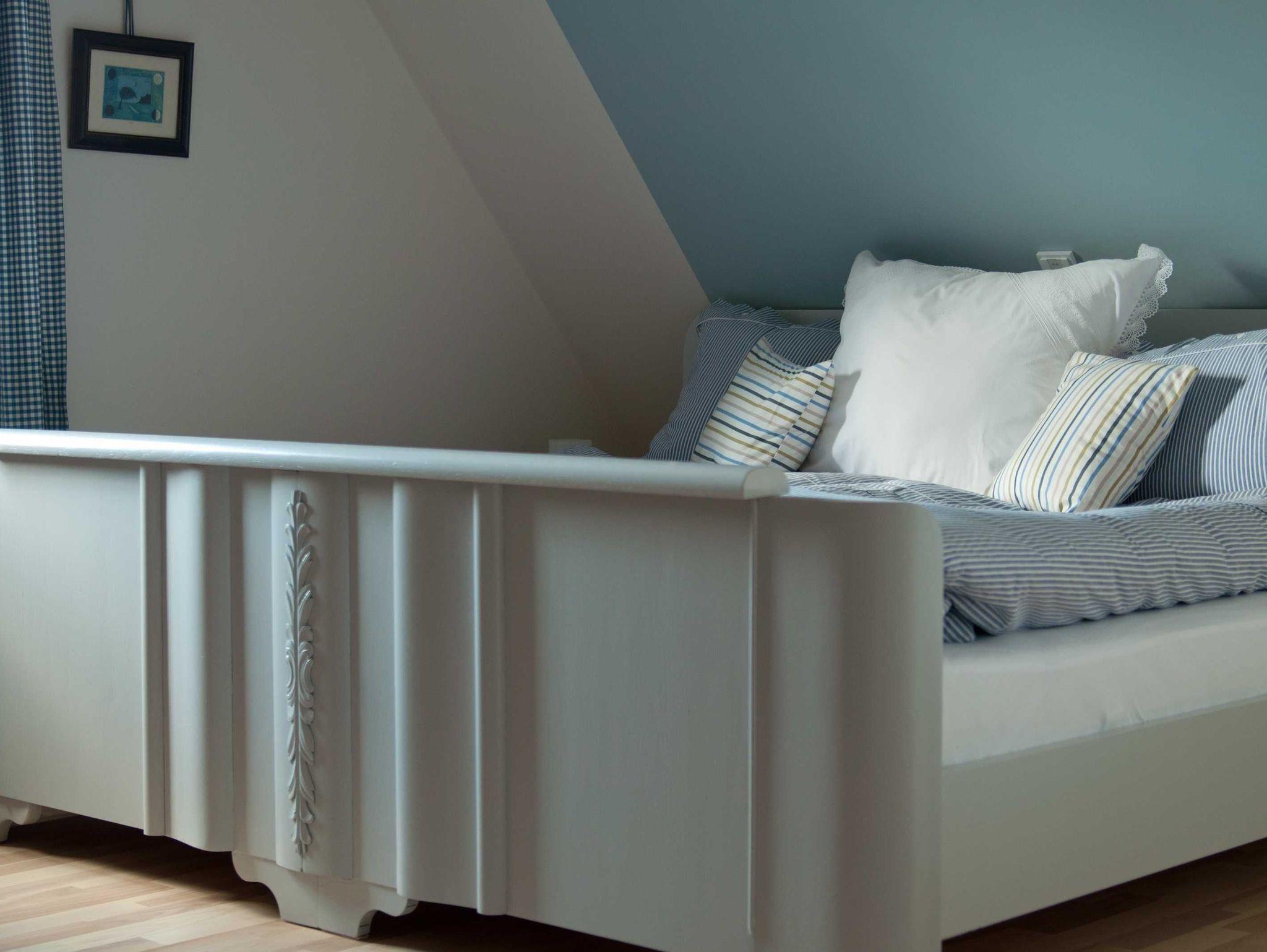 Das Schlafzimmer im Erdgeschoß ist mit einem Schlafsofa ausgestattet, so dass es auch als zweites Wohnzimmer, mitsamt Fernseher geeignet ist. Das Schlafsofa ist aufgrund seiner erhöhten Liegefläche auch für Menschen mit Einschränkungen geeignet.