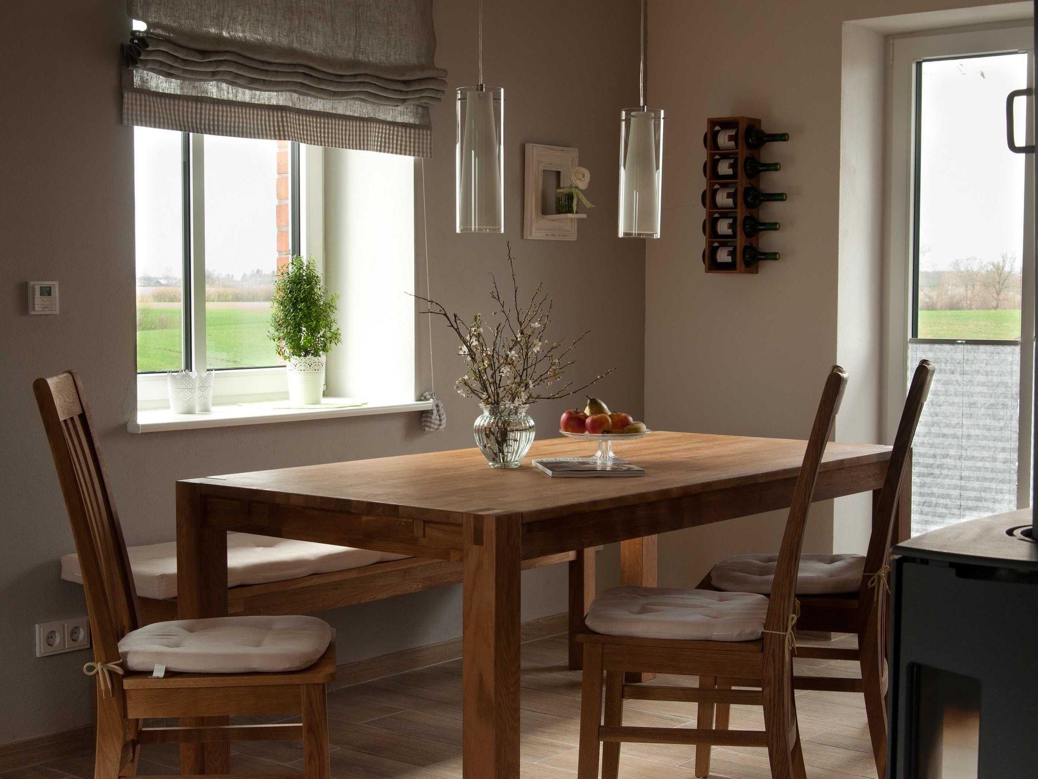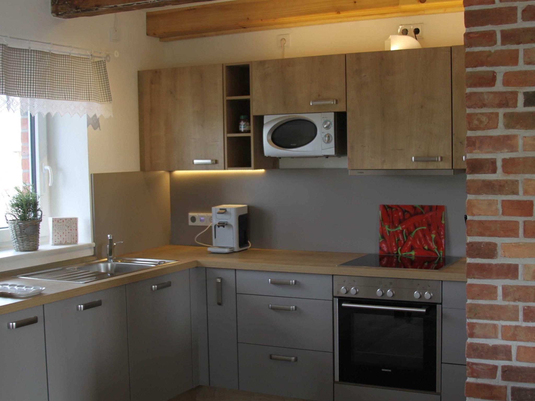 Die Küche ist ausgestattet mit einem Herd mit Cerankochfeld und einem modernen Backofen. Weiterhin gehört ein Kühlschrank mit Gefrierfach sowie ein Geschirrspüler zur Ausstattung. Eine Mikrowelle, wenn es mal schnell gehen soll, gehört genauso wie ein Toaster, eine Kaffeemaschine und eine Espressokanne dazu. Wir möchten, dass unsere Gäste, die im Urlaub Zeit und Lust zum Kochen haben, hier das nötige Werkzeug finden und vielleicht mit Spezialitäten aus der Region tolle Menüs zaubern.
