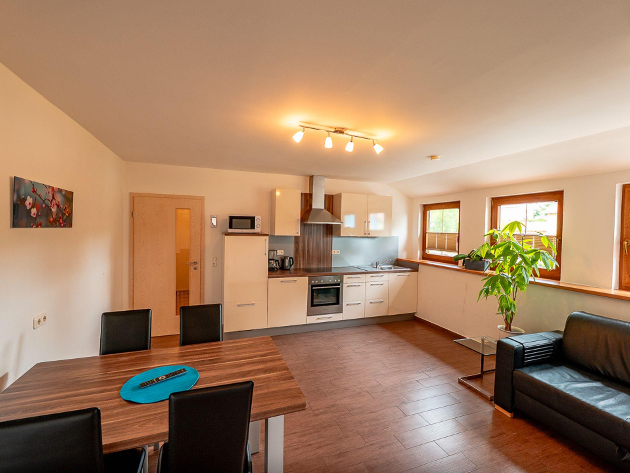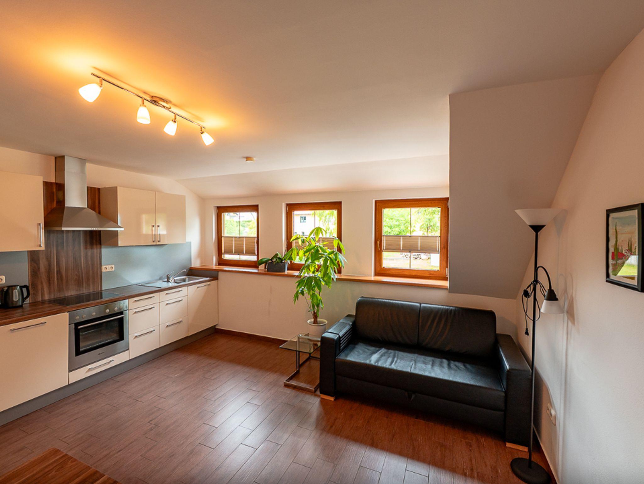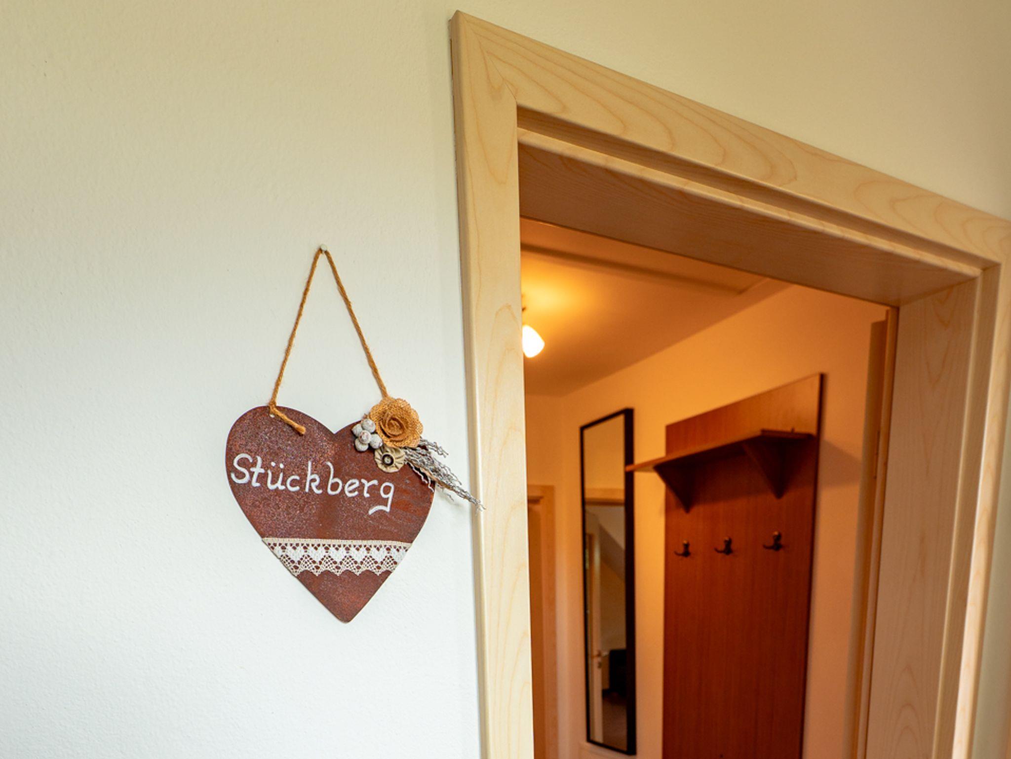 Die gemütliche Ferienwohnung „Stückberg“ bietet auf ca.?50?m² den idealen Rückzugsort für Paare oder kleine Familien mit bis zu 3 Personen. Sie verfügt über ein separates Schlafzimmer mit einem Doppelbett, ein modernes Badezimmer mit Dusche, sowie eine voll ausgestattete Küche. Im Wohnzimmer sorgt eine ausziehbare Couch (1,40?m breit) mit Matratzenauflage für zusätzlichen Schlafkomfort. Im Außenbereich lädt eine großzügige Liegewiese mit Gartenhaus, Gartenmöbeln und Grill zum Entspannen ein. Waschmaschine, Trockner, Bügeleisen, Bügelbrett und Wäscheständer stehen im Keller zur Verfügung. Für die kleinen Gäste sind ein Kinderreisebett und ein Hochstuhl vorhanden. Die Nichtraucherwohnung bietet kostenloses WLAN sowie auf Wunsch E-Bike-Verleih gegen Gebühr – perfekt für aktive Urlaubstage in der Natur.