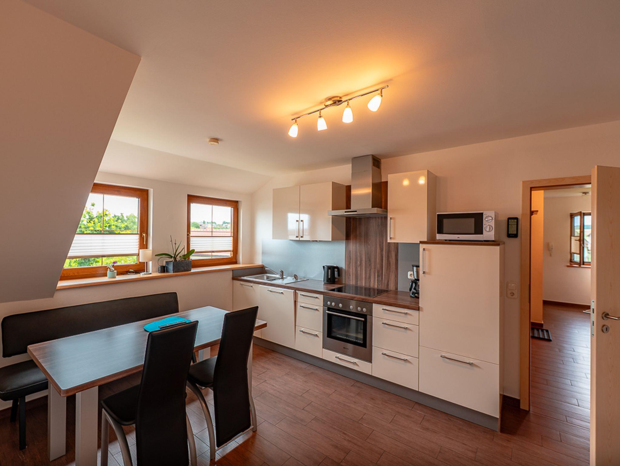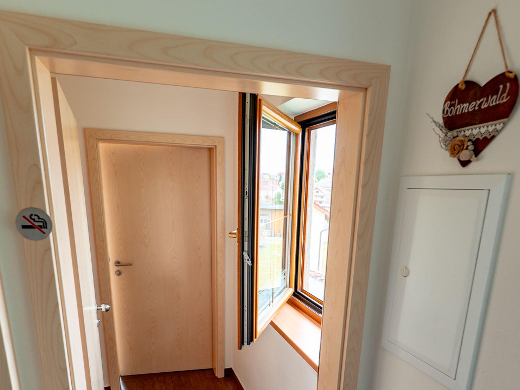 Die Ferienwohnung „Böhmerwald“ bietet auf ca.?60?m² viel Platz und Komfort für bis zu 4 Personen – ideal für Familien oder befreundete Paare. Sie verfügt über zwei separate Schlafzimmer (davon eines mit zwei getrennten Betten), eine gut ausgestattete Küche sowie ein Badezimmer. Die großzügige Liegewiese mit Gartenhaus, Gartenmöbeln und Grill lädt zu entspannten Stunden im Freien ein. Im Keller stehen Waschmaschine, Wäschetrockner, ein Bügelbrett, Wäscheständer und Wäschekorb zur Mitbenutzung bereit. Für Familien sind ein Kinderreisebett und ein Hochstuhl vorhanden. Die Nichtraucherwohnung ist mit kostenlosem WLAN ausgestattet, und ein E-Bike-Verleih wird gegen Gebühr angeboten – perfekt für einen aktiven und erholsamen Aufenthalt im Grünen.