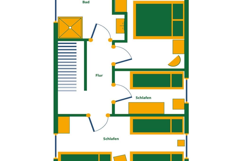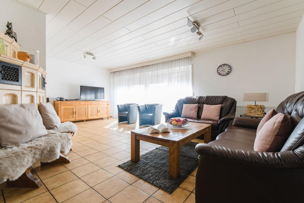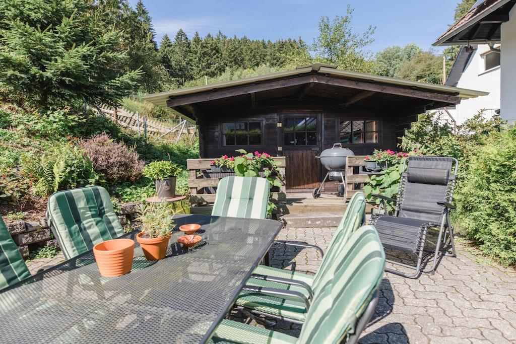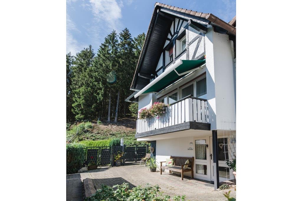Holiday home over 2 floors for sole occupancy, directly by the forest in an absolutely quiet south-facing slope. For 2 - 7 people, 3 bedrooms, sauna, tiled stove,