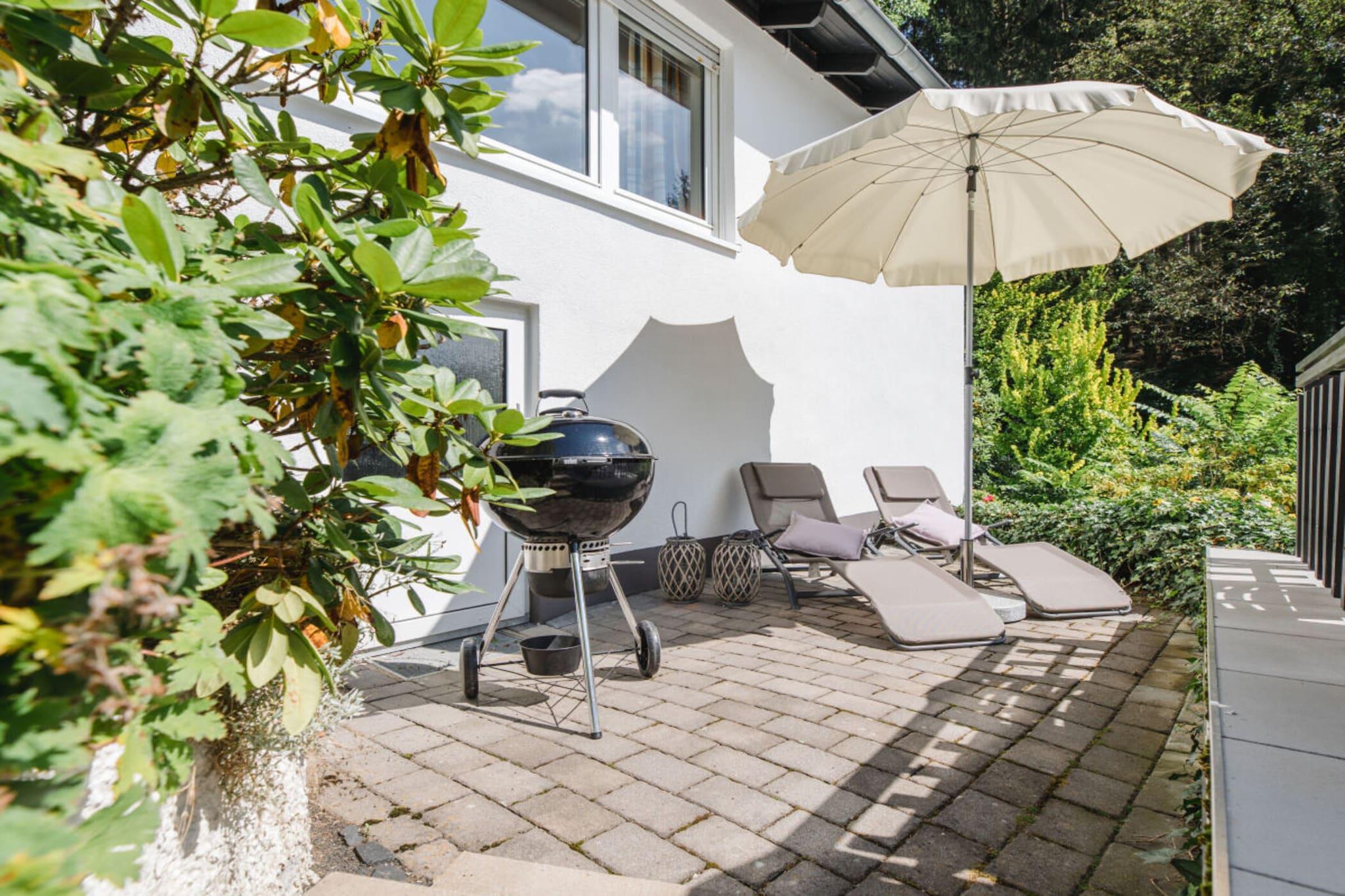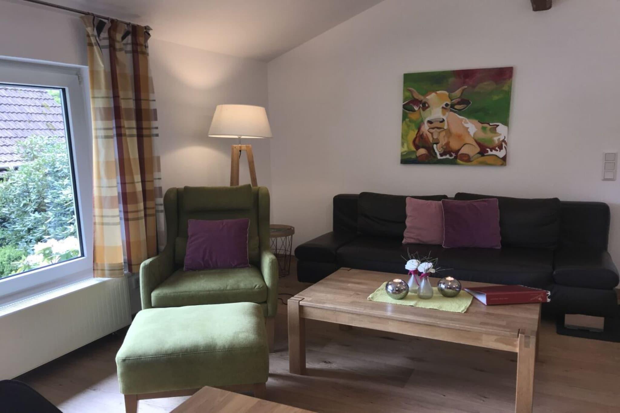 Stueetage: (Køkken(radio, kogeplade, elkedel, brødrister, kaffemaskine, ovn, mikrobølgeovn, opvaskemaskine , køleskab, fryser), stue / spisestue(Fjernsyn, radio, CD-afspiller), soveværelse(dobbeltseng), soveværelse(enkeltseng, enkeltseng), badeværelse(bruser, håndvask, toilet, Håndklæder inkl.)) terrasse, have, havemøbler, bordtennisbord, Gyngestativ