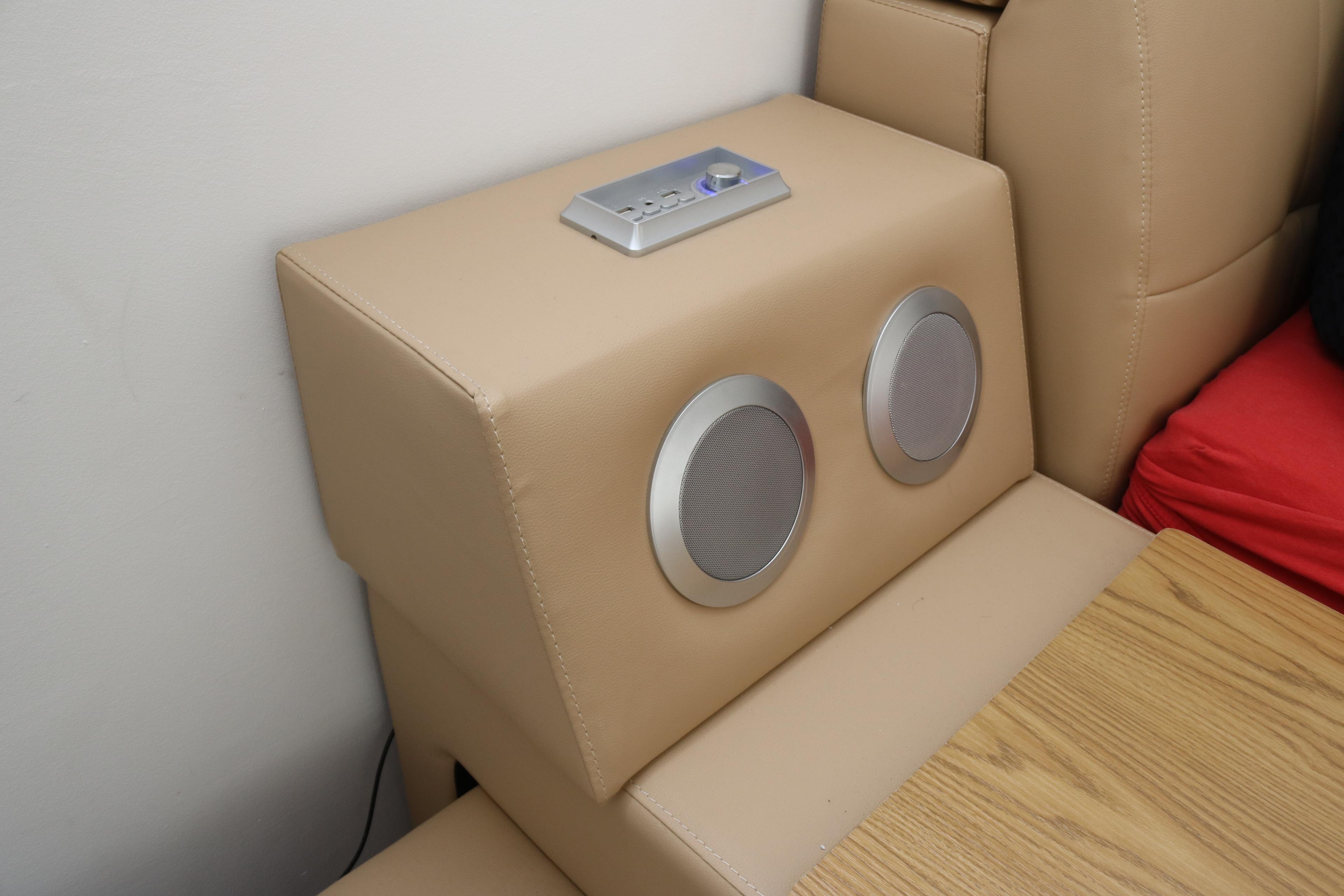 Das Schlafzimmer ist mit Wasser-Doppelbett, elektrische Massageliege mit Musikanlage, 3-türigem Kleiderschrank und 2 Clubsesseln ausgestattet.