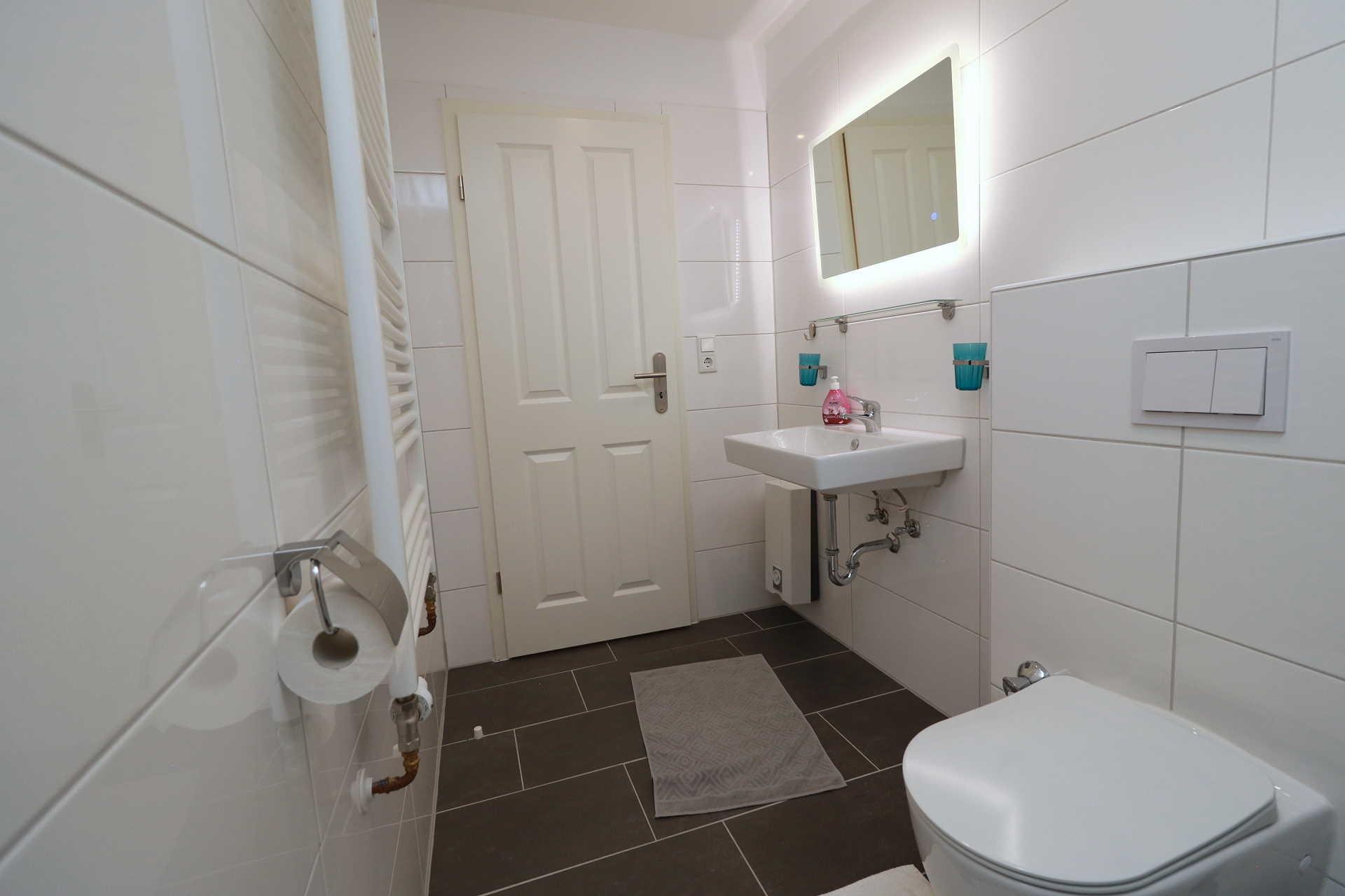 Die Küche verfügt über keine Spülmaschine. Kühlschrank mit 3-Sterne-Gefrierfach, Backofen, Ceranfeld, Dunstabzug mit Kochfeldberleuchtung, Spüle, Kaffeemaschine und Wasserkocher sowie Topfset/Pfanne, Geschirr, Besteck, Tassen und Gläser sind für 4 Personen sind vorhanden. Bei Buchung für 5 Personen stellen wir Ihnen weiteres Geschirr zur Verfügung.