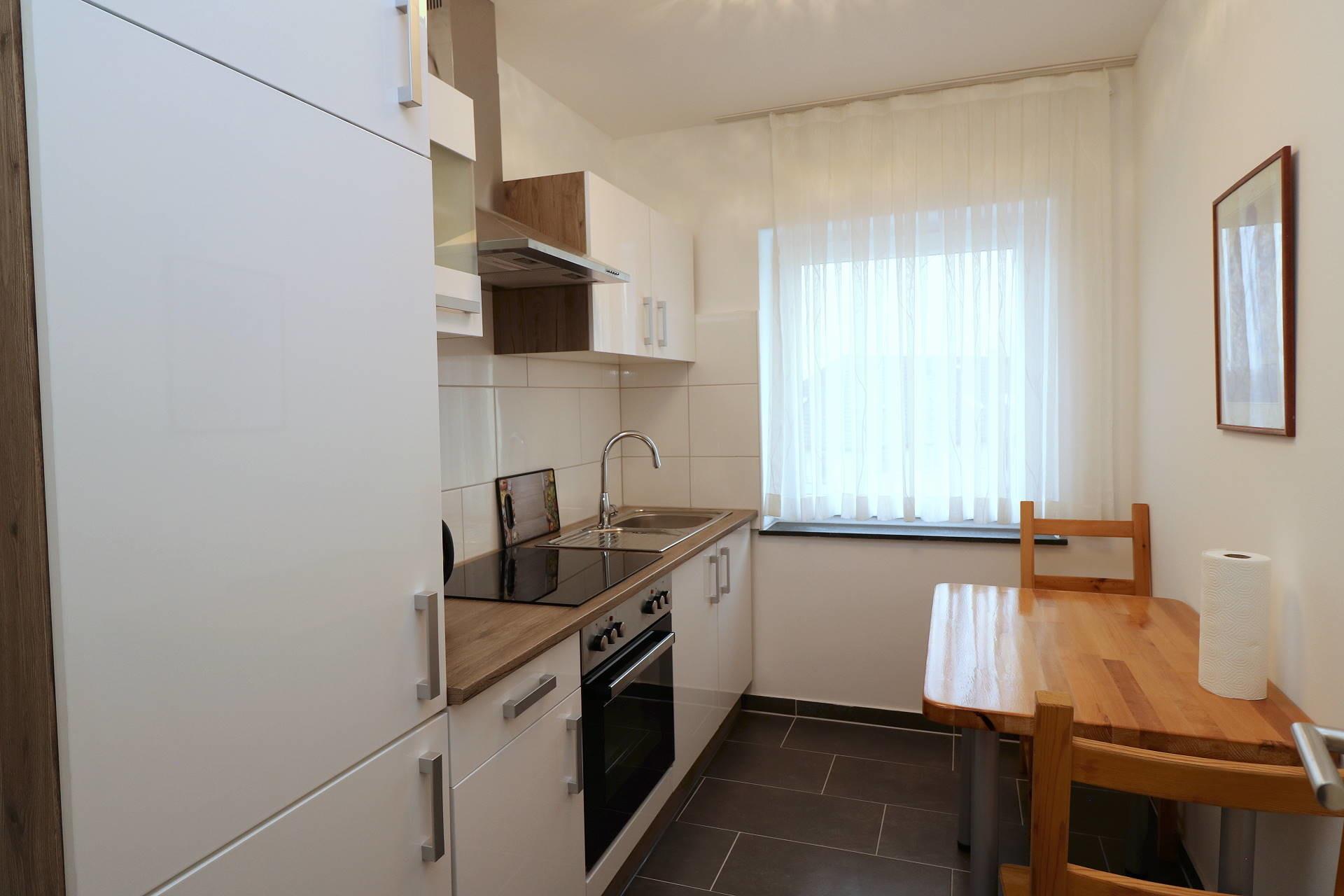 Die Küche verfügt über keine Spülmaschine. Kühlschrank mit 3-Sterne-Gefrierfach, Backofen, Ceranfeld, Dunstabzug mit Kochfeldberleuchtung, Spüle, Kaffeemaschine und Wasserkocher sowie Topfset/Pfanne, Geschirr, Besteck, Tassen und Gläser sind für 4 Personen sind vorhanden. Bei Buchung für 5 Personen stellen wir Ihnen weiteres Geschirr zur Verfügung.