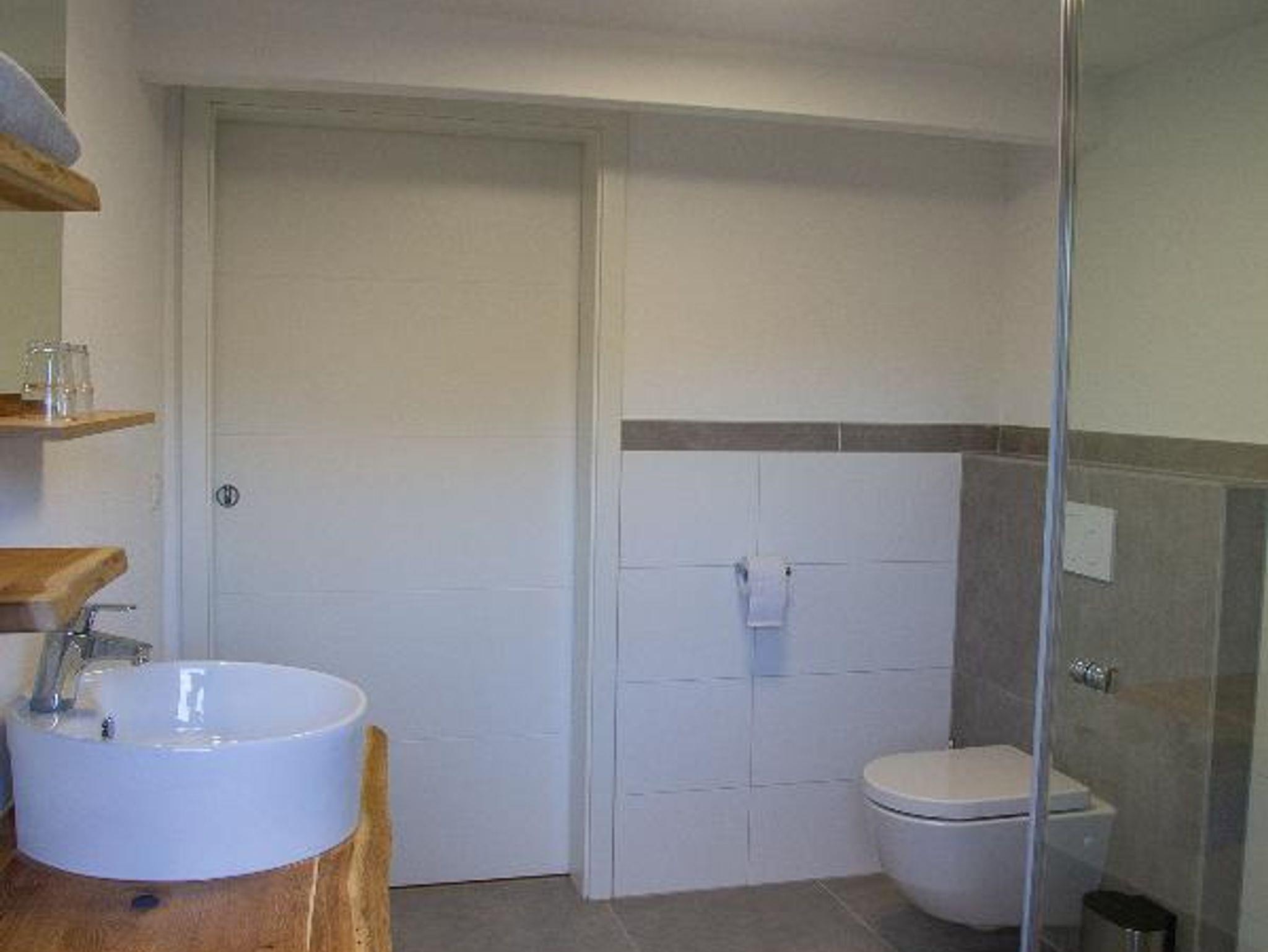 Wunsch Kinderbett und Flachbild-TV. Das geräumige Badezimmer mit ebenerdiger