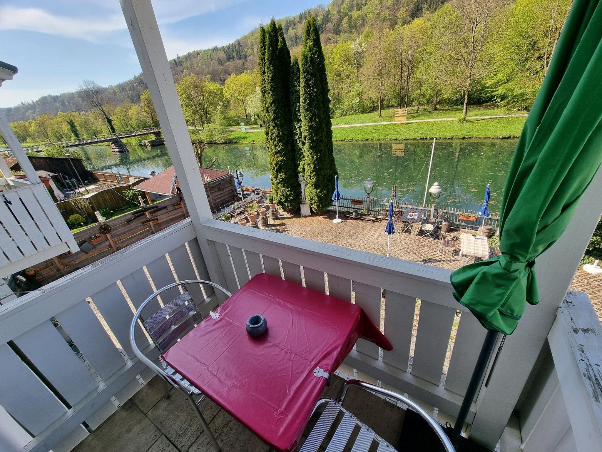 Cafe Altmühl, Ferienwohnungen Gästehaus Krimhilde direkt am Wasser, Ferienwohnung mit Balkon am Wasser