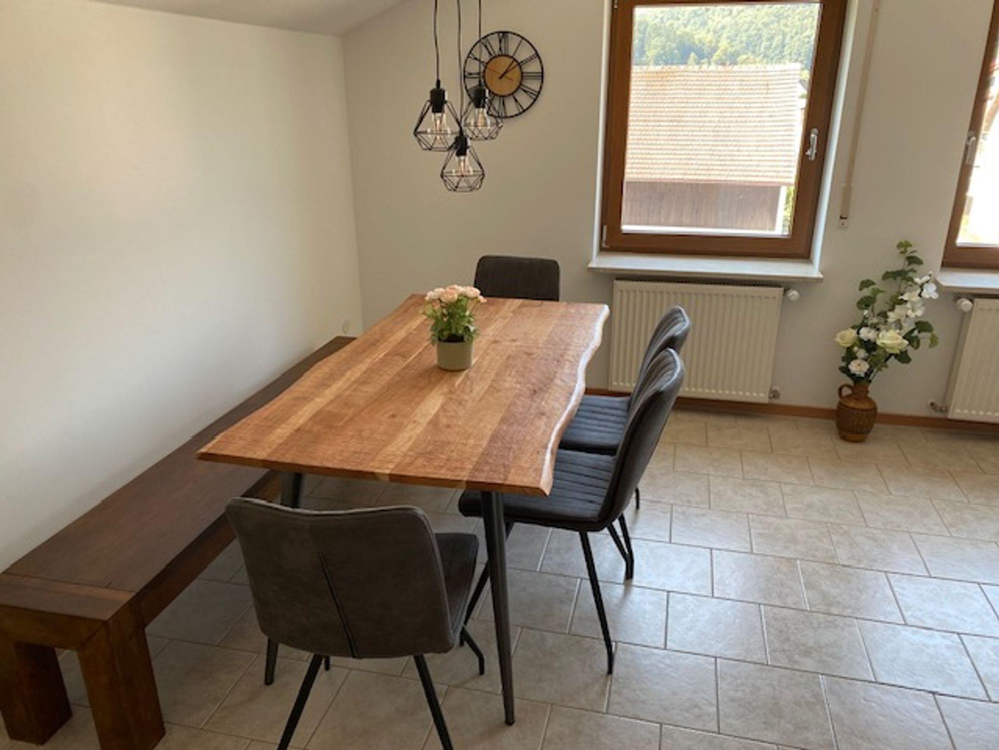 Im Wohn – und Esszimmer erleben Sie Unterhaltung auf einem 50 Zoll Sat- und Internet-TV sowie WLAN.