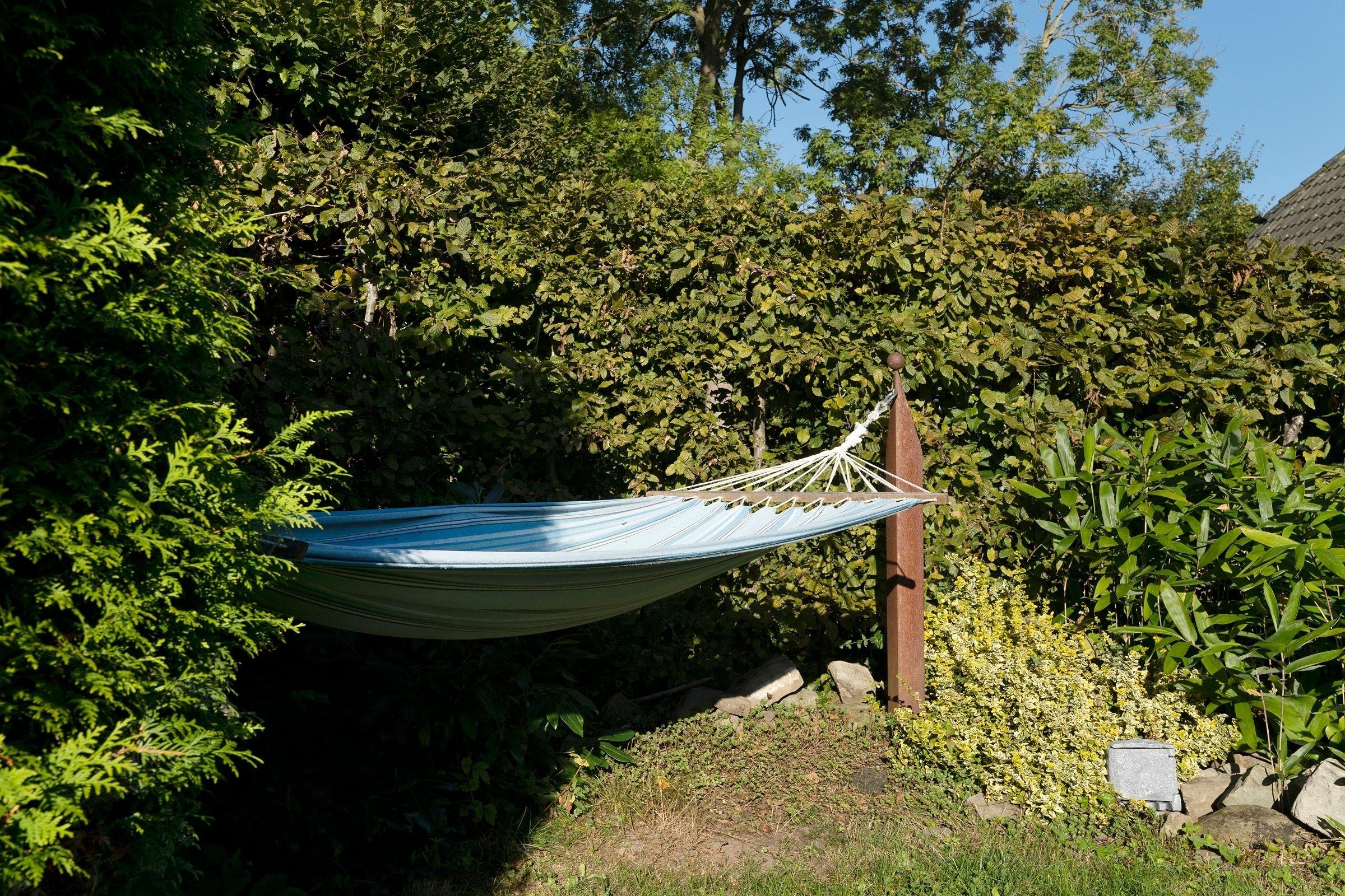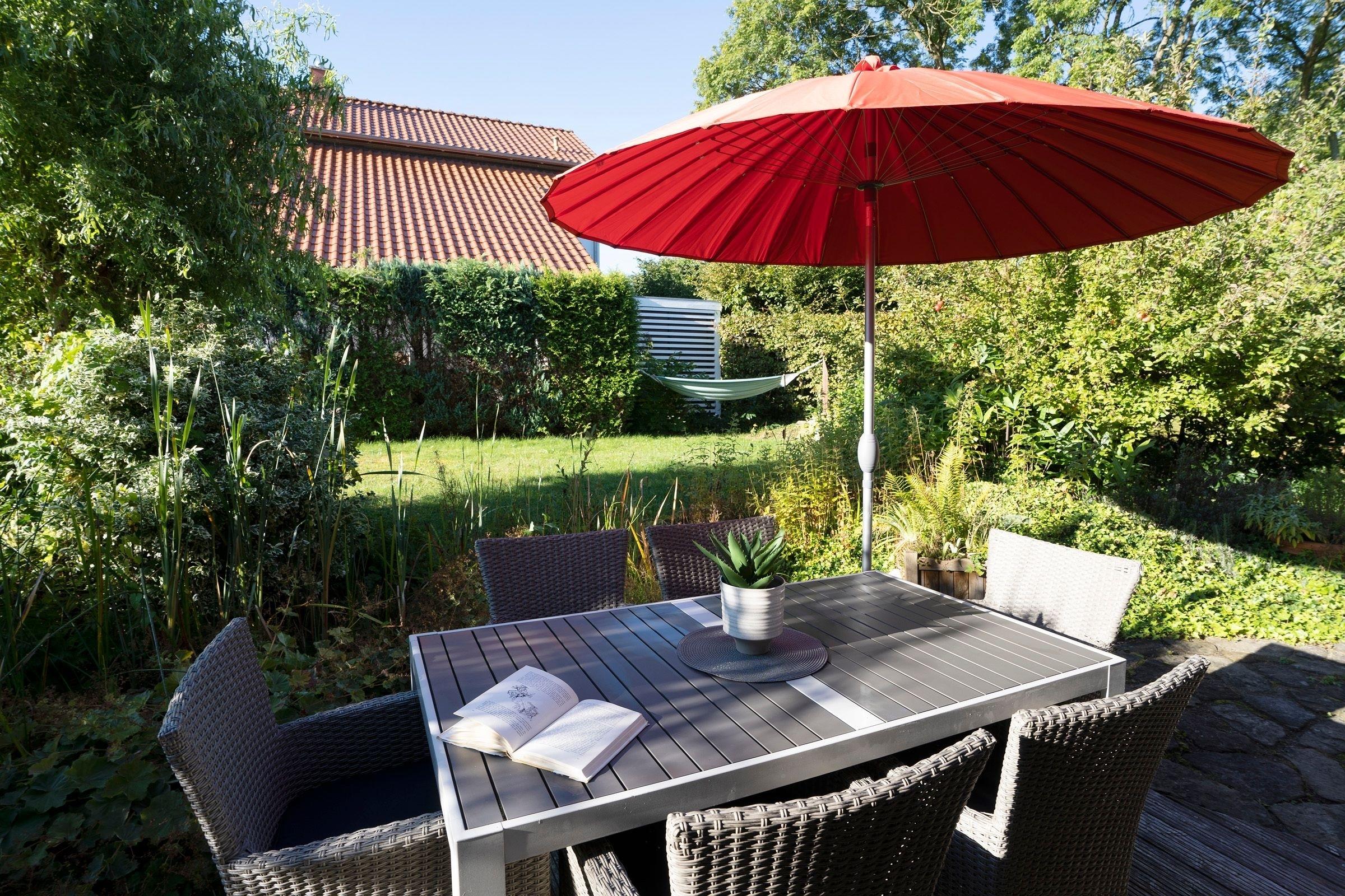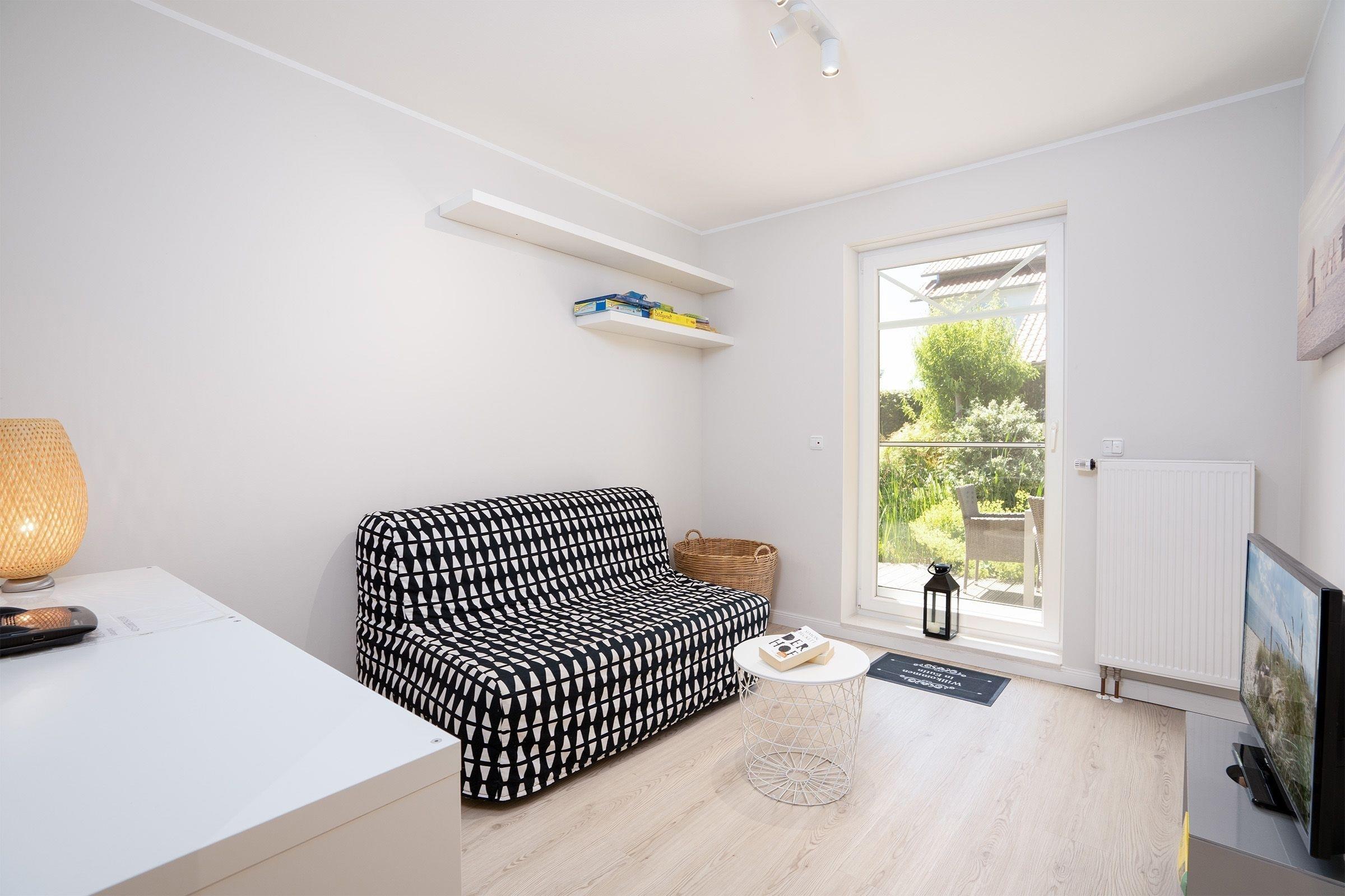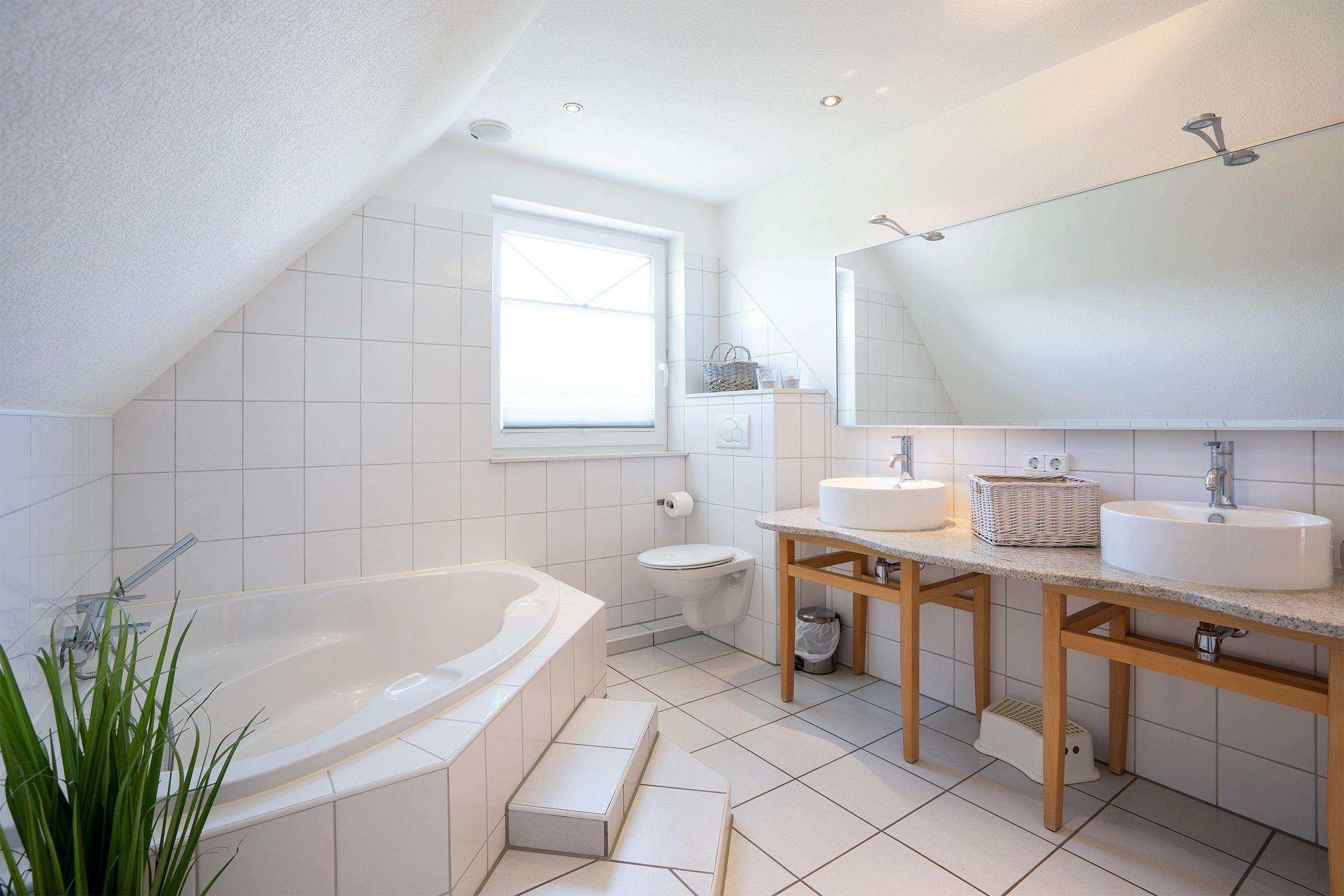 Das Ferienhaus beeindruckt durch ein lichtdurchflutetes Wohnzimmer mit einem Flachbild-TV und einer Sofalandschaft. In der offenen, integrierten Küche bereiten Sie Ihre Mahlzeiten zu und können diese am angrenzenden Essplatz gemeinsam einnehmen. Von hier aus gelangen Sie auf die möblierte Terrasse und in den Garten. Lassen Sie den Tag im Strandkorb oder in der Hängematte ausklingen. Ein Kohlegrill steht für gemeinsame Grillabende bereit. Im 1. Obergeschoss erwarten Sie drei Schlafzimmer, eines davon mit Doppelbett (140x200 cm). Das zweite Schlafzimmer bietet mit zwei Einzelbetten (90 x 200 cm) viel Schlafkomfort. Das letzte Schlafzimmer verfügt ebenfalls über zwei Einzelbetten (je 80 x 200 cm und 90 x 200 cm), wovon ein Bett zu einem weiteren Schlafplatz (80 x 200 cm) ausgezogen werden kann. Alle Schlafzimmer sind mit einem Kleiderschrank und einer Verdunkelungsmöglichkeit (Plissees) ausgestattet, Platz für ein Babybett ist ebenfalls vorhanden. Für das Rundum-Urlaubsgefühl sorgen im Badezimmer eine Fußbodenheizung, die große Eckbadewanne und eine Dusche sowie ein separates Gäste-WC im Erdgeschoss.