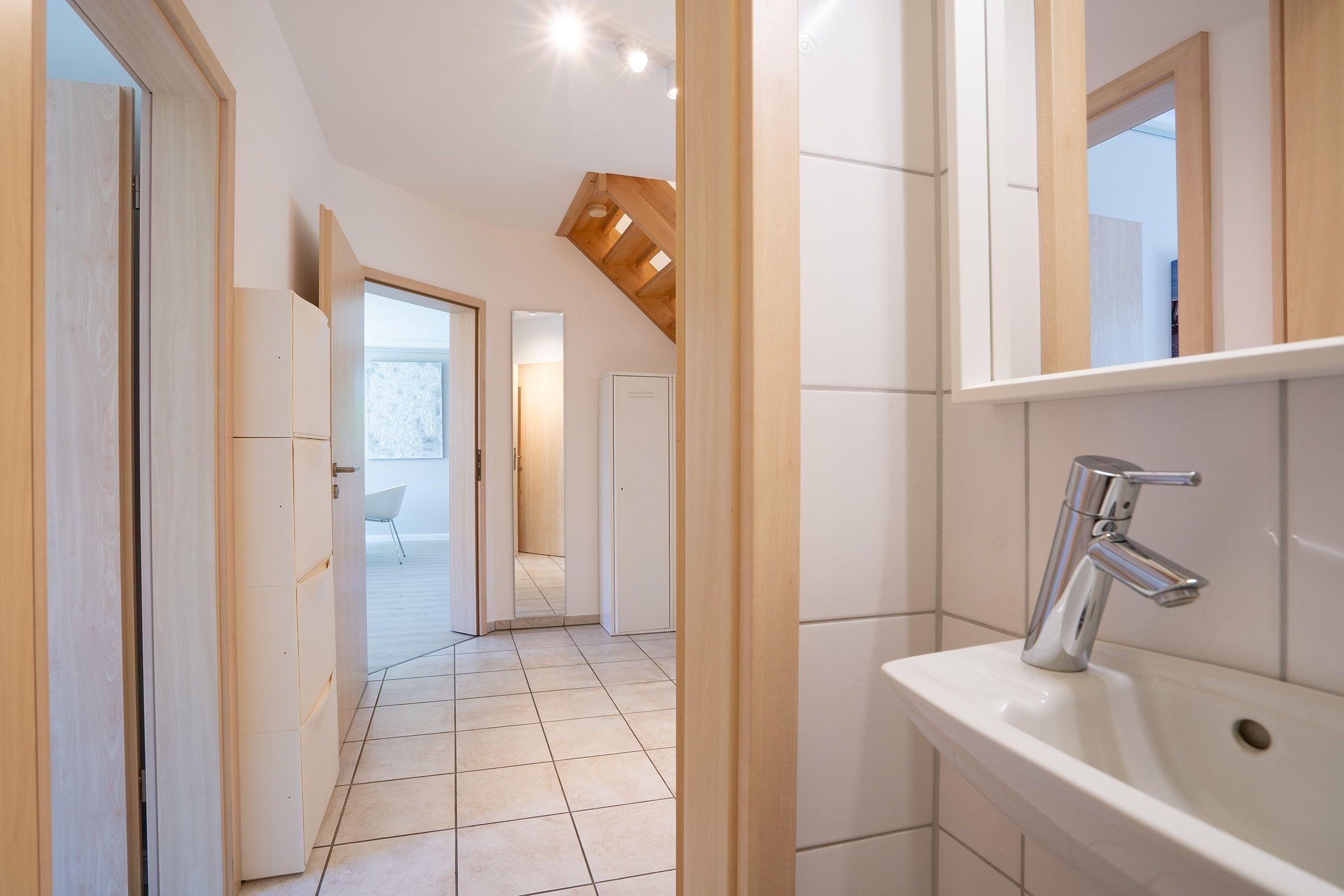 Mitgebrachte Fahrräder können ebenfalls im Carport untergestellt werden. Eine Waschmaschine steht Ihnen zur Eigennutzung gegen Gebühr zu Verfügung. Zur Grundausstattung für die kleinen Gäste gehören ein Kinderreisebett, eine Wickelvorrichtung, ein Kinderhochstuhl sowie ein Bollerwagen.