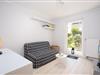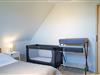 Schlafzimmer 1 (1. OG): 1 Einzelbett (90 x 200 cm), 1 Einzelbett (80 x 200 cm mit Ausziehfunktion zum Doppelbett, 160 x 200 cm), Kleiderschrank, Verdunkelung (Plissees), Platz für Babybett