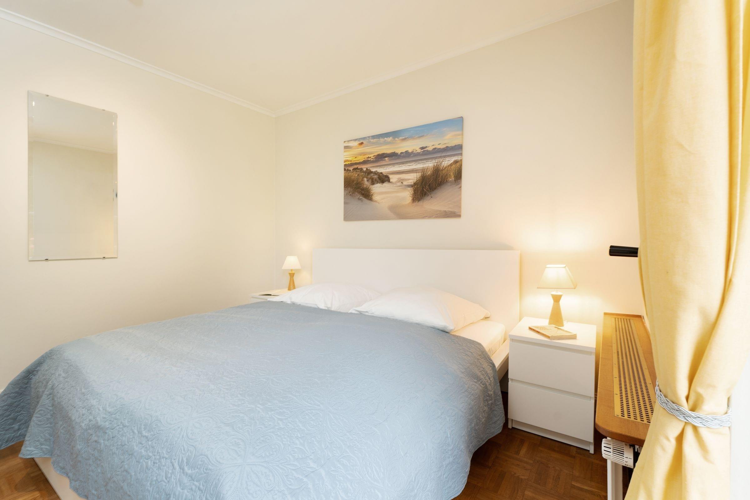 Schlafzimmer 2: 1 Doppelbett (2x 80x200 cm), Kleiderschrank, Verdunkelung: Fensterläden, Platz für Babybett vorhanden