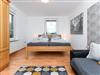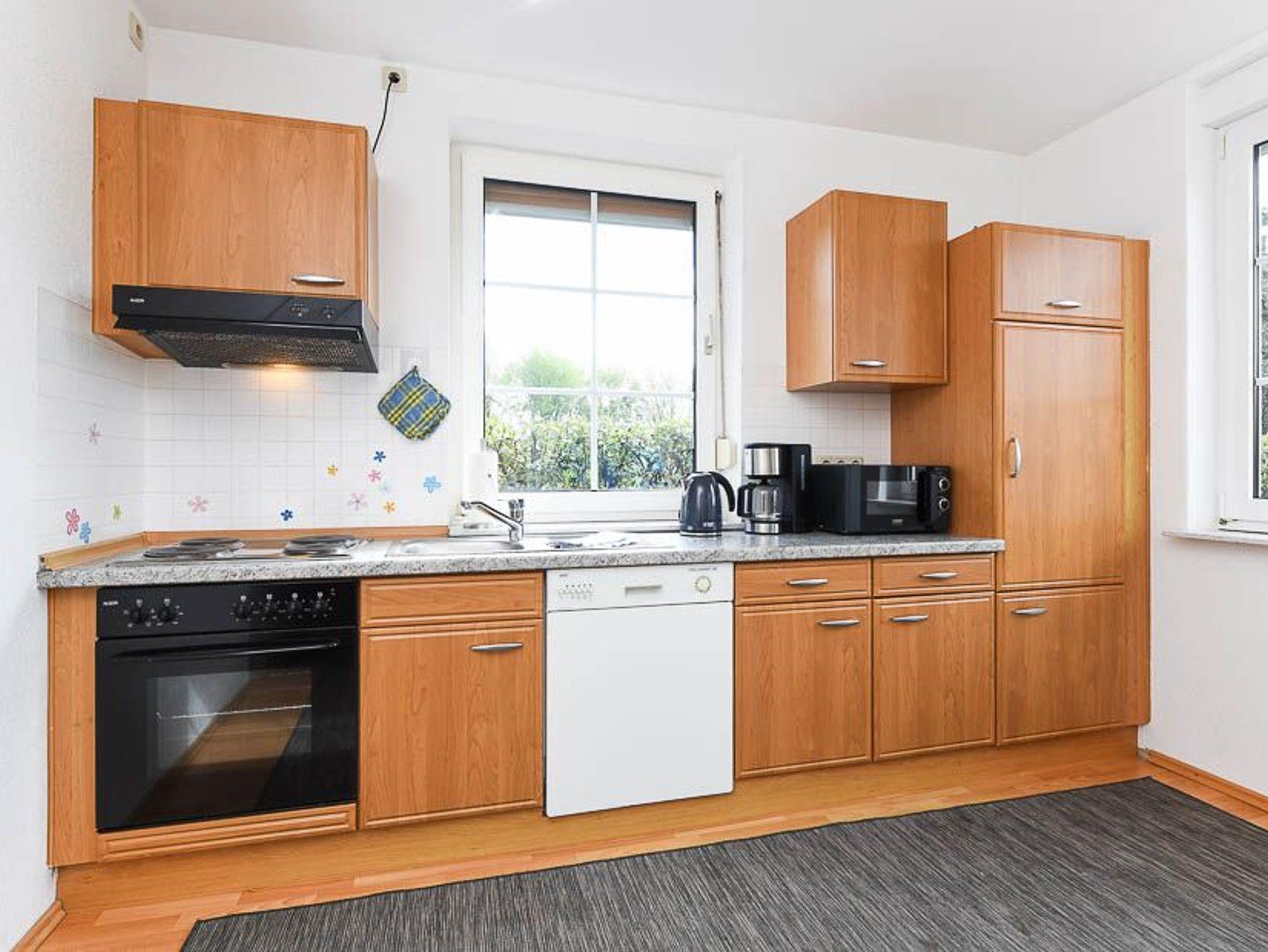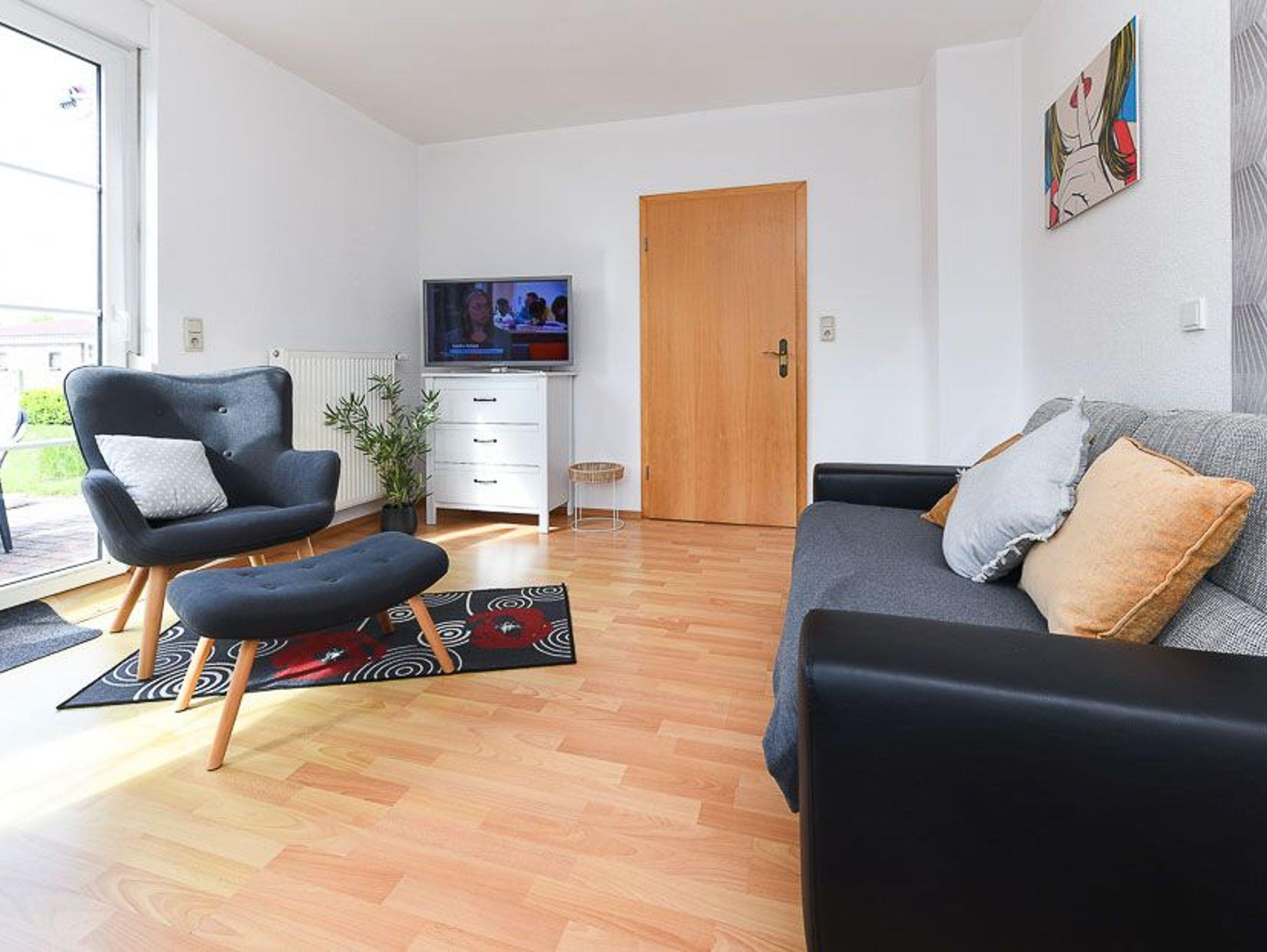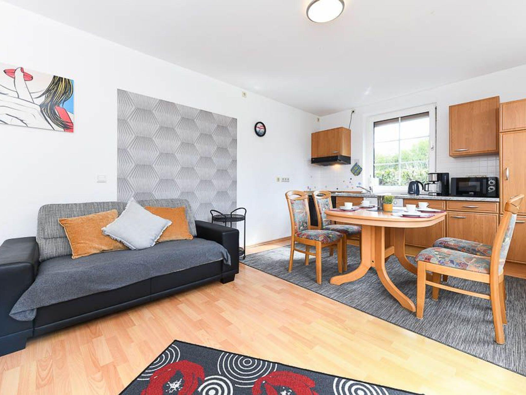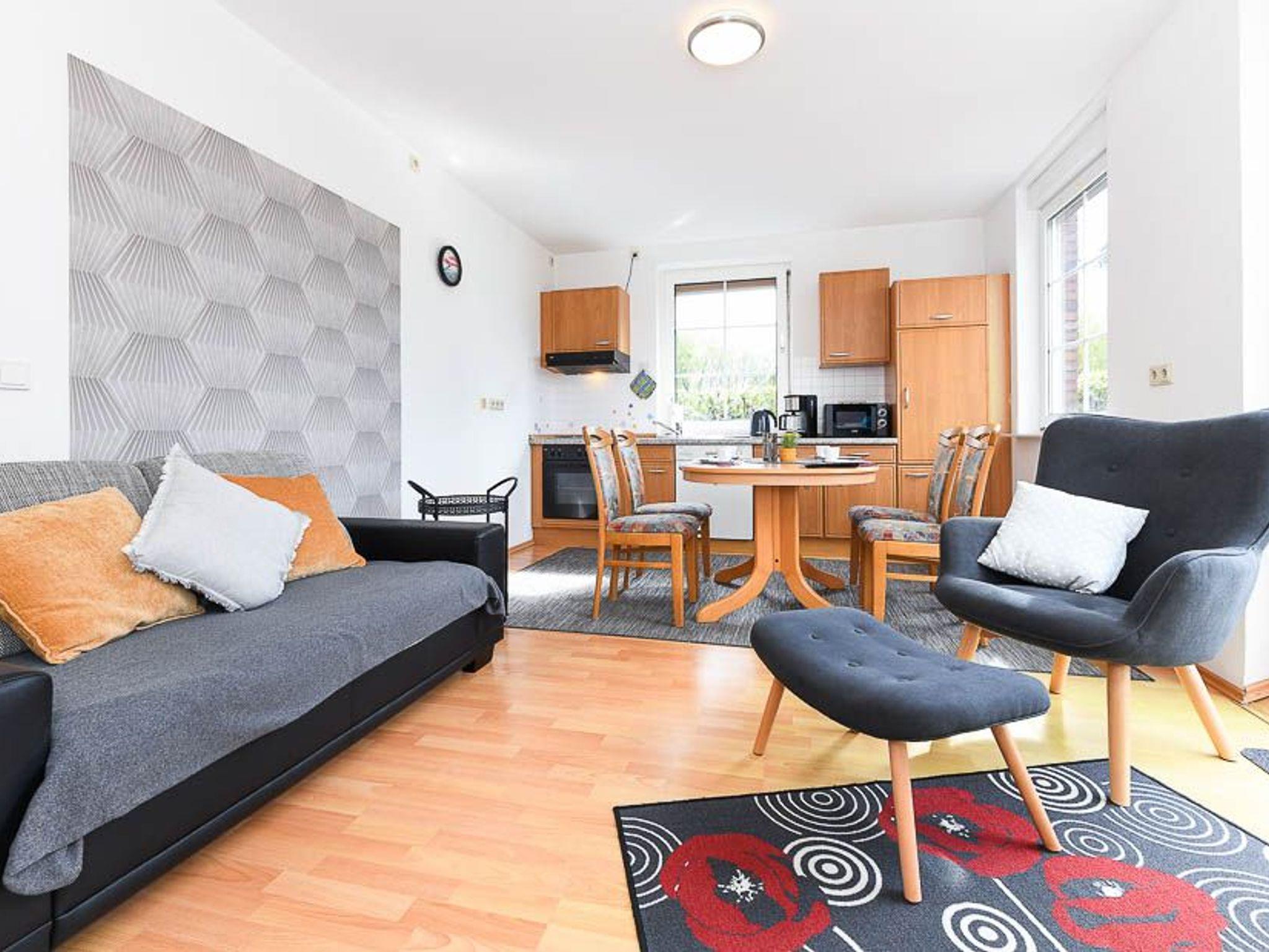 Größe ca. 99 Quadratmeter, Wohnraum mit integrierter Küche und Essgruppe, Schlafzimmer, zweites separates Schlafzimmer/Kinderzimmer, Badezimmer mit Dusche und Waschtisch, separates WC mit Waschtisch, separates zweites WC mit Waschtisch, Erdgeschoss, Terrasse, Parkplatz am Haus,optimal für 1 bis 4 Personen.