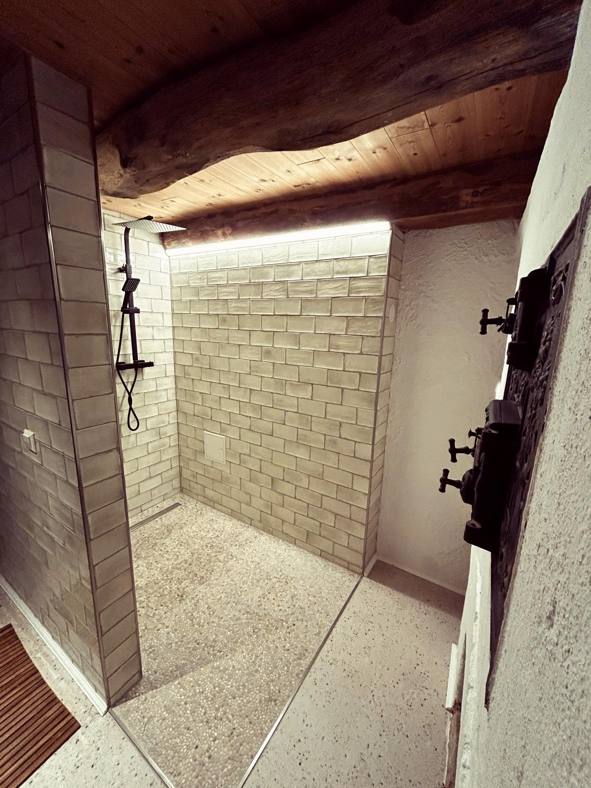 • Modernes kleines Bad mit ebenerdiger Dusche