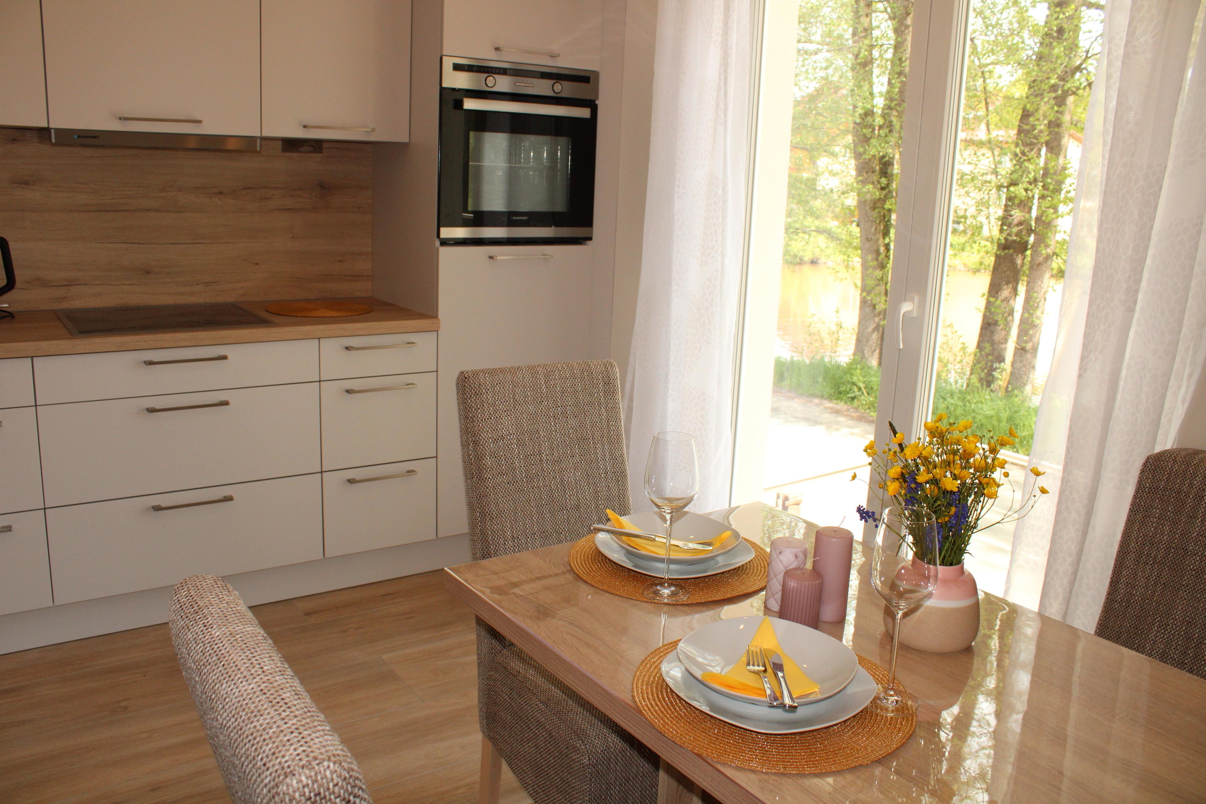 * vollausgestattete Küche mit Spülmaschine, Ceran Kochfeld, Backofen in Arbeitshöhe, Kühl-/Gefrierschrank,