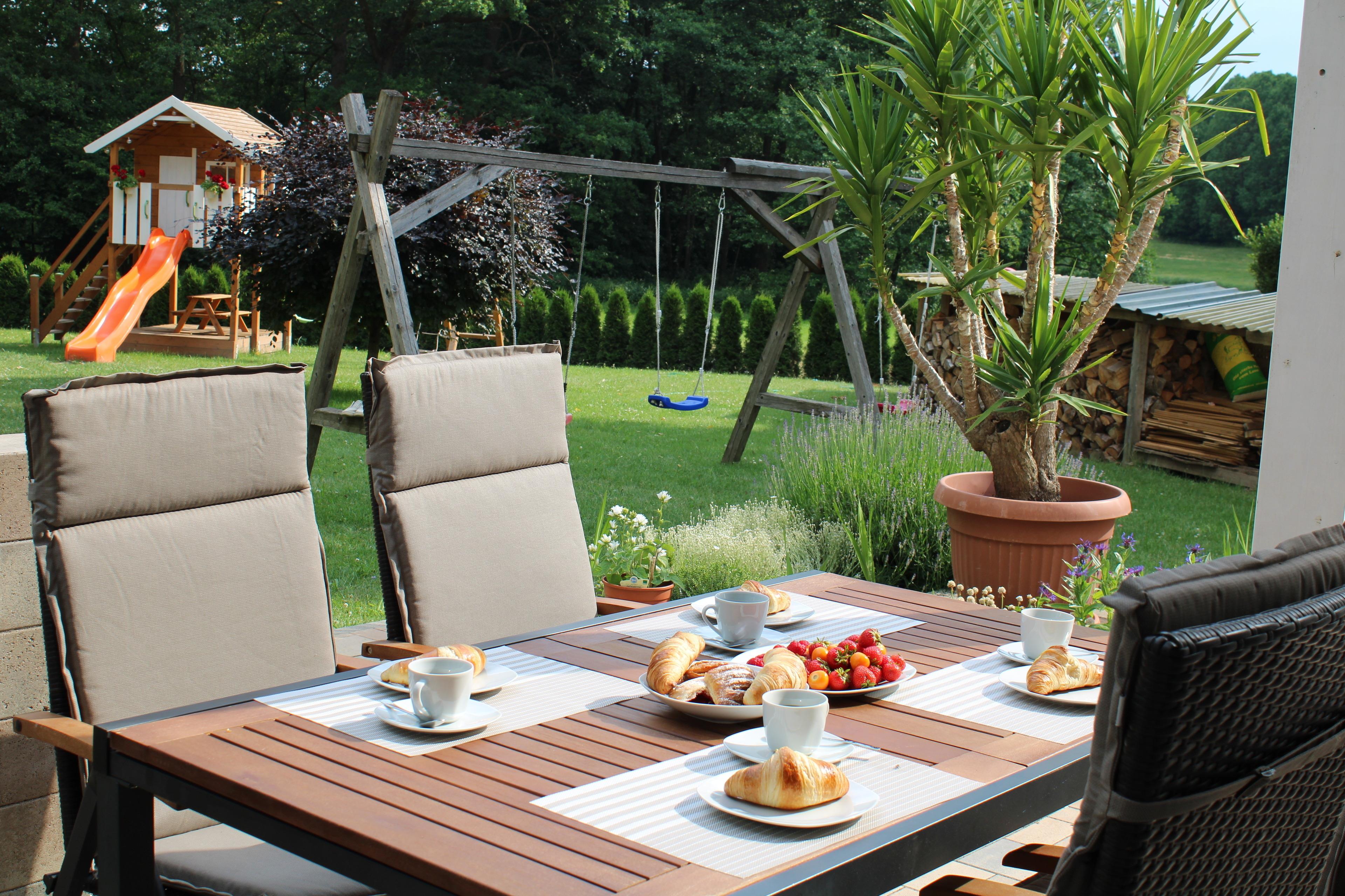 * Terrasse mit Gartenmöbel und Grillmöglichkeit