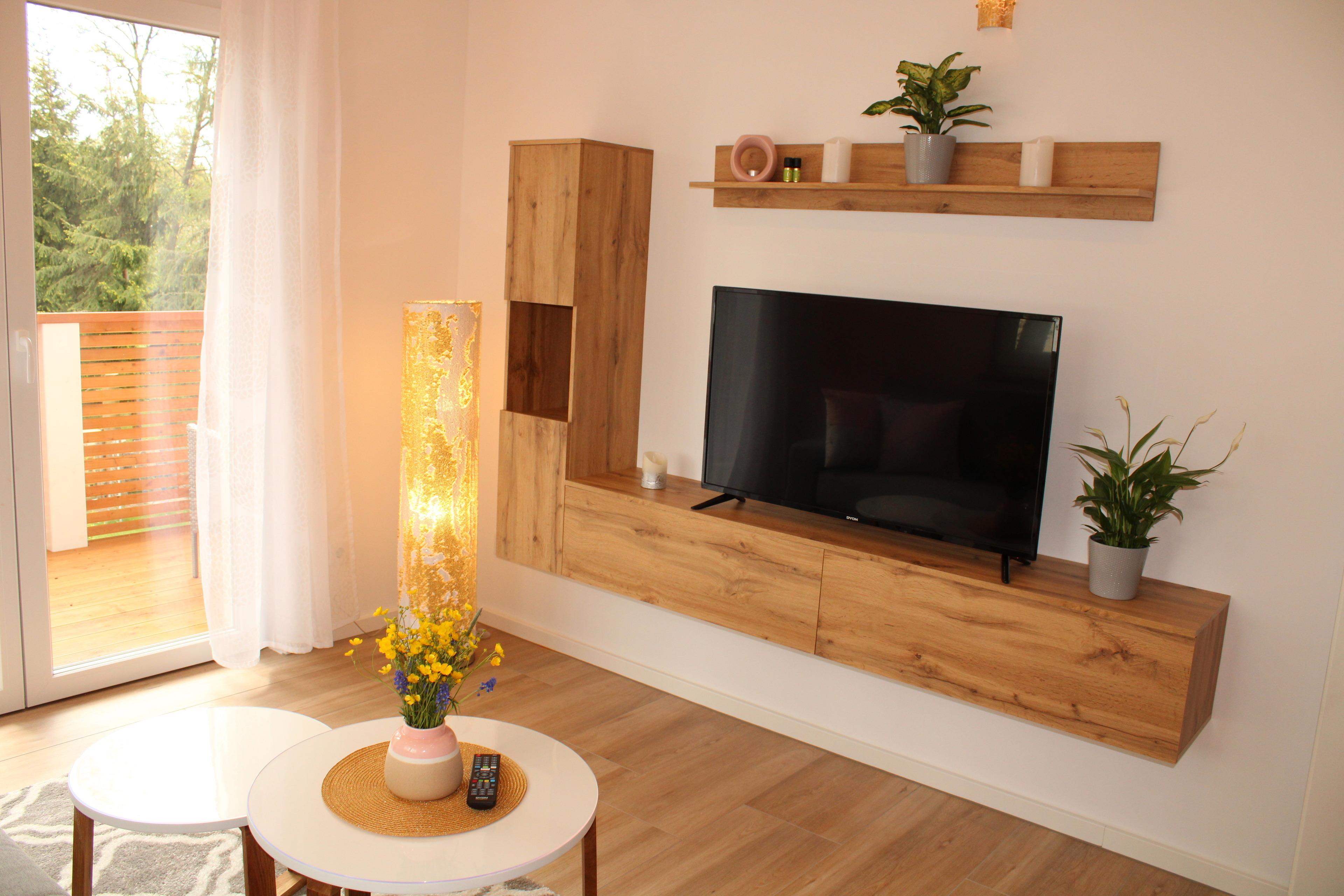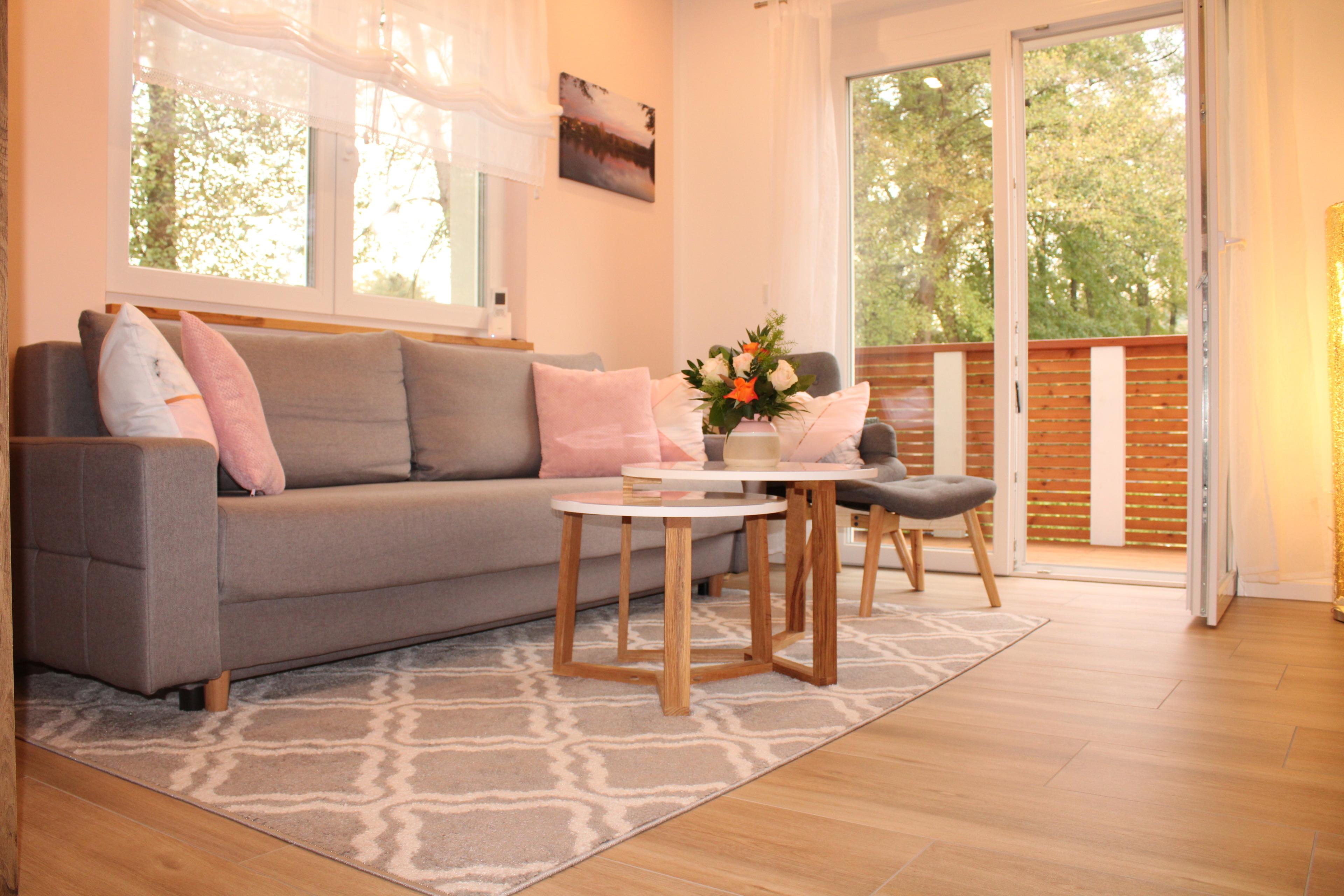 * Wohnzimmer mit Schlafcouch (140cm), Flat Screen mit HD TV und Zugang zum Balkon