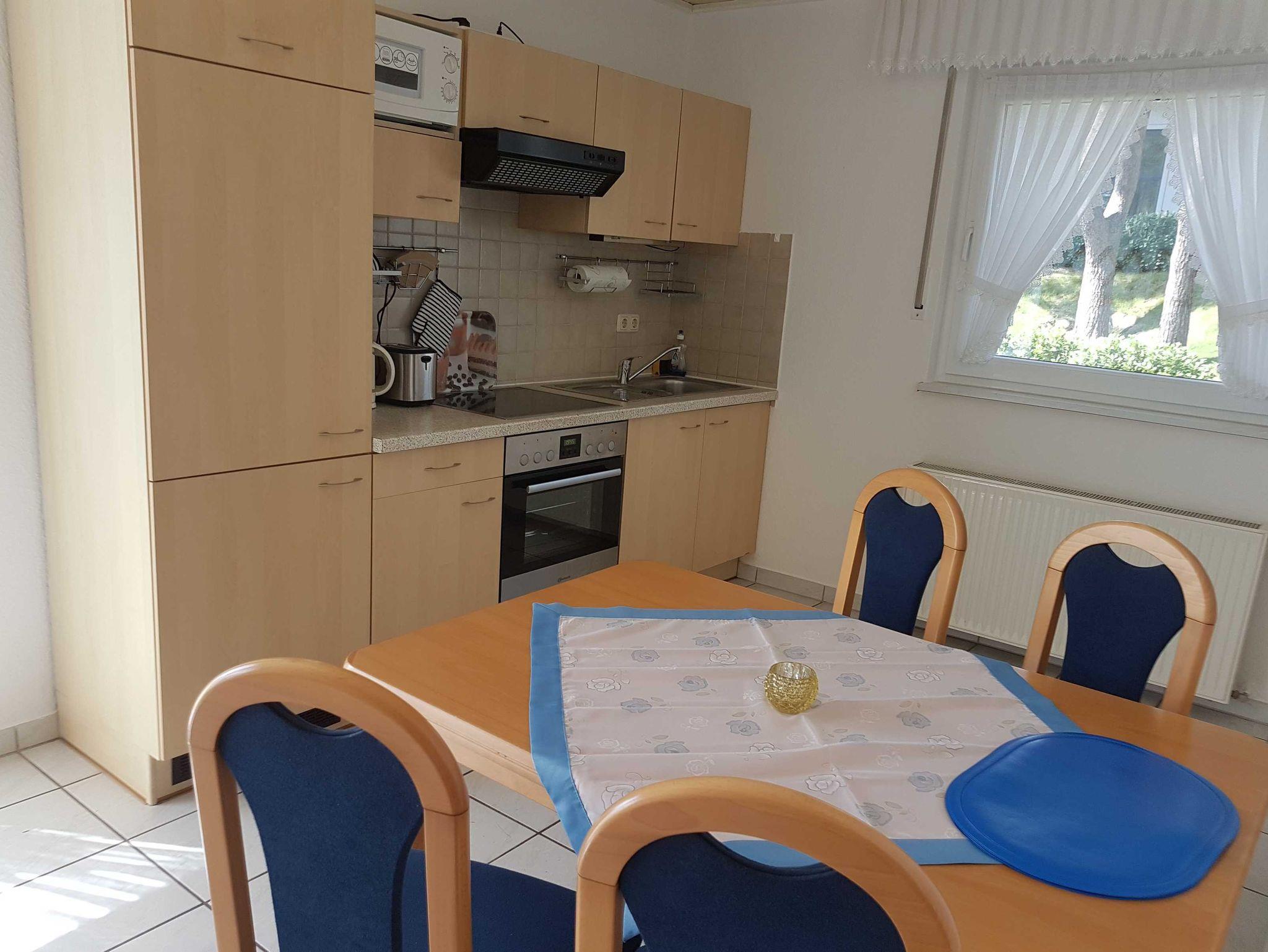 Die Ferienwohnung mit der angrenzenden Terrasse und dem Parkplatz ist mit hellen und freundlichen Möbeln ausgestattet. Die Küche ist offen zum Wohnzimmer und mit allen notwendigen elektrischen Kleingeräten ausgestattet (Backofen, Gefriermöglichkeit, Mikrowelle). Die Wohnung verfügt über 2 Schlafräume. Ein Schlafraum mit Doppelbett und ein Schlafraum mit zwei getrennt stehenden Betten. Das Bad ist mit Dusche und WC ausgestattet. Möchten Sie Ihr Haustier mit in den Urlaub nehmen - kein Problem.