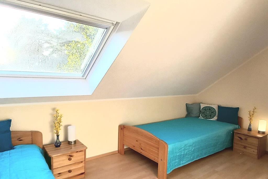Feriehuset GutSeeZeit ligger i et magisk landskab med søer, enge, skove og marker, direkte ved Plau-søen i naturreservatet Mecklenburg Seenland. Det er en invitation til naturen, en tid til at sætte farten ned, slappe af og lade op. Plads til at trække vejret dybt, leve i nuet og genoplade batterierne. Her synes verden at stå stille et øjeblik. Et sted, hvor glæden bor, og den indre fred hersker. Oplev betagende solnedgange, mærk solen på huden og vinden i håret, mens du sejler, padler eller fisker. Tag på fisketur, udforsk søernes naturlige omgivelser på cykel eller til fods, observer vandfugle, og oplev de charmerende byer i området som Malchow, Plau am See, Röbel, Mirow og Waren (Müritz). Schwerin ligger kun 80 km væk, og Østersøen med sine fortryllende destinationer som Warnemünde, Kühlungsborn, Heiligendamm og Rostock ligger kun 98 km væk. Hold din ferie i de tusind søers land. ... Feriehuset ligger i ferieparken Lenzer Höh direkte ved Plau-søen med egen privat strand og badebro, kun 90 meter fra huset. Det dobbelthus byder på 89 kvadratmeter boligareal fordelt på to etager, en lille have med smukke blomstrende buske og en solrig, rolig vestvendt terrasse med komfortable havemøbler og parasol. I stueetagen træder du ind i huset gennem en gang, forbi gæstetoilet og bryggers, ind i den store, lyse stue med åbent køkken, en væg af vinduer og adgang til solterrassen. Stuen har en komfortabel hjørnesofa, et fladskærms-tv, et bord, et fuldt udstyret køkken og et spisebord med seks stole. Fra gangen træder du ind i det første soveværelse i stueetagen, der er møbleret med en dobbeltseng og et klædeskab. Ved siden af klædeskabet fører en lys trappe til øverste etage med yderligere to soveværelser og et badeværelse med bruser. Alle værelser har mindst ét vindue, og soveværelserne er udstyret med mørklægningsgardiner. Soveværelset ovenpå har en dobbeltseng med natborde og læselamper, et klædeskab med tre døre og en lænestol. Det tredje soveværelse har to enkeltsenge, natborde med læselamper, et klædeskab med to døre, en lænestol og et sidebord. Badeværelset har bruser, et badeværelsesskab med spejl, en hylde og et væghængt toilet. Det bilfri feriekompleks tilbyder en legeplads, et bordtennisrum, et vaskeri med vaskemaskiner og tørretumblere, et cykelkælderrum og gratis parkering. Lad hverdagen bag dig og slap af i feriehuset GuteSeeZeit.