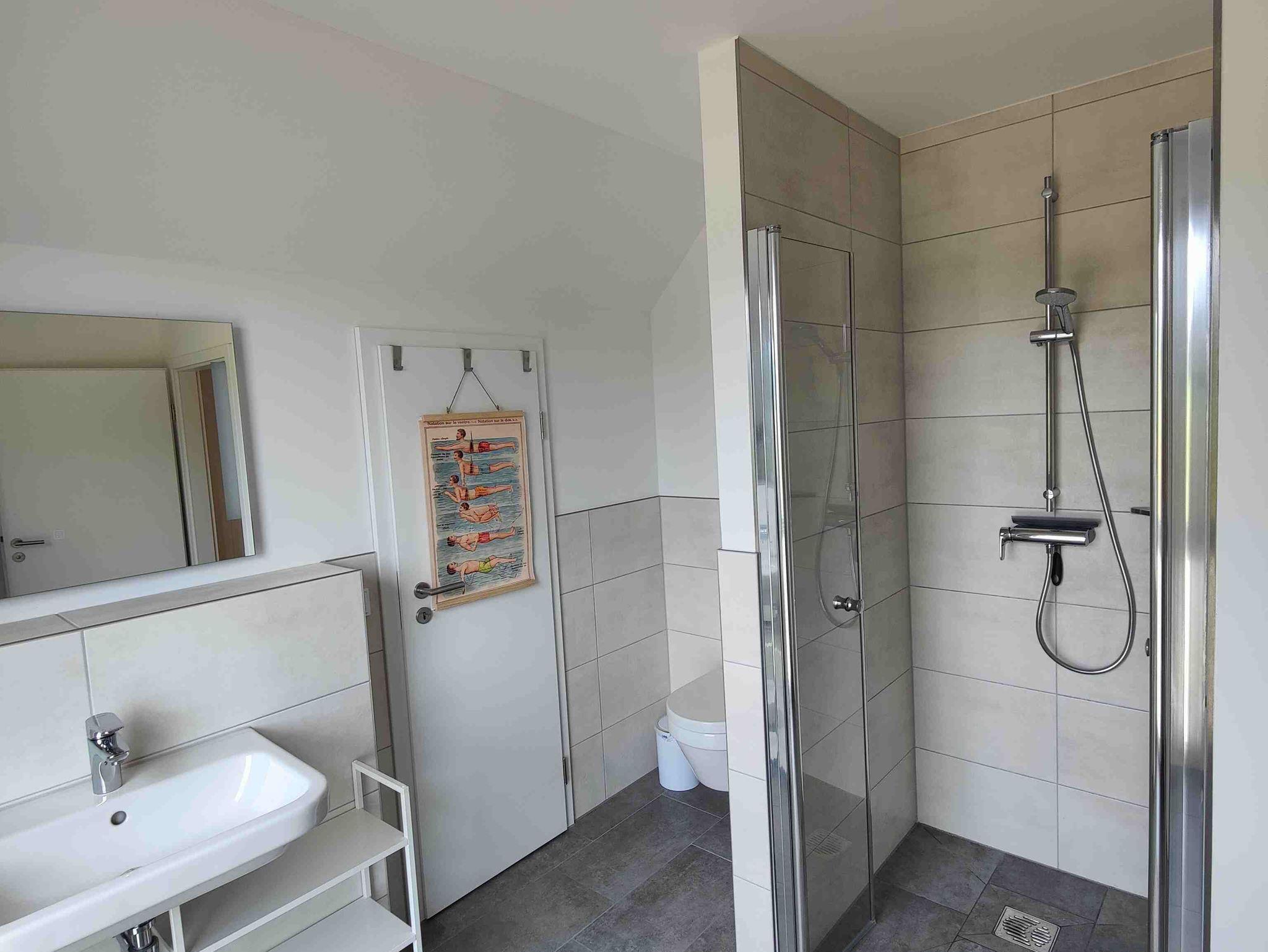 Das Ferienhaus ist für 8 Personen bestens ausgelegt. In der voll ausgestatteten, neuen Küche finden Sie einen modernen Induktionsherd mit Dunstabzug, einen großen Backofen, einen Kühlschrank mit Gefrierfach, eine Spülmaschine sowie Wasserkocher, Toaster und Kaffeemaschine. Geschirr, Besteck und Kochutensilien sind in guter Anzahl vorhanden. Im Hauswirtschaftsraum hinter der Küche befindet sich die Waschmaschine. Wohn- und Essbereich sind mit einem großen Esstisch ausgestattet, der ausgezogen werden kann und an dem dann 10 Personen bequem Platz finden können. Die große Coach und der sehr gemütliche Sessel im Wohnzimmer laden zum Verweilen ein, für Gespräche und auch zum gemeinsamen Musik- oder TV-Genuss. Im Erdgeschoss befindet sich neben einer geräumigen, hellen Diele mit Garderobe und großem Spiegel zudem noch ein Arbeitszimmer mit Schreibtisch, ergonomischem Schreibtischstuhl und einer Coach sowie ein Badezimmer mit Dusche und WC. Vier gemütlich eingerichtete Schlafzimmer, drei mit Doppelbetten sowie eines mit zwei Einzelbetten finden Sie im Obergeschoss. Für kleine Kinder können wir auf Wunsch ein Reisebett als Aufbettung zur Verfügung stellen. Zudem gibt es im Obergeschoss ein großzügiges Badezimmer mit Dusche und WC. Erdwärme gibt die Energie für die Fußbodenheizung, die ein sehr angenehmes Wohnklima erzeugt. Sie können die warmen Tage auf der großen Terrasse mit Südausrichtung genießen und den gesamten Garten des über 700 m2 großen Grundstücks nutzen. Fahrradtouristen können Ihre Fahrräder im Holzschuppen unterstellen und abschließen.