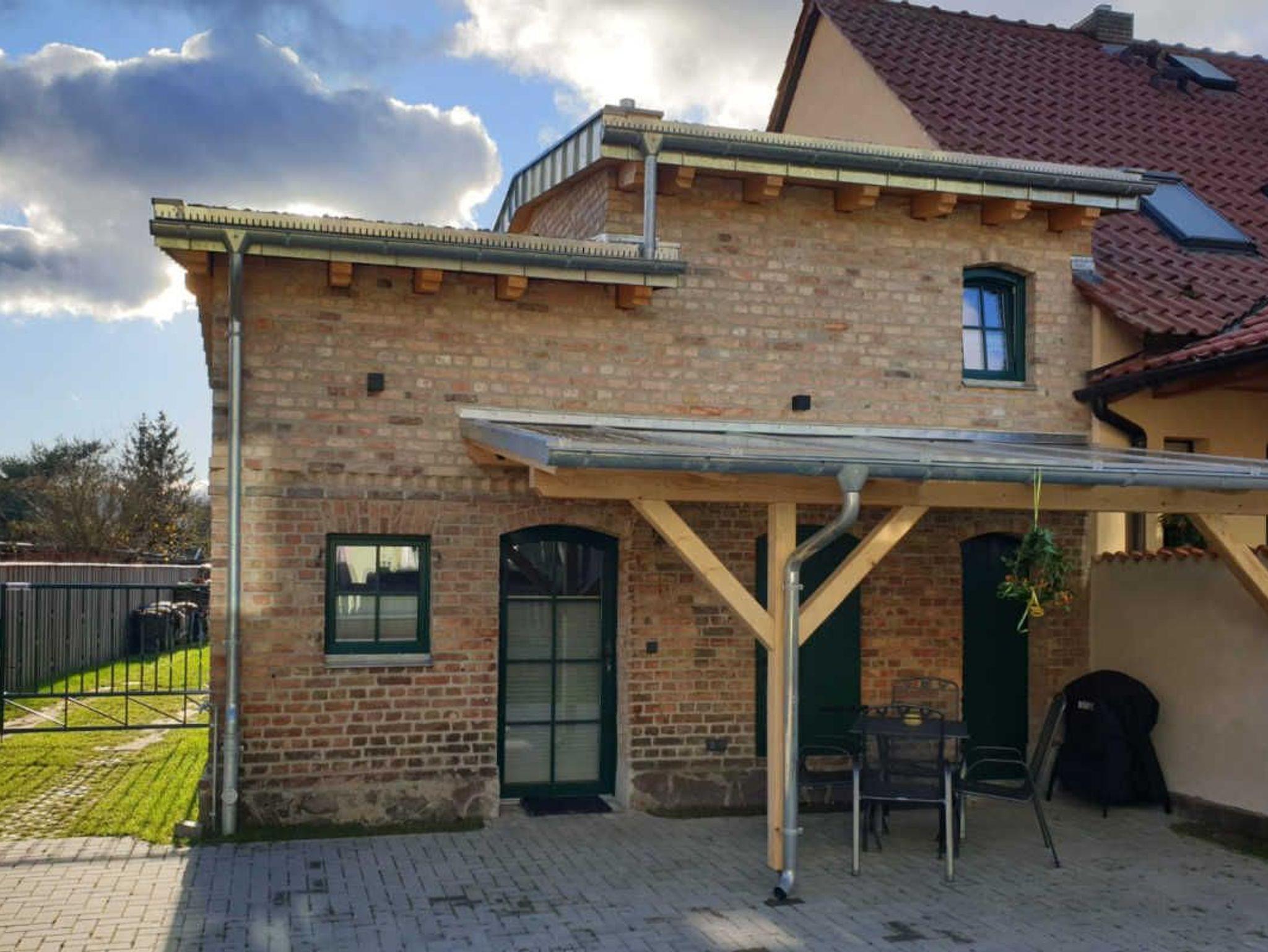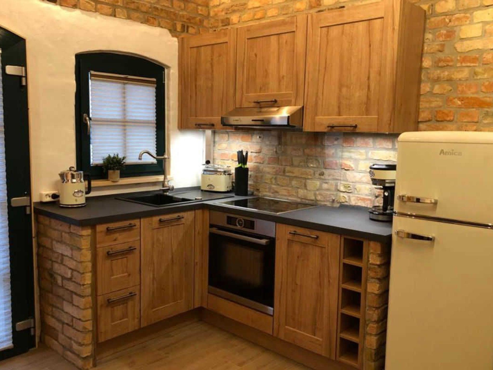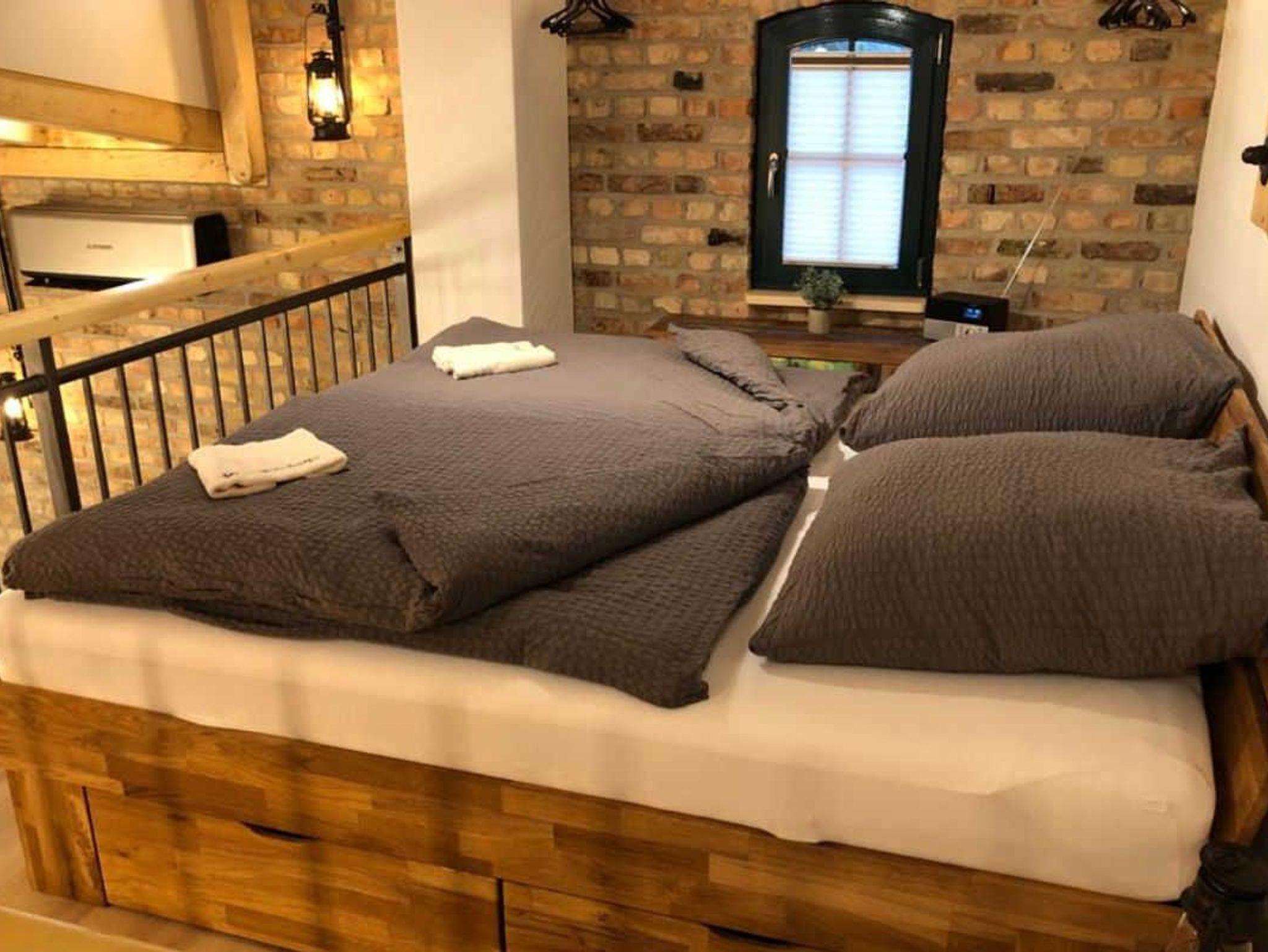 Das historische Backsteingebäude des Heubodens wurde liebevoll für Sie saniert. Der offene Grundriss bietet Ihnen Großzügigkeit und Komfort auf 40 qm Wohnfläche. Von der Empore des Schlaf-Boden aus (Doppelbett) können Sie zum Stolpsee schauen und über das Geländer in den Wohnbereich blicken. Im Wohnzimmer steht die Schlafcouch für weitere 2 Gäste. Beide Schlafbereiche sind nicht durch eine Wand getrennt. Eine hochwertige Ausstattung und historische Details, wie das originale Backsteinmauerwerk, geflammte Holzbalken und natürliche Putzflächen in alter Handwerkstradition, sorgen für Ihr Wohlbefinden im Urlaub. Eine überdachte Terrasse befindet sich vor dem Haus.