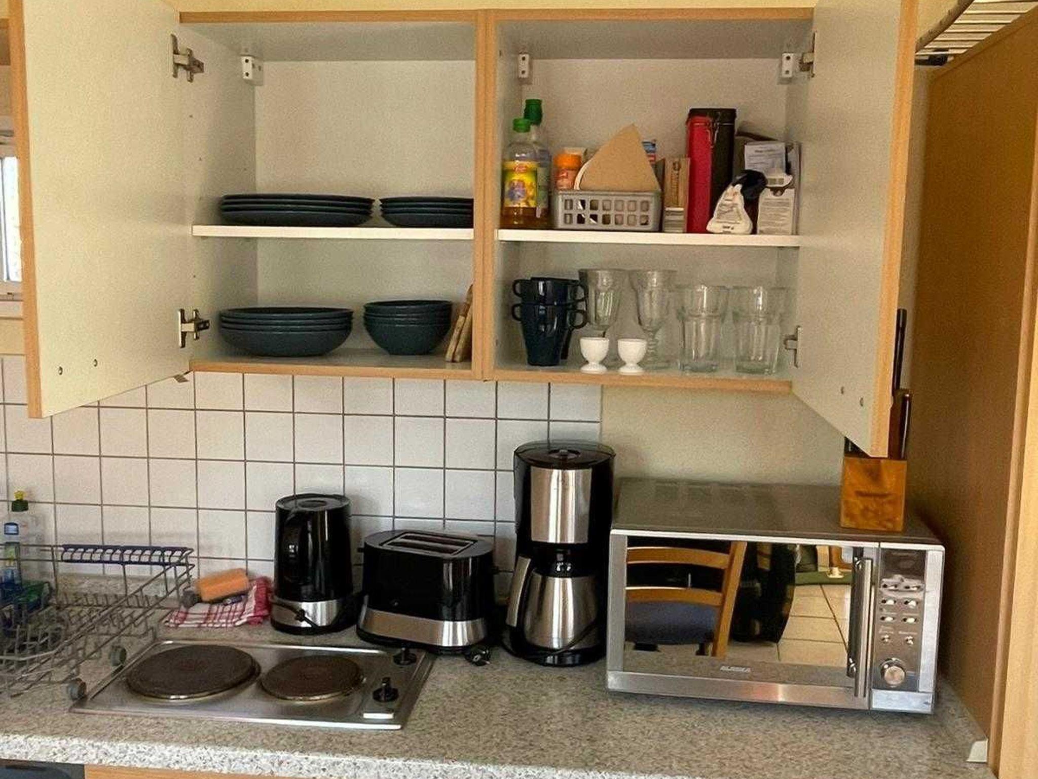 Der kleine Bungalow besteht aus einem Wohnraum mit Schlafsofa, einem Schlafraum mit Doppelbett, Dusche/WC, Küche sowie Gartenmöbel. Parkplätze stehen kostenlos vor und auf dem Gelände zur Verfügung. W-LAN, Bootnutzung und Wasserverbrauch sind inklusive. Hunde sind nach Absprache kostenlos. Zur weiteren Ausstattung gehört ein Flatscreen TV, Radio, Wasserkocher, Toaster, Mikrowelle mit Umluft und Grill, Holzkohlegrill, Besteck, Geschirr, Töpfe, Gläser, Filterkaffeemaschine, Kühlschrank, 2 Herdplatten und ein Geschirrspüler.