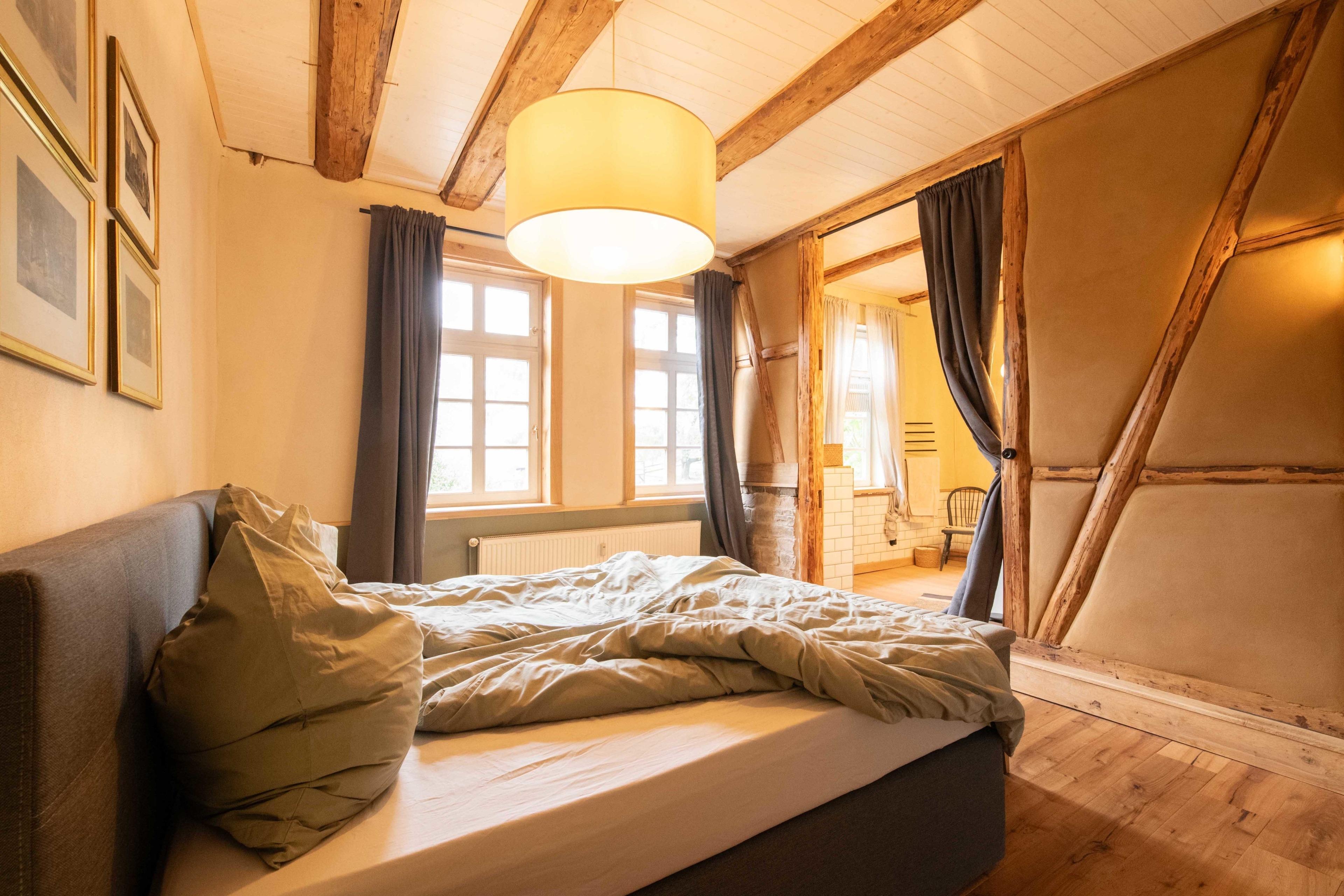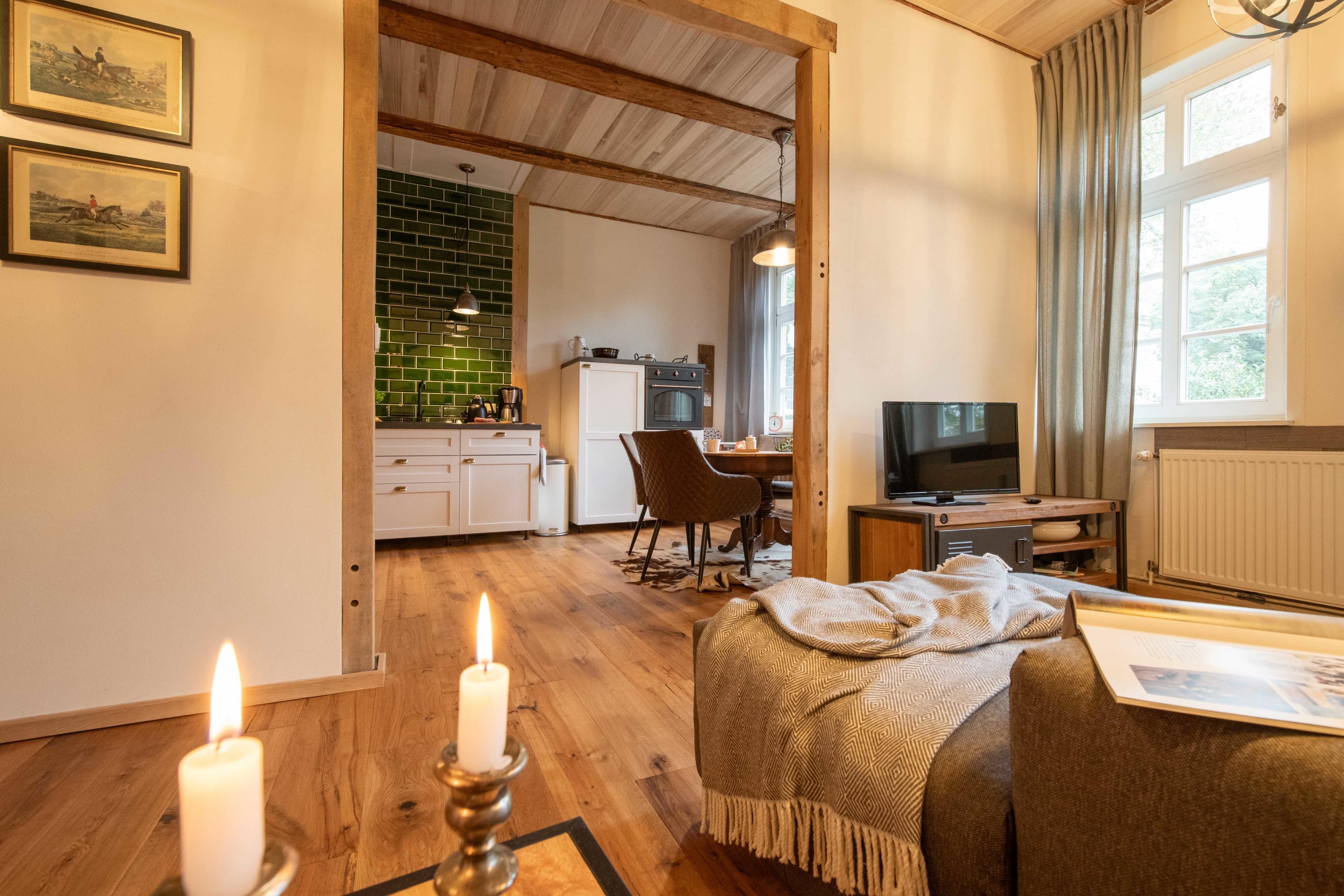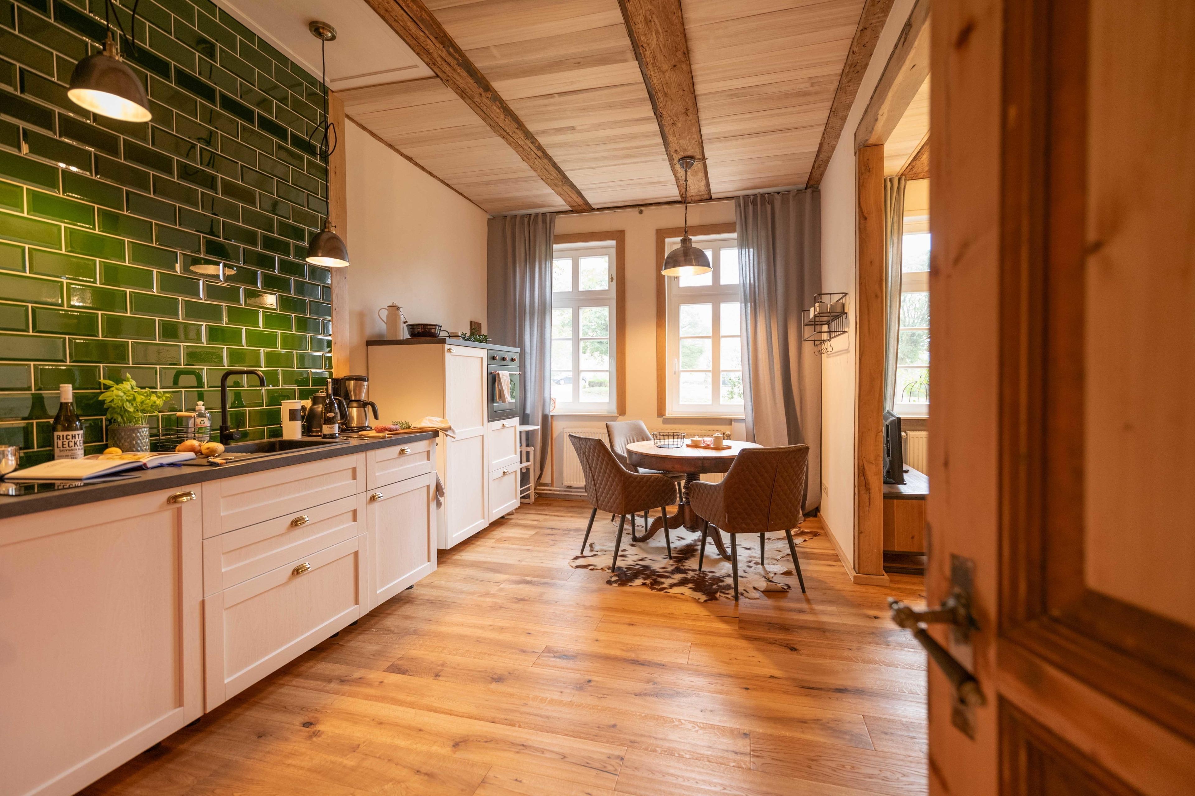 Die Kutscherstube im Hofmeisterhaus auf dem Gutshof Fürstenberg ist als Gästewohnung für zwei Personen (plus Kinder) grundlegend saniert worden. Ein rustikal-edles Ambiente mit Lehmputz und Fachwerkbalken und eine individuelle Ausstattung freuen sich auf begeisterte Blicke und Gäste von nah und fern. Einige der verwendeten Möbelstücke sind Fundsachen von den Dachböden des Anwesens, die wir liebevoll wiederaufbereitet haben und die nun eine ganz eigene Wohnatmosphäre in diesem Denkmal erzeugen.