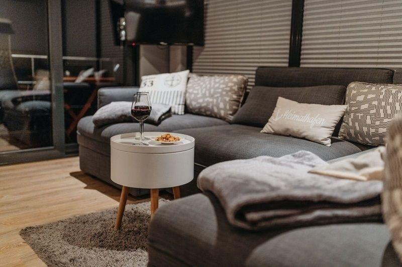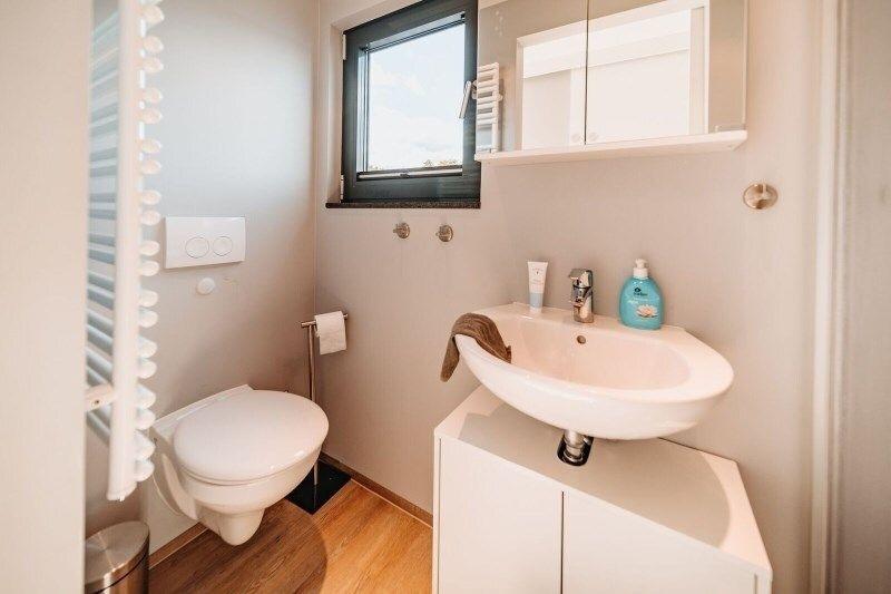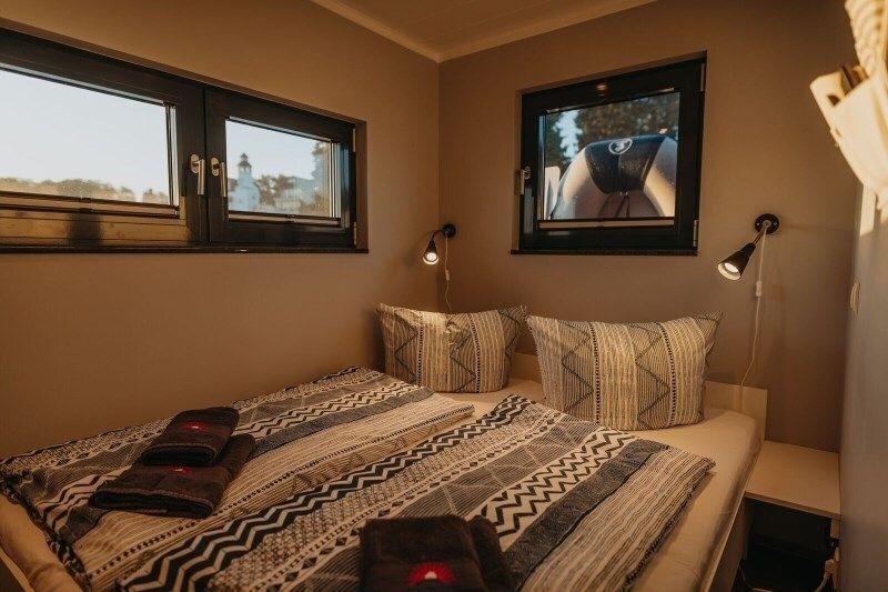 Schlaf- und Wohnbereich sind stilvoll eingerichtet. Die beiden getrennten Schlafzimmer mit einem Doppelbett und einem Etagenbett, die voll ausgestattete Küche und das moderne Dusch-Bad mit separater Toilette bieten allen Komfort, der einen erholsamen Urlaub garantiert.