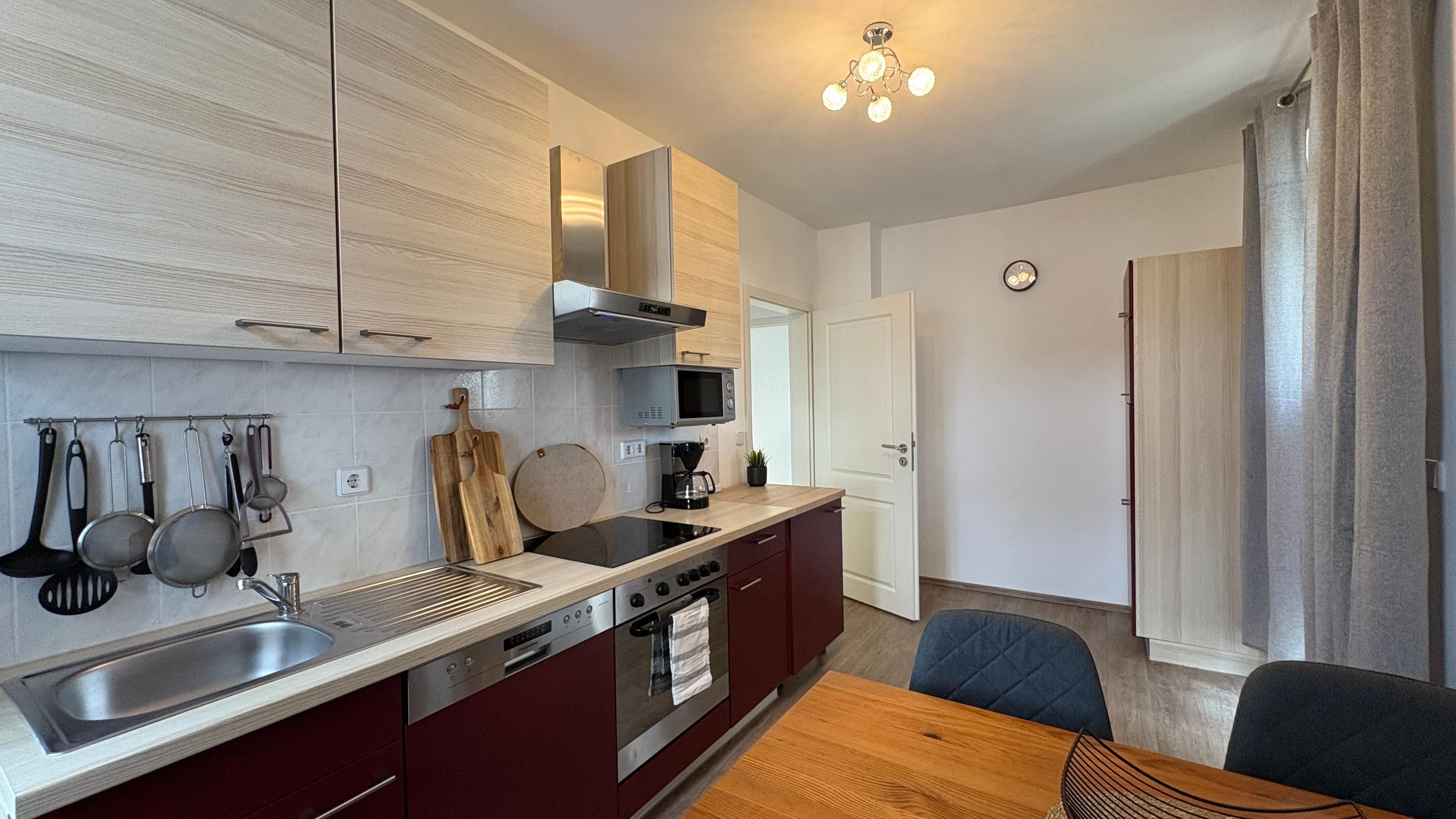 Die moderne Küche ist mit allen notwendigen Geräten ausgestattet, darunter ein Kühlschrank, eine Mikrowelle, ein Kochfeld, ein Backofen und eine Kaffeemaschine, sodass Sie sich während Ihres Aufenthalts bequem selbst verpflegen können. In den Badezimmern erwartet Sie jeweils eine Dusche und eine Badewanne.