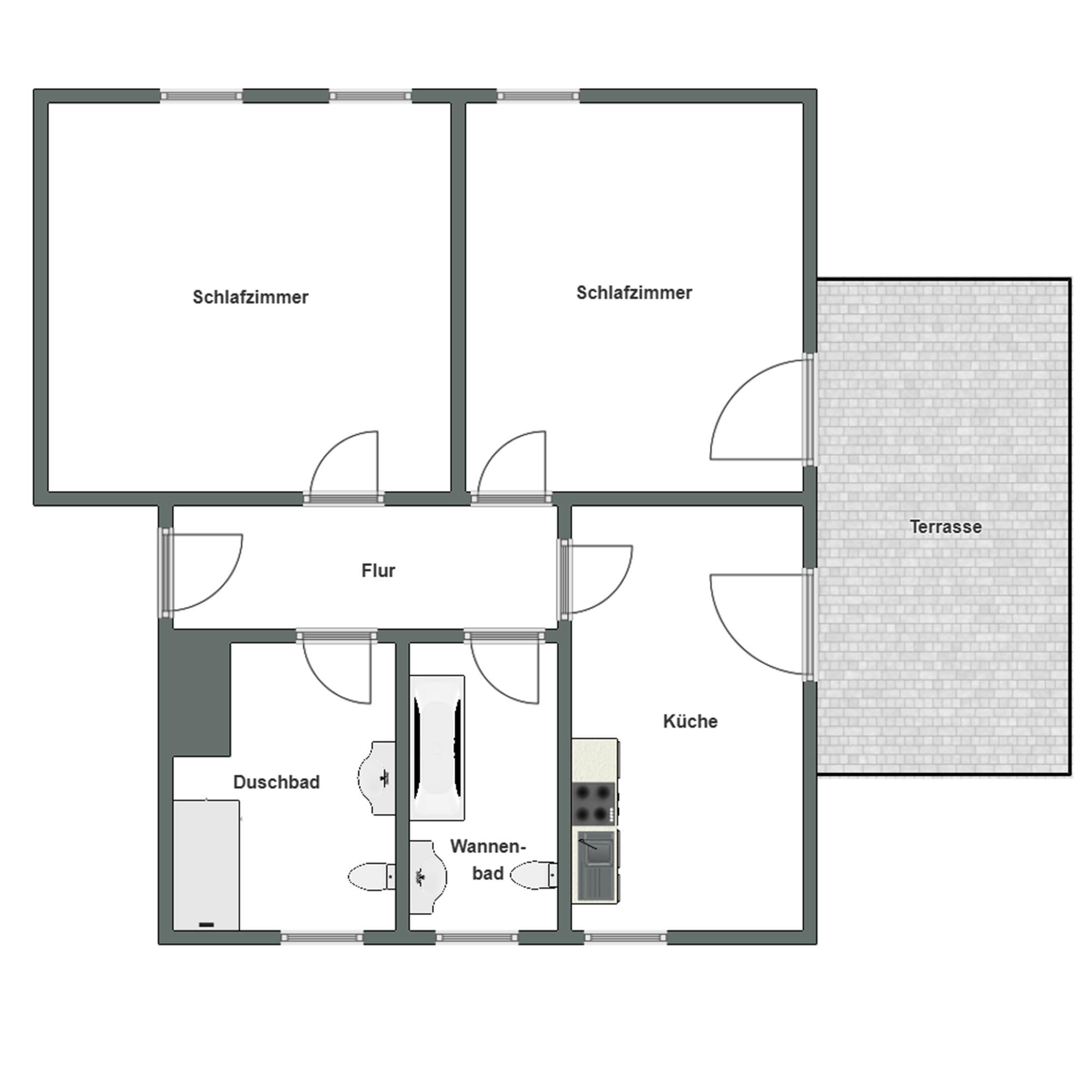Die Ferienwohnung befindet sich im Erdgeschoss und bietet auf einer Fläche von ca. 66 m² ausreichend Platz für einen erholsamen Aufenthalt. Sie umfasst zwei Schlafzimmer, eine modern ausgestattete Küche, ein Dusch-Bad, ein Wannen-Bad sowie eine Terrasse mit Seeblick.