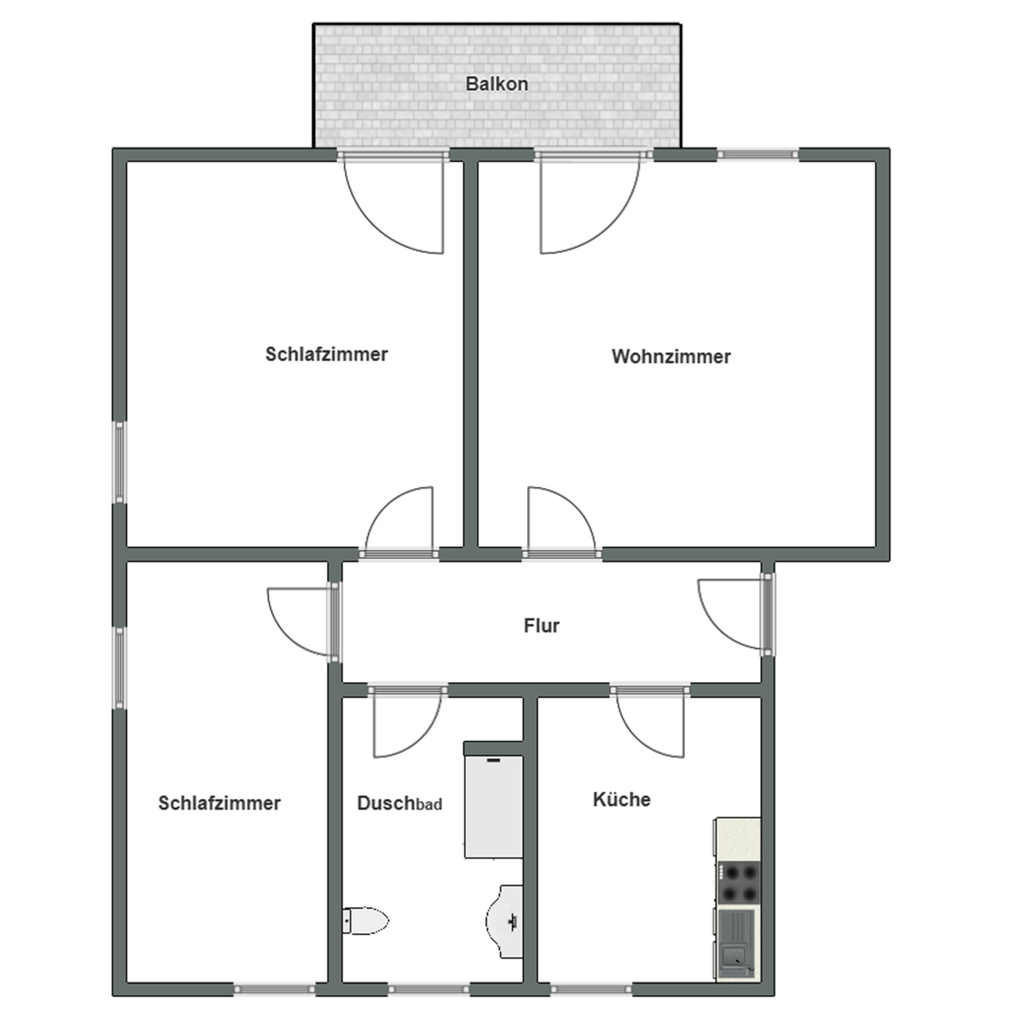 Die Ferienwohnung befindet sich in der 1. Etage und bietet auf einer Fläche von ca. 66 m² ausreichend Platz für einen erholsamen Aufenthalt. Sie umfasst ein Wohnzimmer, zwei Schlafzimmer, eine modern ausgestattete Küche, ein Dusch-Bad sowie einen Balkon.